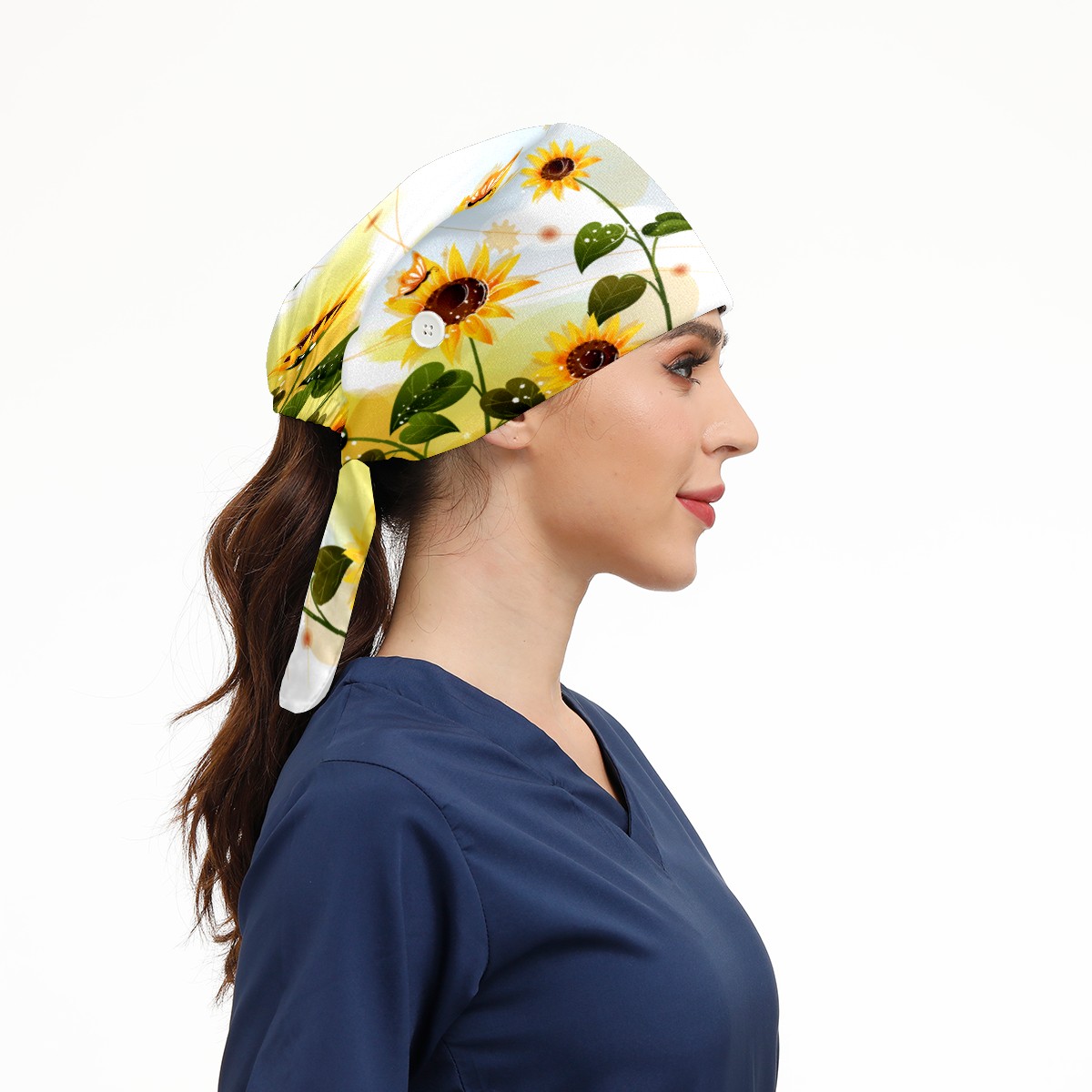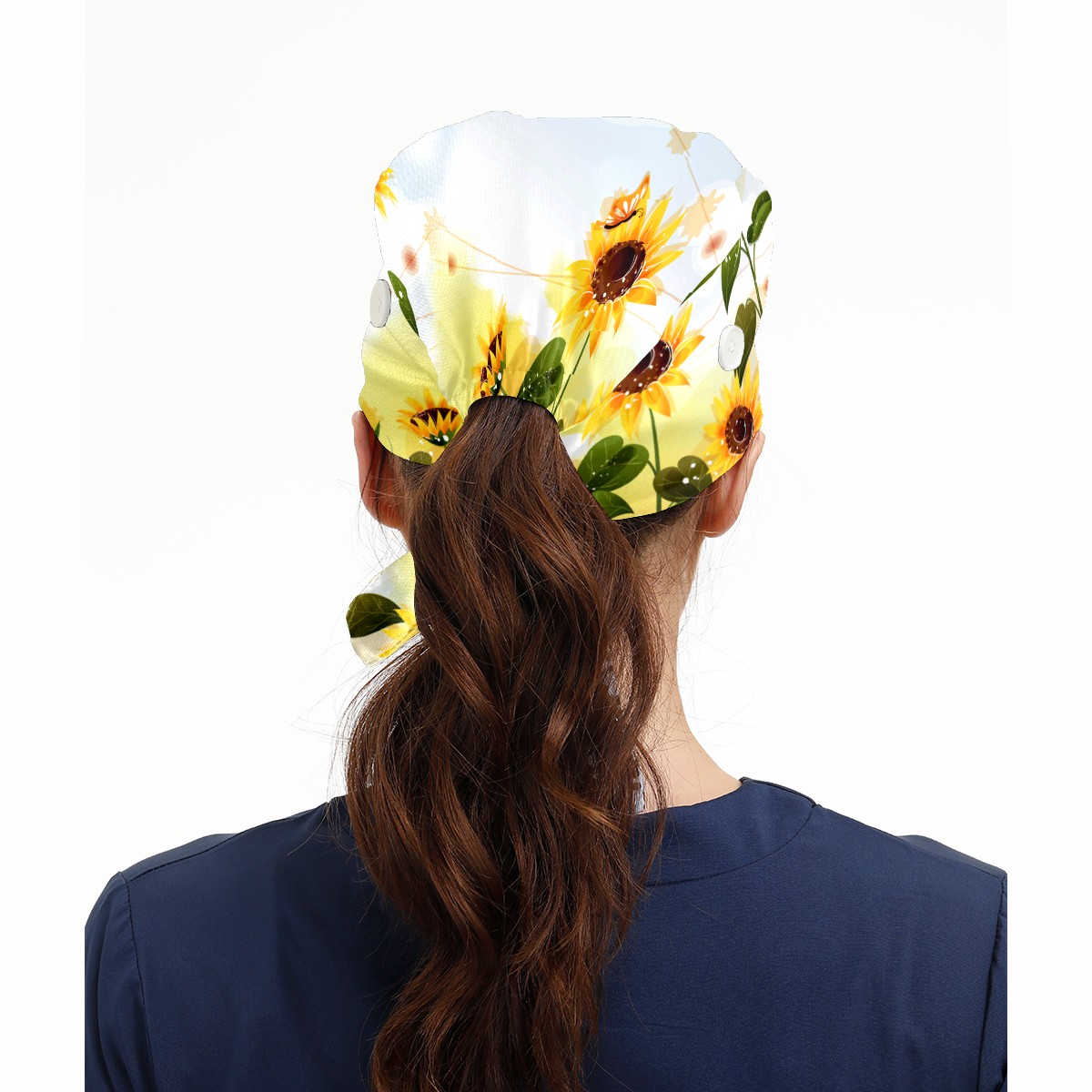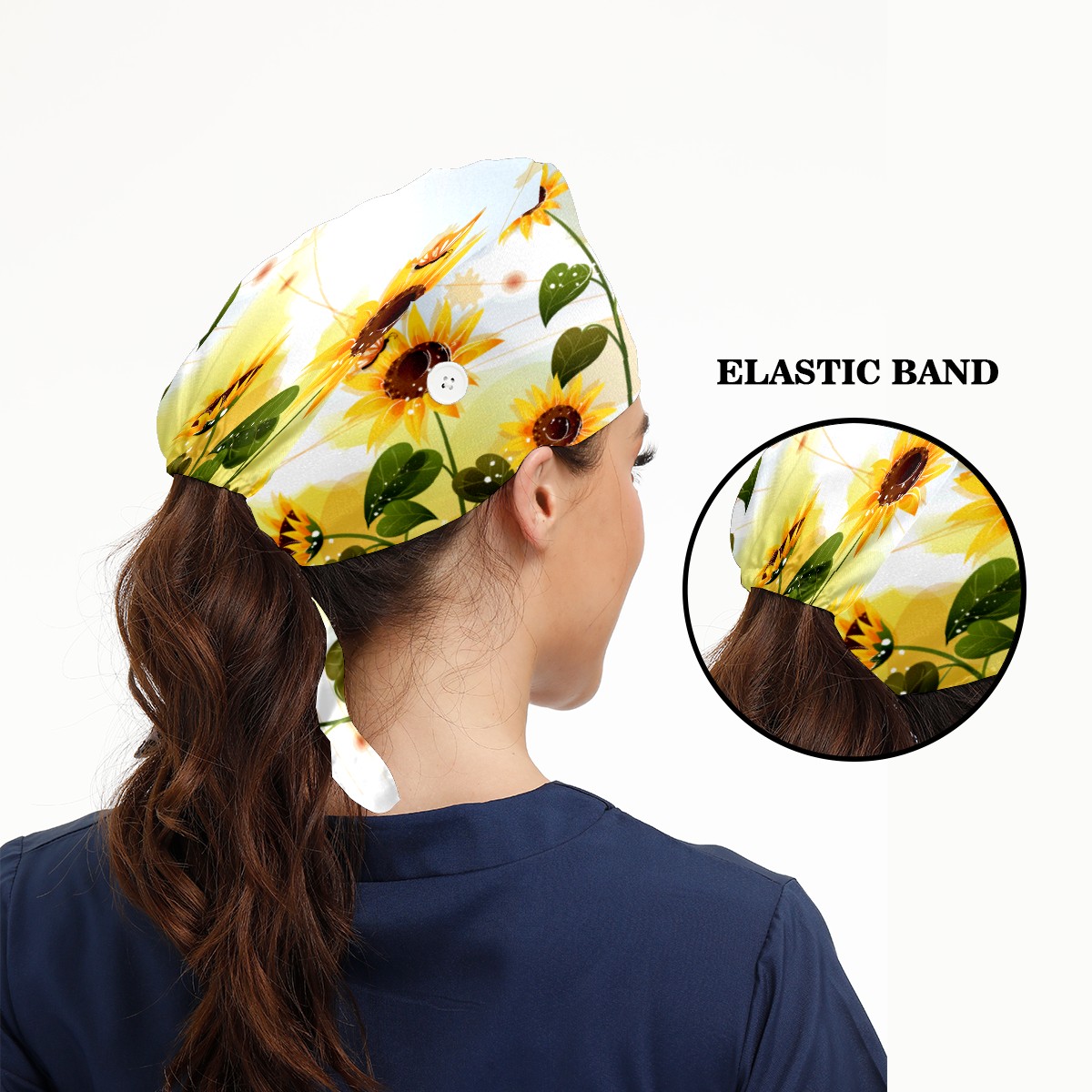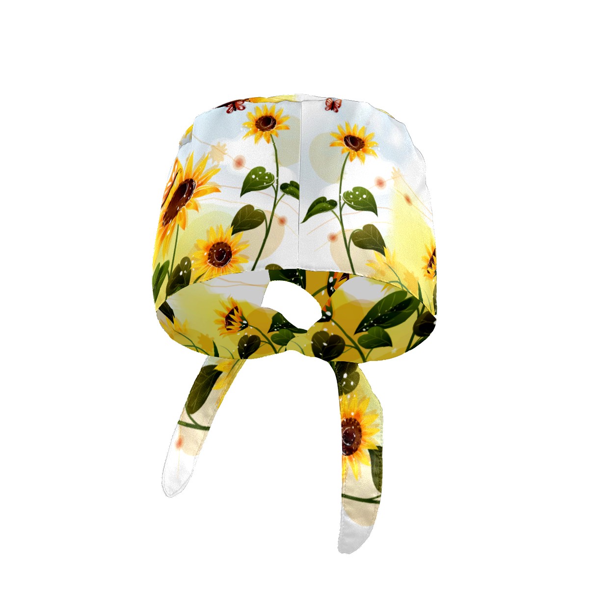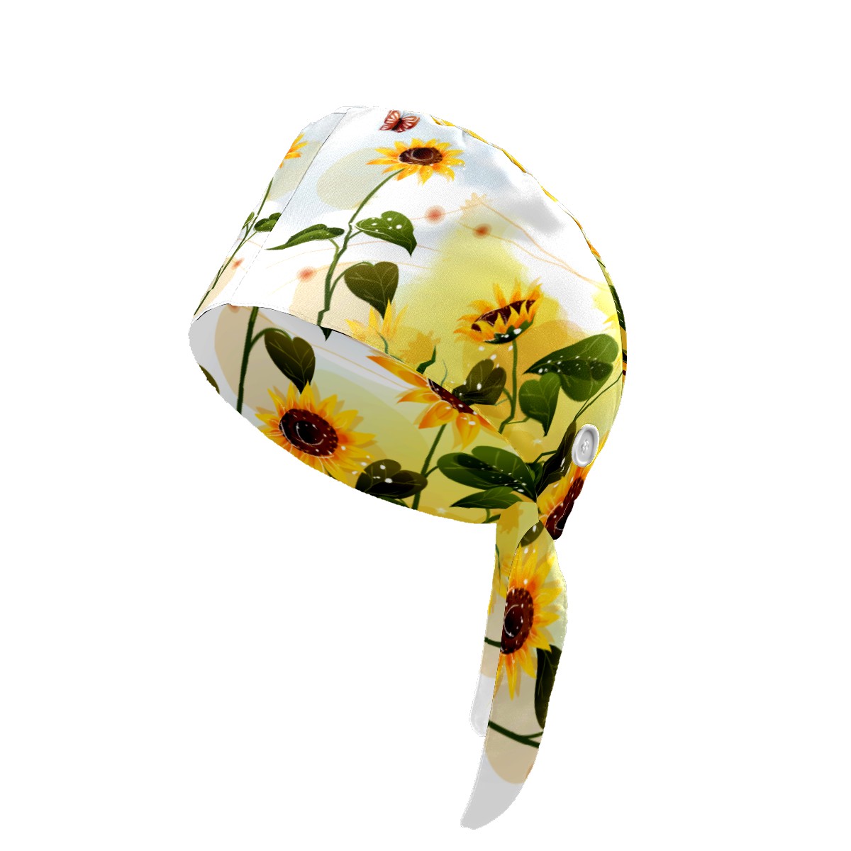 Sunflower With Butterfly Working Cap Button and Sweatband Adjustable Elastic Head Cover Hair Tie Back Work Hats for Women Men