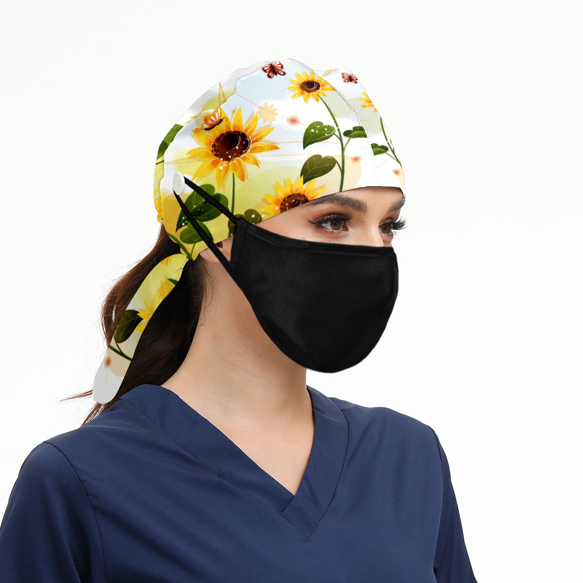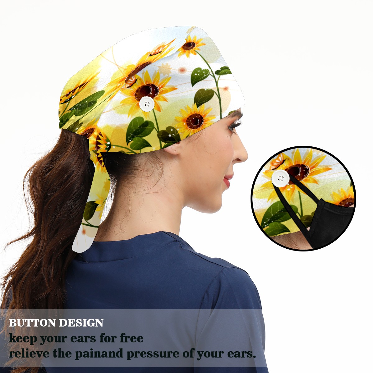 <p>Working cap with Sweatband and Button for Women Men</p><p>Material&nbsp;: 50% cotton+50% polyester</p><p>Size:&nbsp;One size fits most,&nbsp;suitable for both men and women.</p><p>Working Cap with Buttons Design:special&nbsp;design with buttons to protect ears for those who are wearing ma-sk. These new styles hats will allow you to put the straps around the buttons instead of your ears, make you feel more comfortable.</p><p>Sweat-absorbent towel cloth inside: Built-in&nbsp;100% cotton sweatband, keep the forehead clean after long time working.</p><p>Widely occasion: Widely used in beauty spa, house cleaning, cooking, sleeping, or for cos-play&nbsp;party.</p><p>Lovely pattern: lovely&nbsp;3D printed&nbsp;pattern,&nbsp;it's perfect for gift to you family&nbsp;and friends.</p>