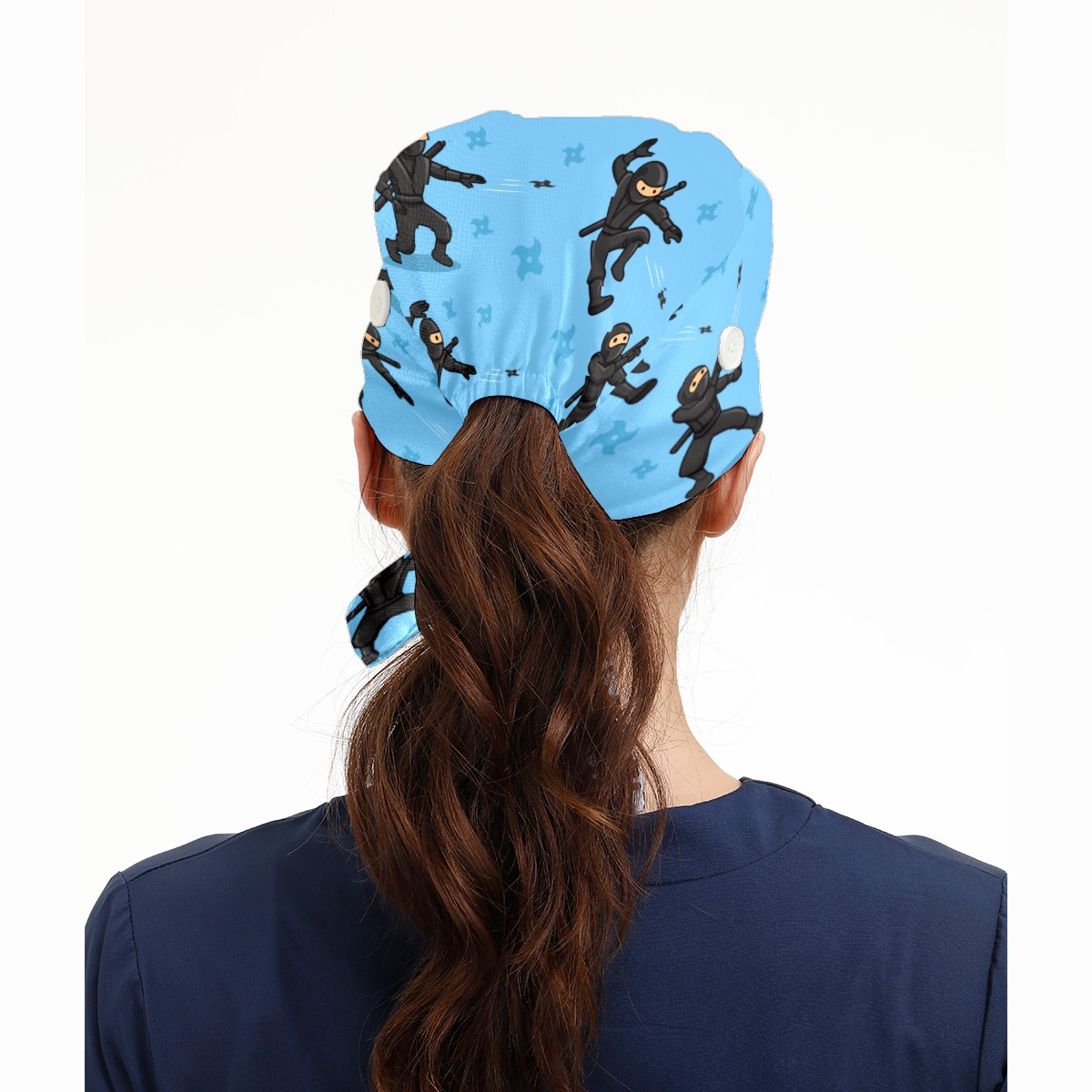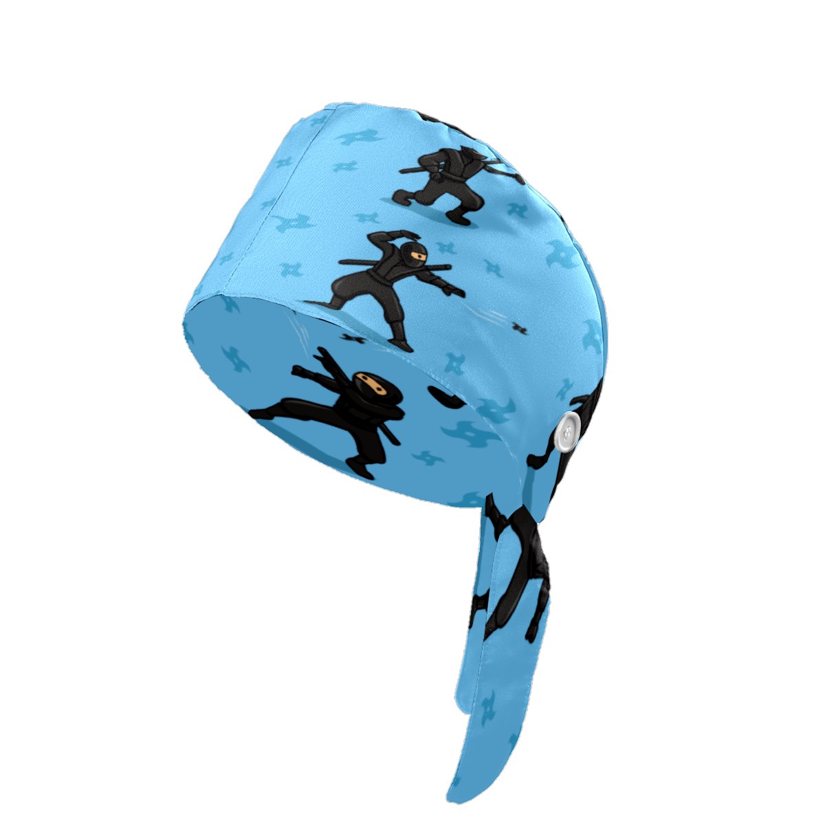 Blue Japanese Ninja Throwing Star Working Cap Button and Sweatband Adjustable Elastic Head Cover Hair Tie Back Work Hats for Women Men