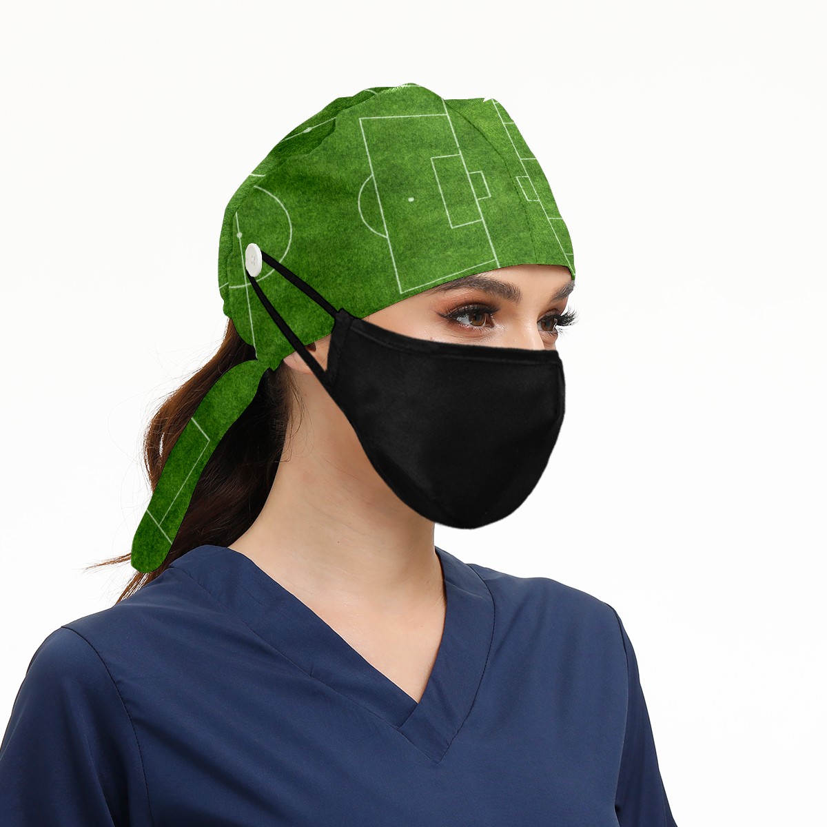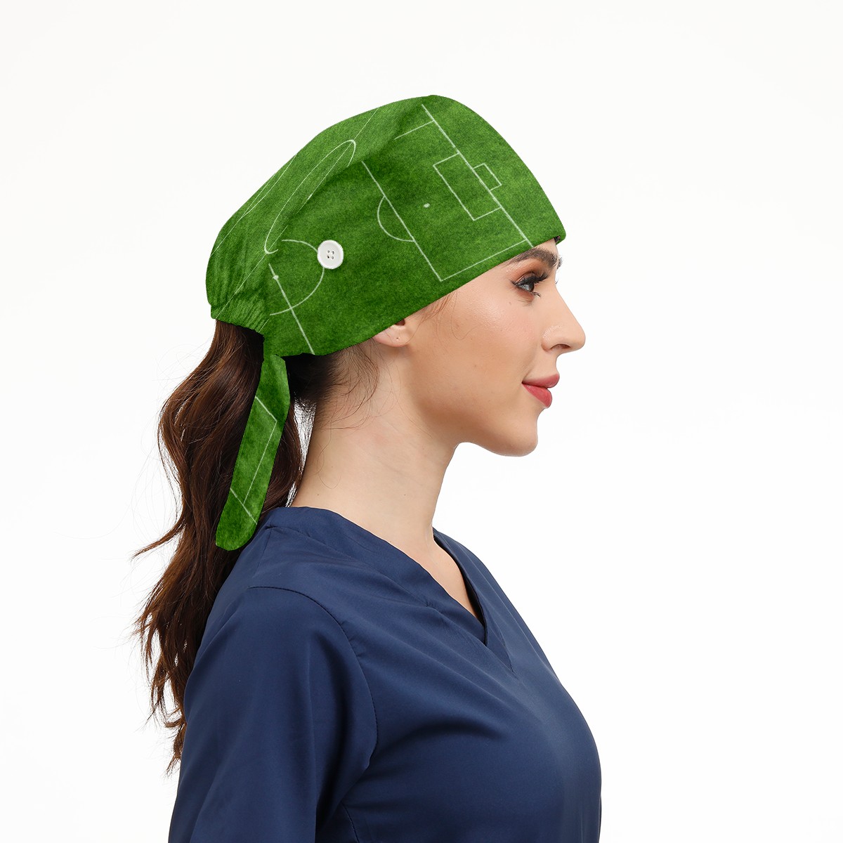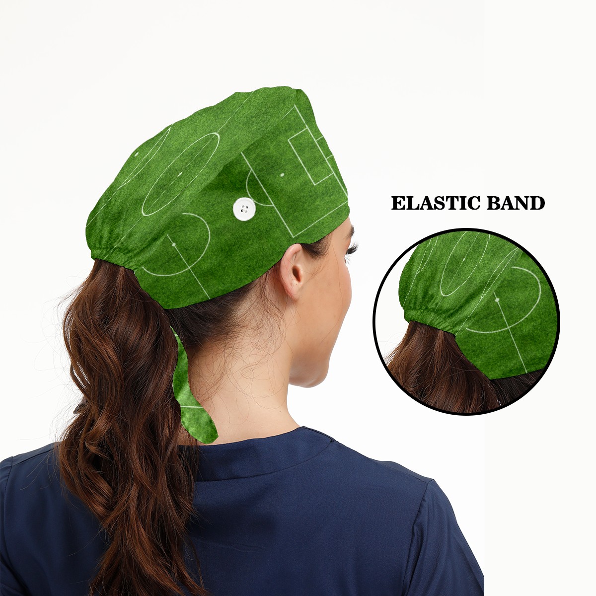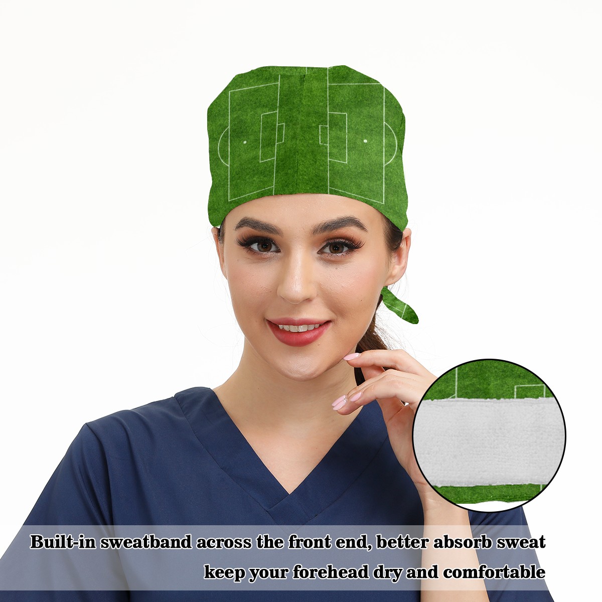 Green Soccer Field Grass Working Cap Button and Sweatband Adjustable Elastic Head Cover Hair Tie Back Work Hats for Women Men