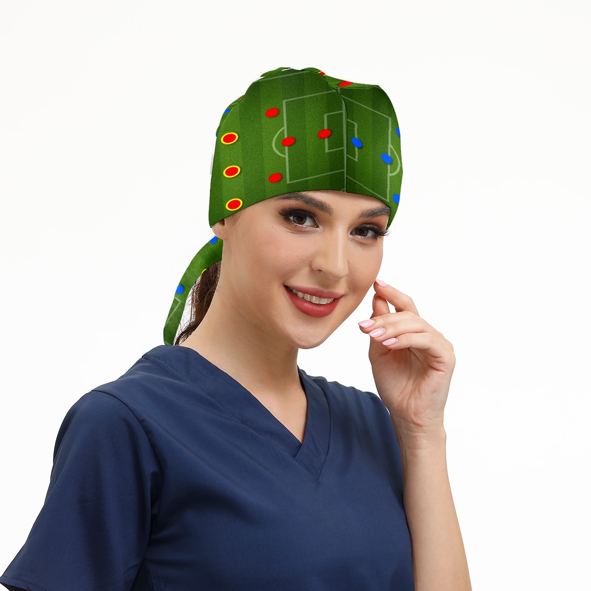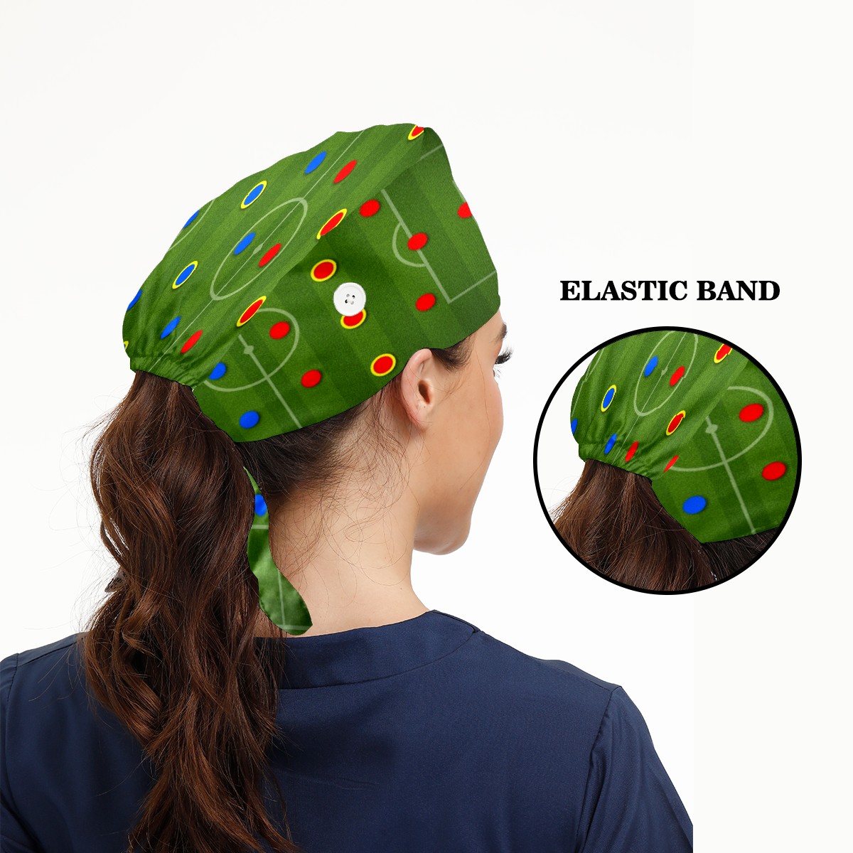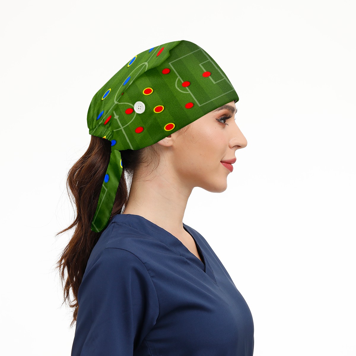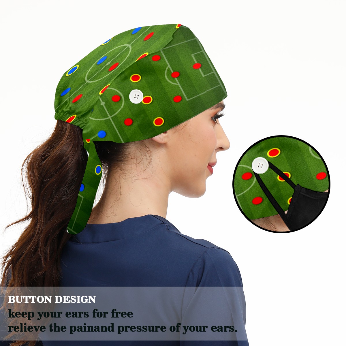 Green Soccer Field Football Center Sports Working Cap Button and Sweatband Adjustable Elastic Head Cover Hair Tie Back Work Hats for Women Men