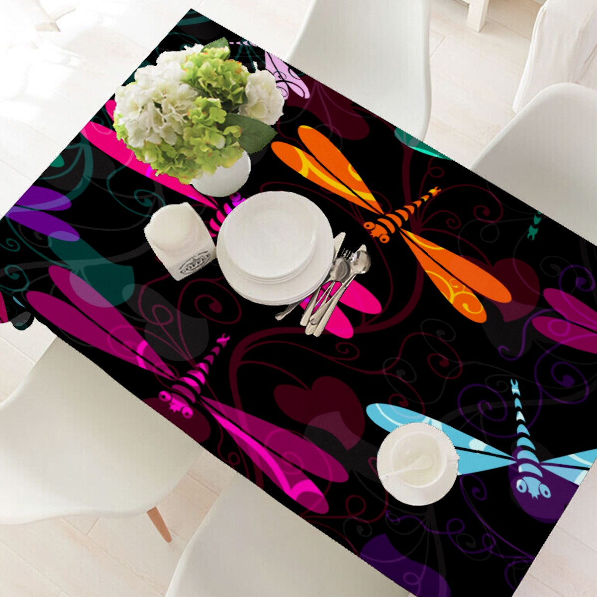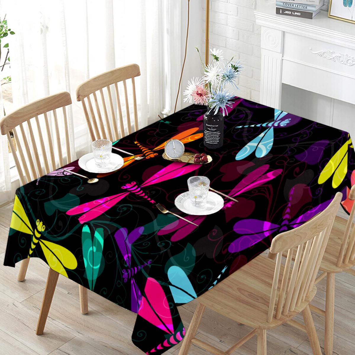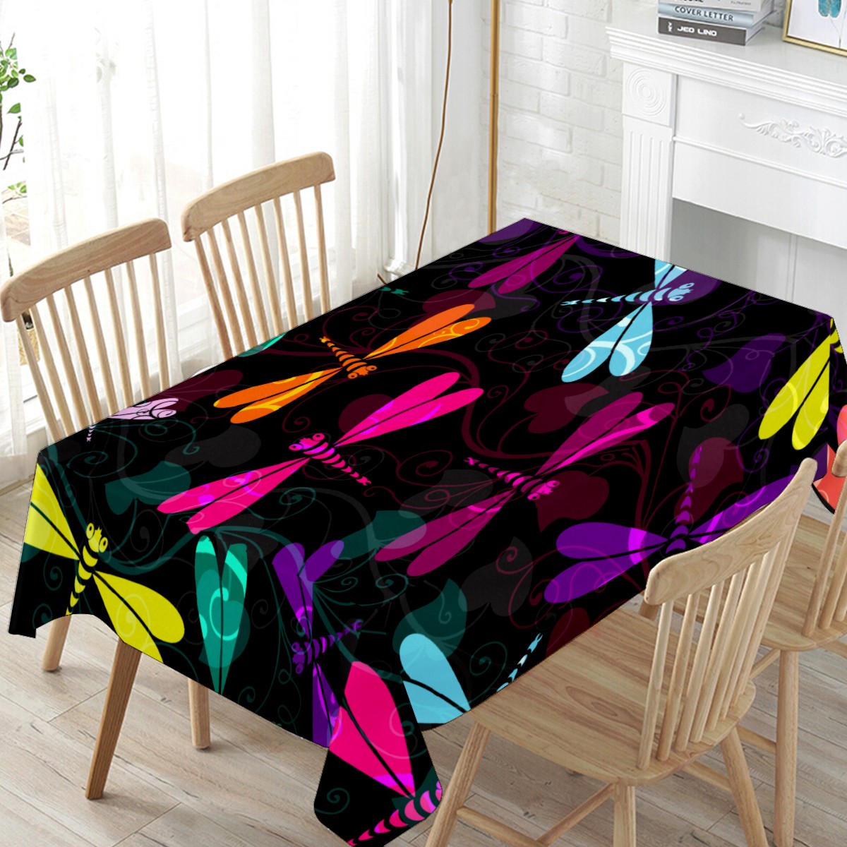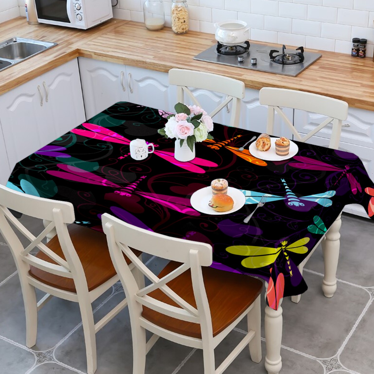 Rectangle Tablecloth Dragonfly Colorful Insect Table Cloth 54x54in Table Cover for Kitchen Dining Table Party Home Decoration Washable Table Runner