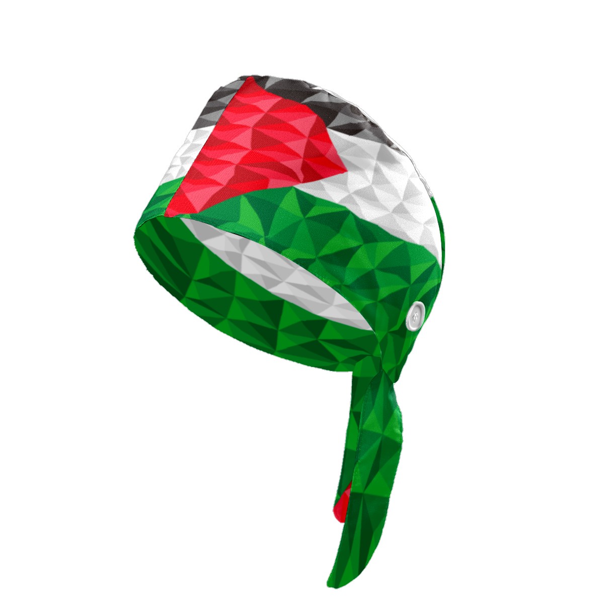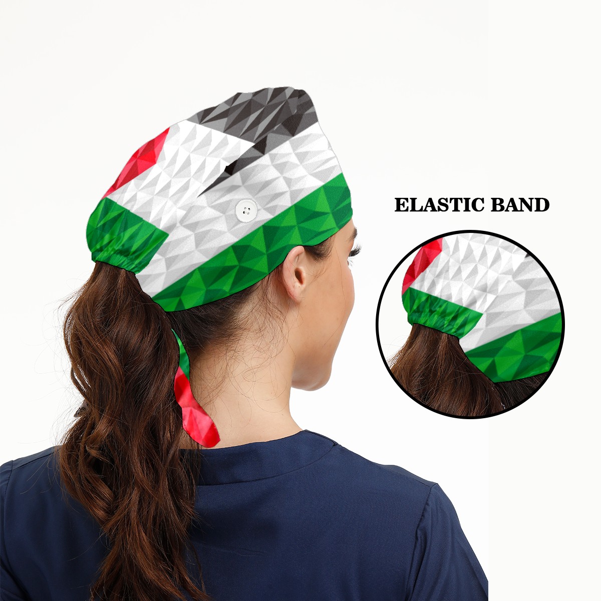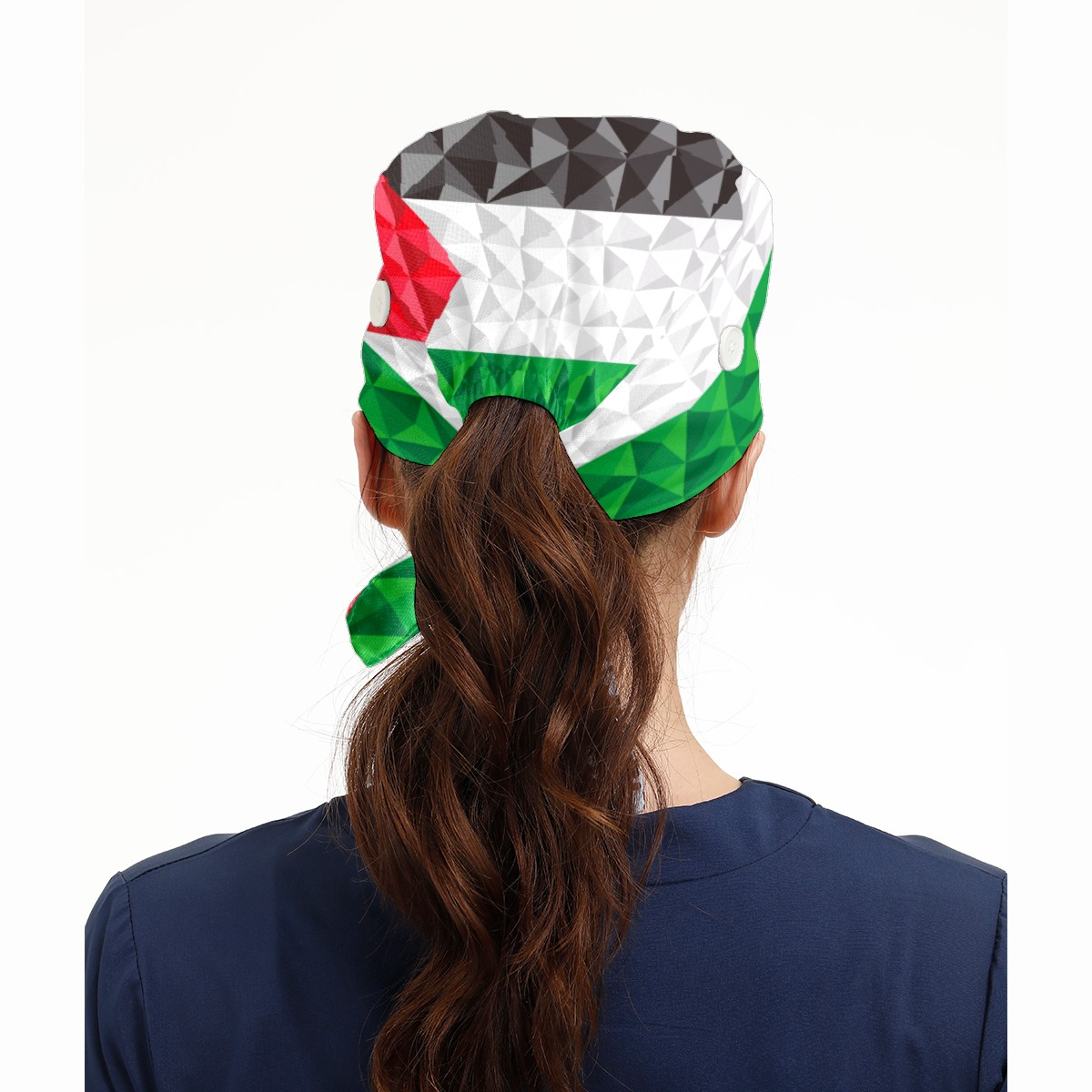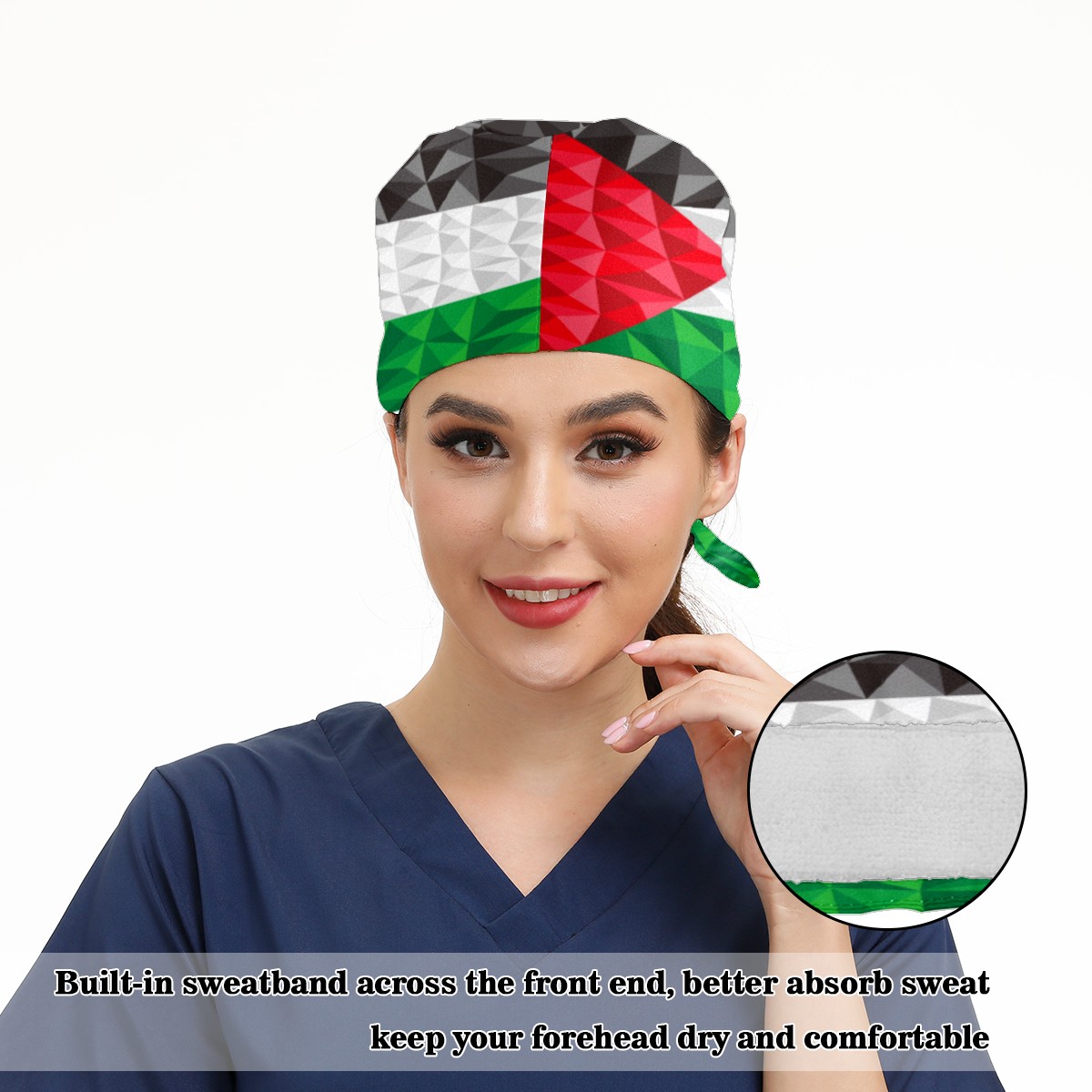 Palestine Flag Working Cap Button and Sweatband Adjustable Elastic Head Cover Hair Tie Back Work Hats for Women Men