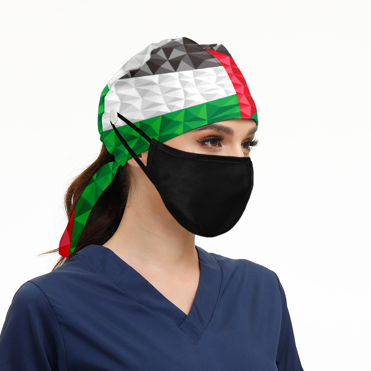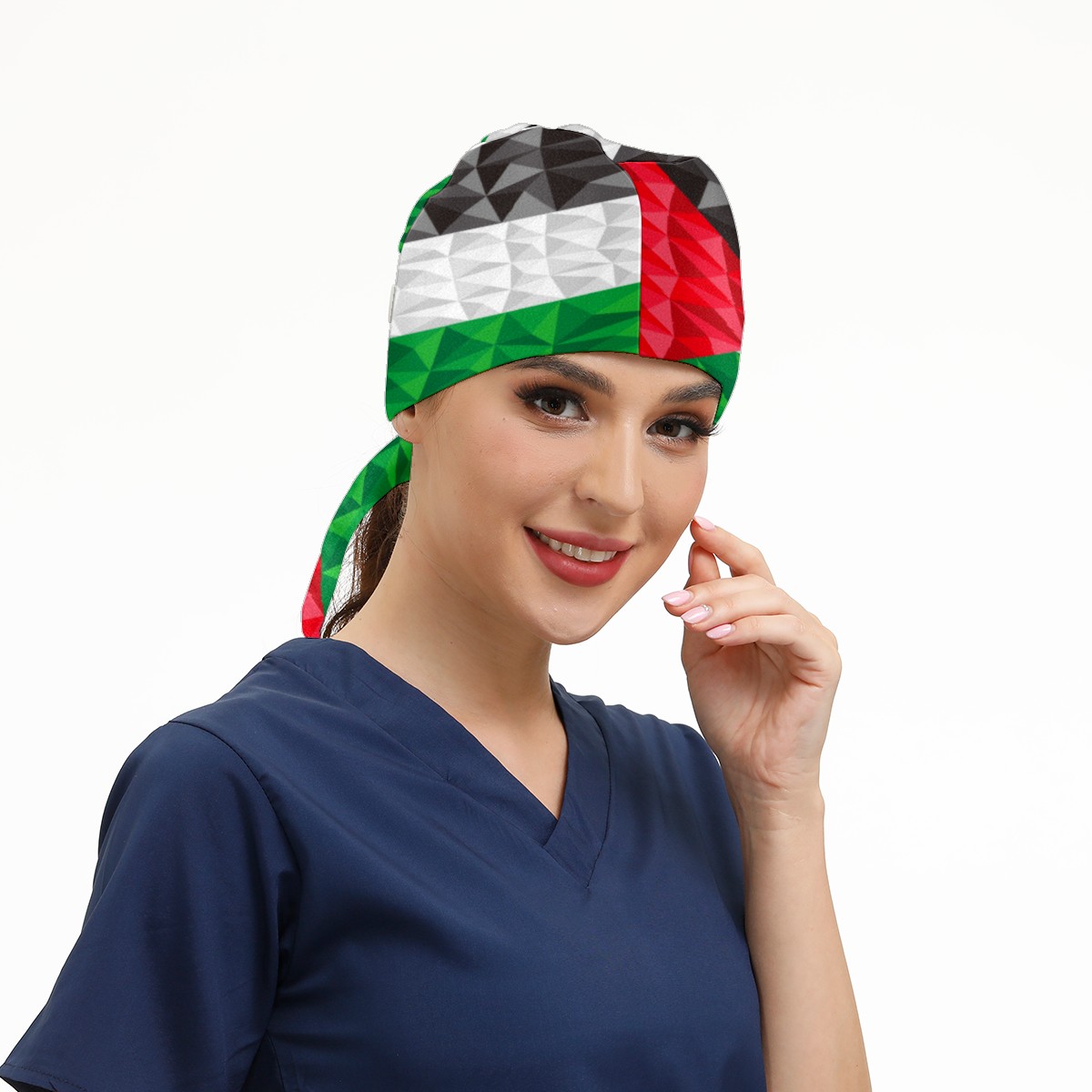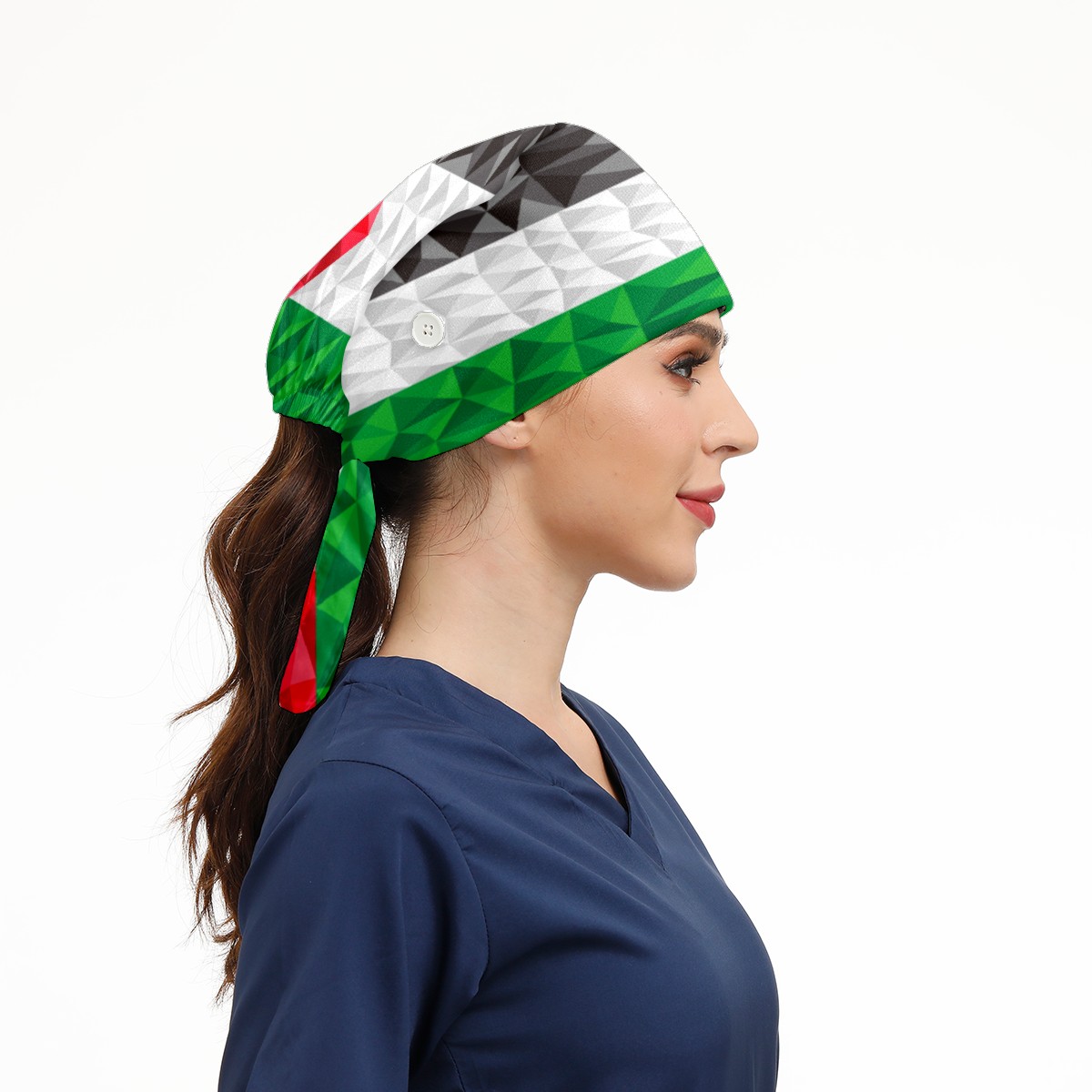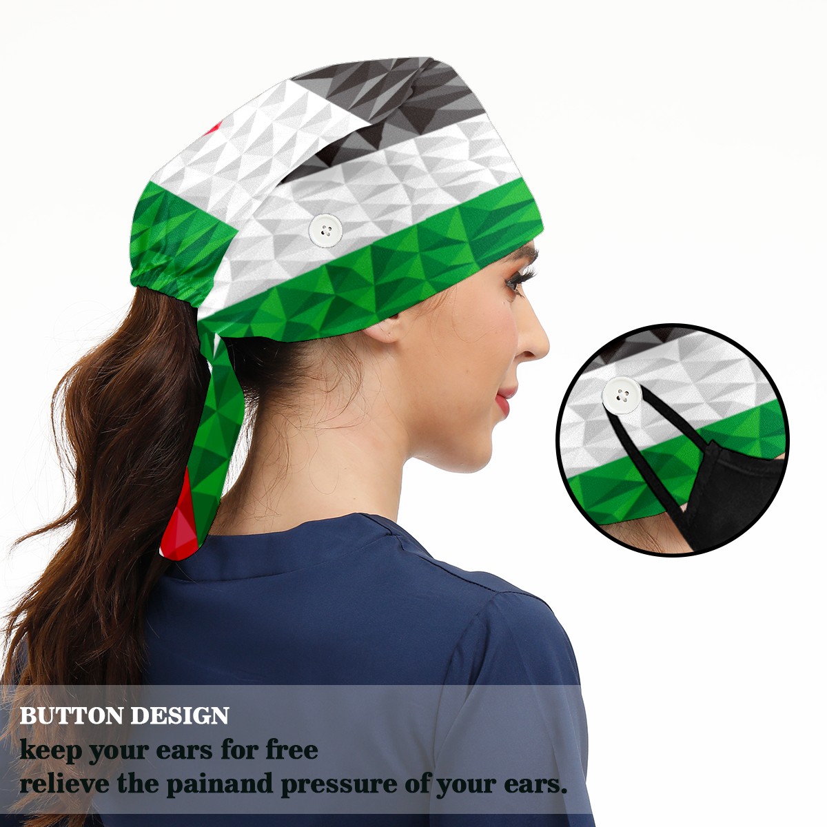 Palestine Flag Working Cap Button and Sweatband Adjustable Elastic Head Cover Hair Tie Back Work Hats for Women Men