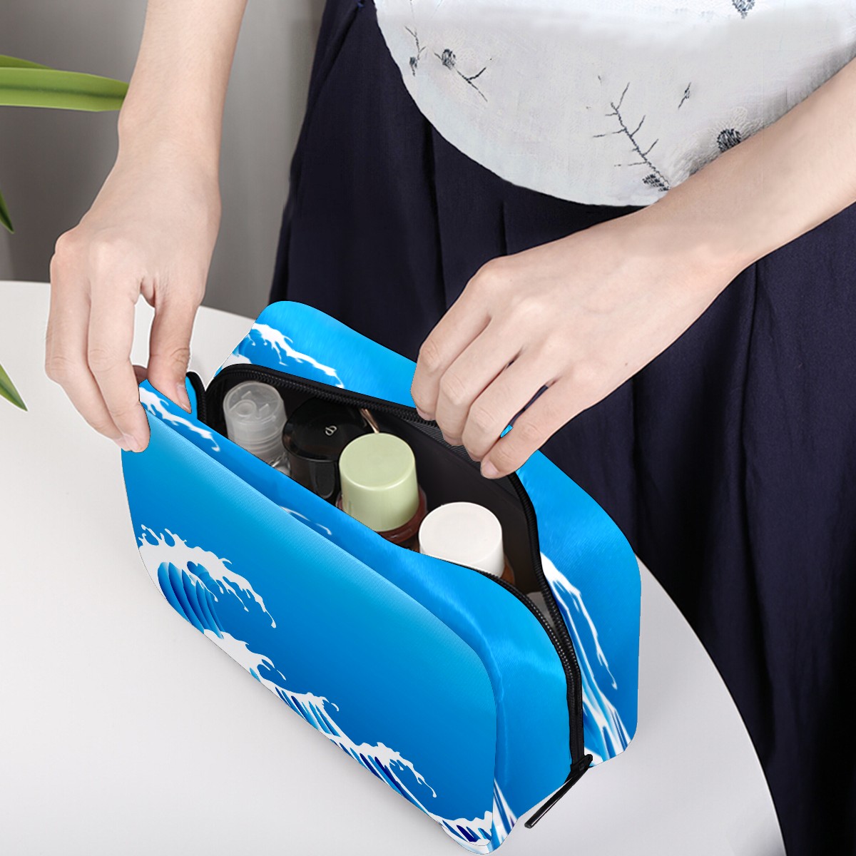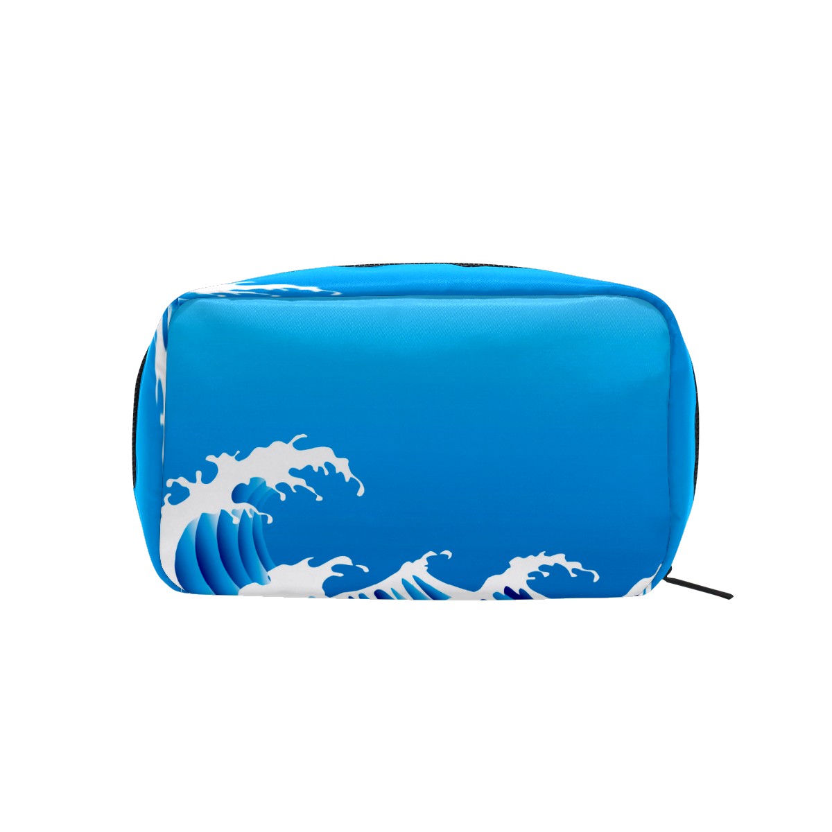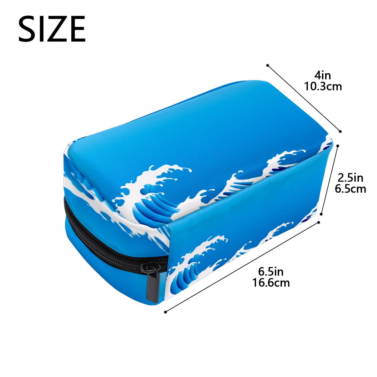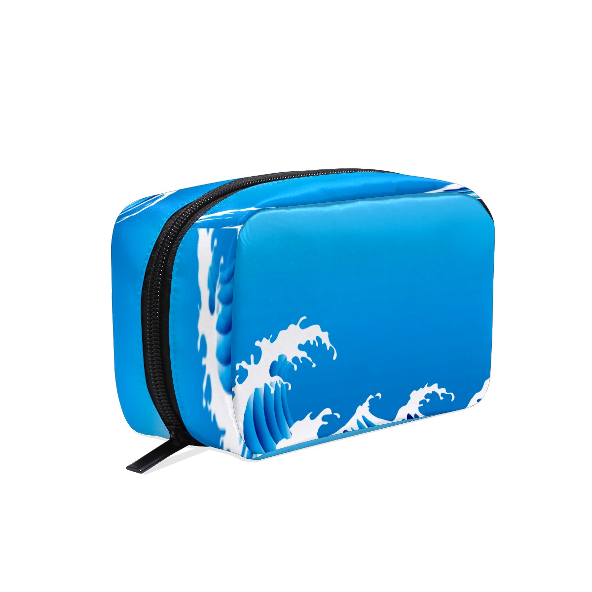 Cosmetic Bag for Women Girls Trave Makeup Bag Toiletry Case Pouch Accessories Organizer Blue Sea Wave Japanese