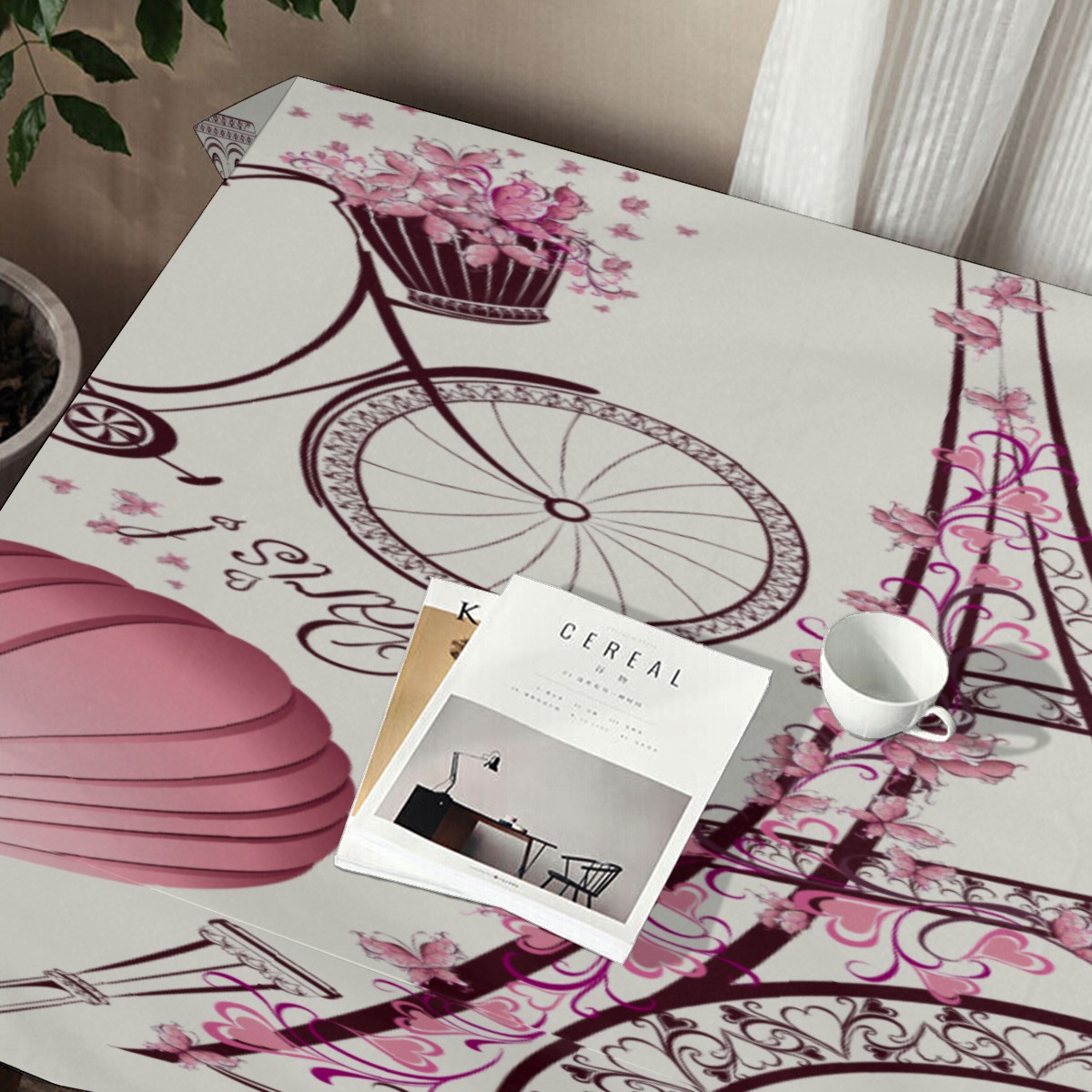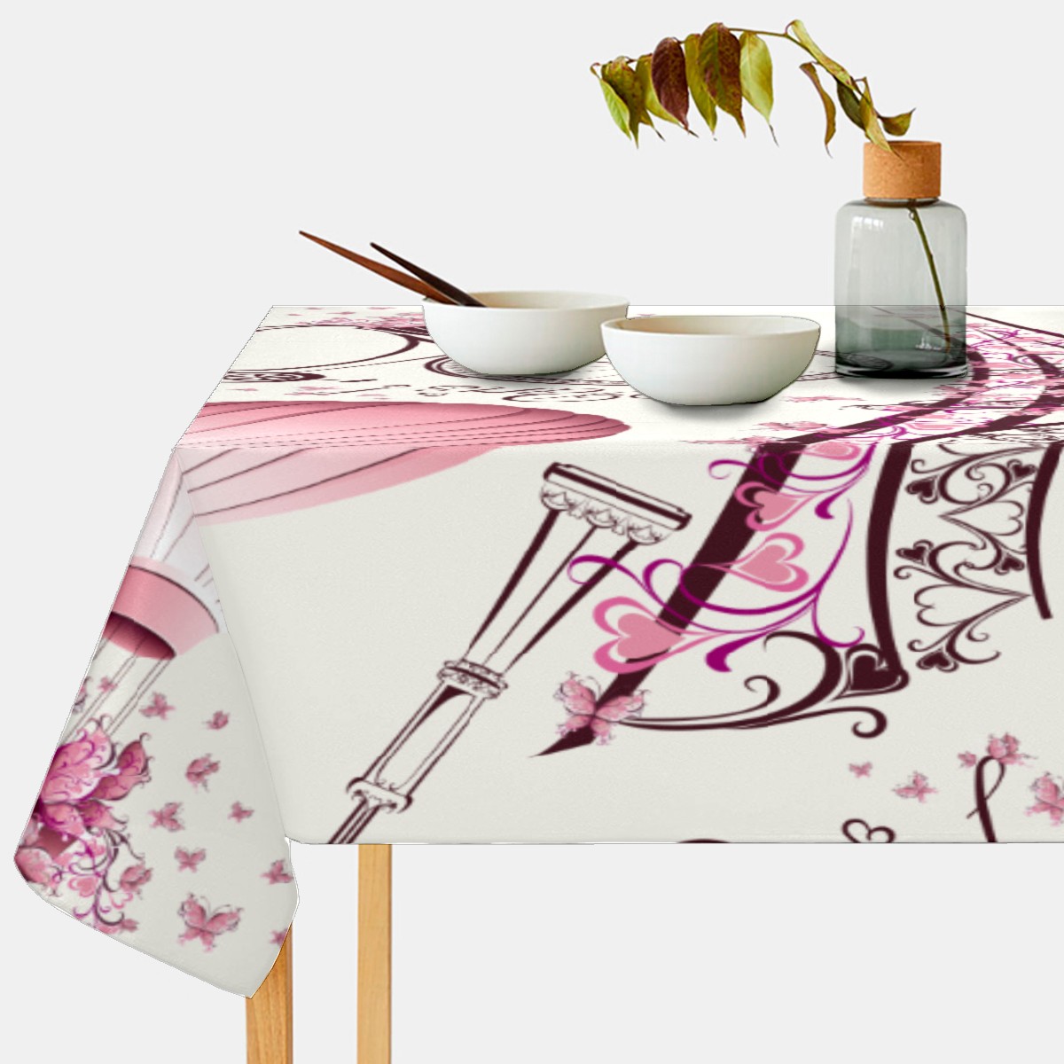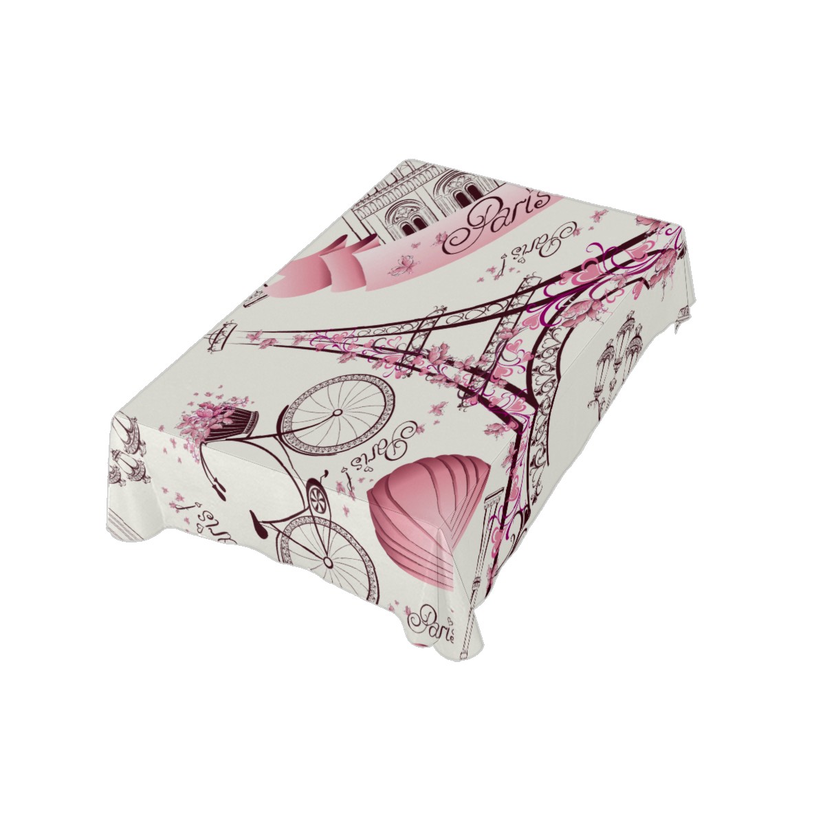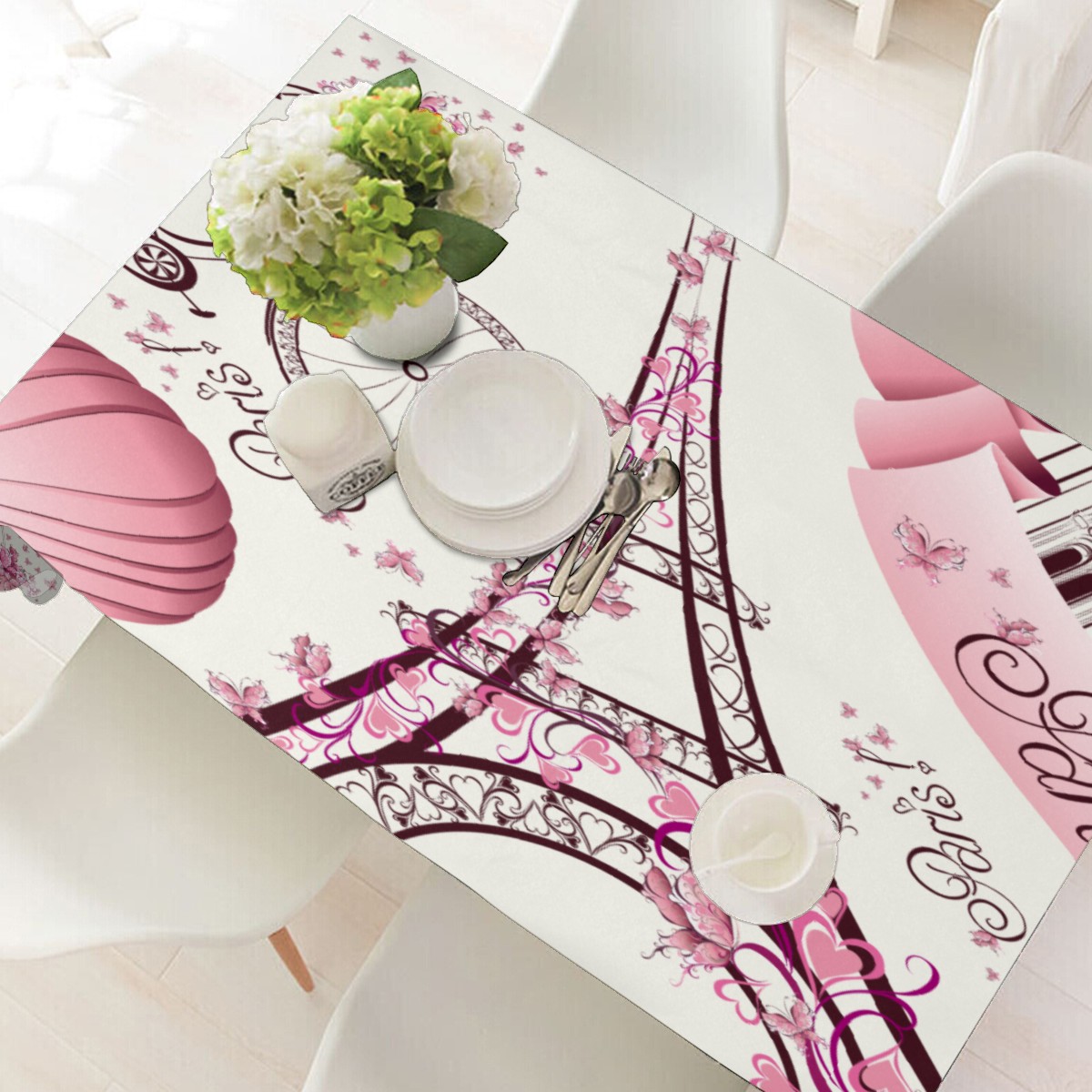 Rectangle Tablecloth Vintage Eiffel Tower Air Balloon Bike Floral Table Cloth 54x54in Table Cover for Kitchen Dining Table Party Home Decoration Washable Table Runner