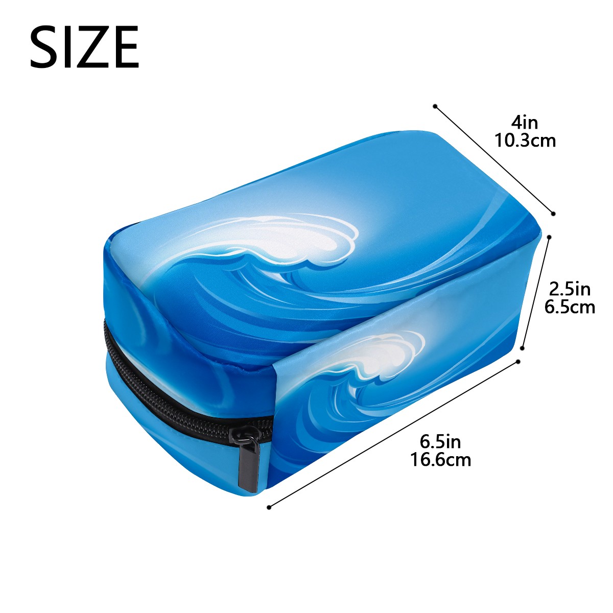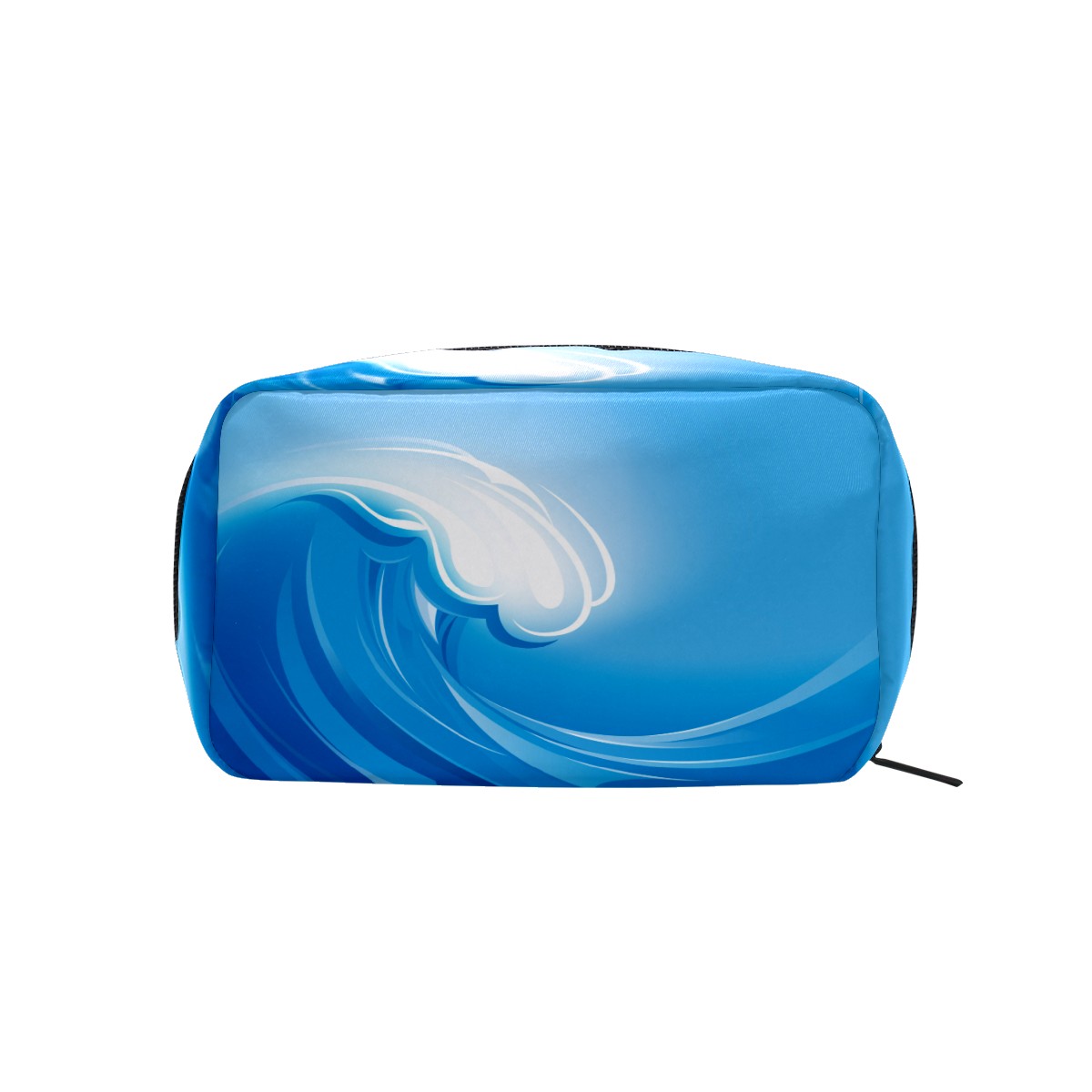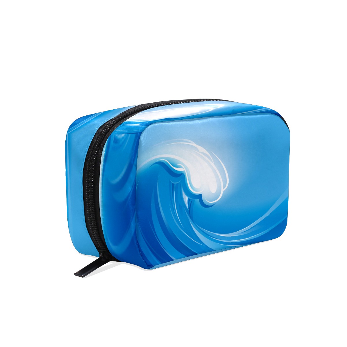 Cosmetic Bag for Women Girls Trave Makeup Bag Toiletry Case Pouch Accessories Organizer Blue Japanese Wave