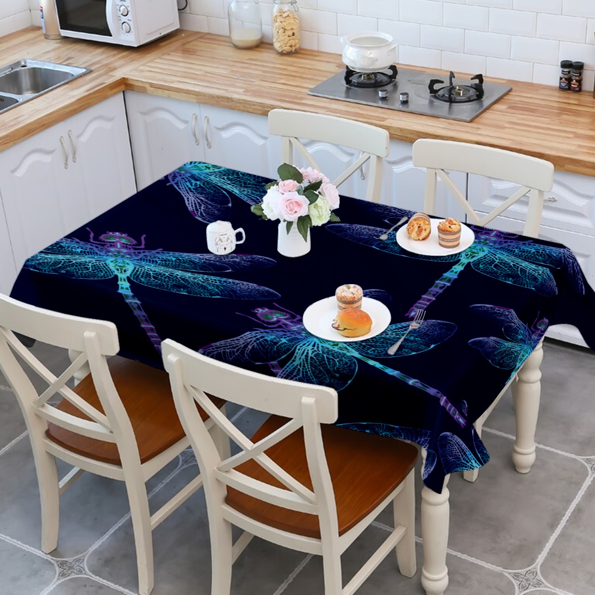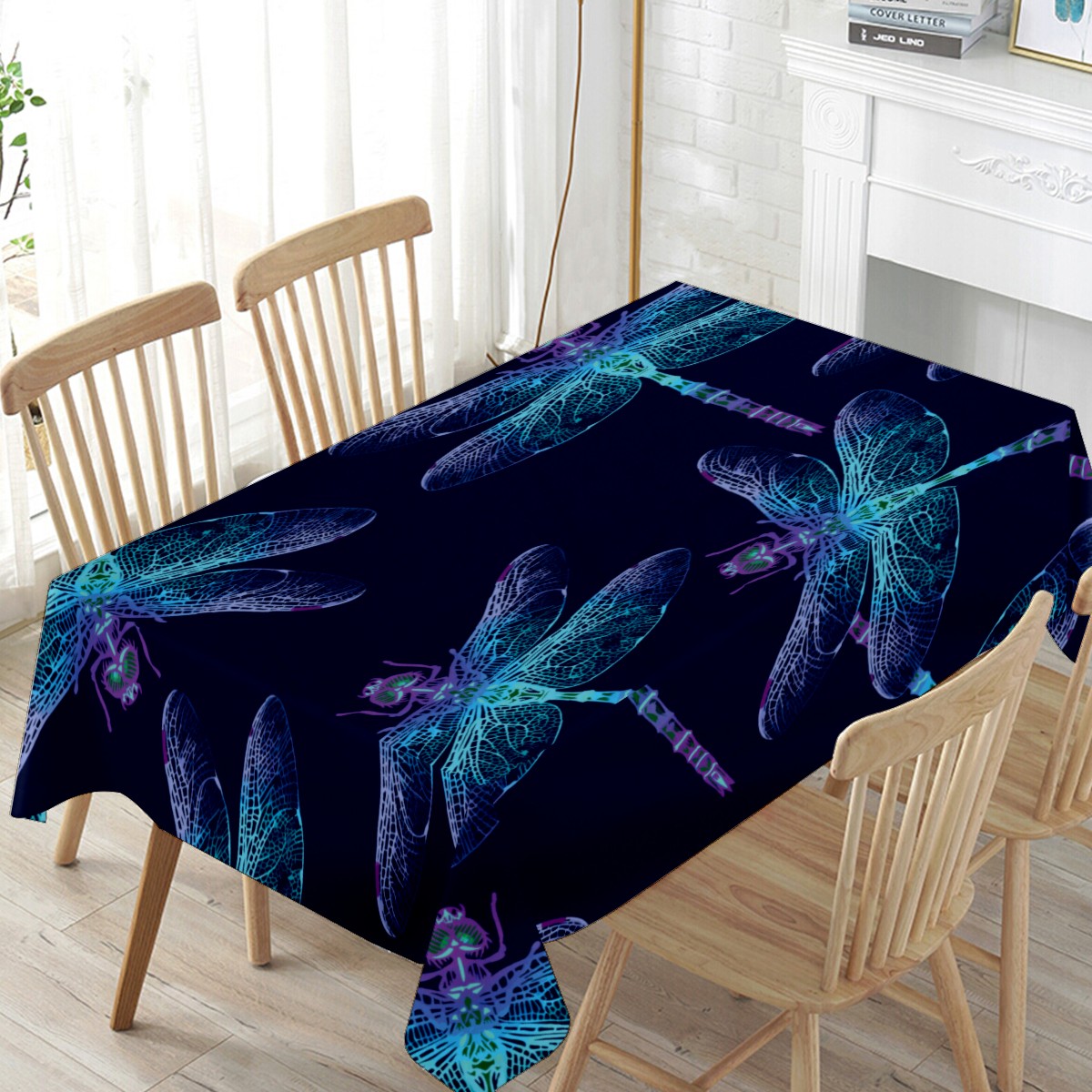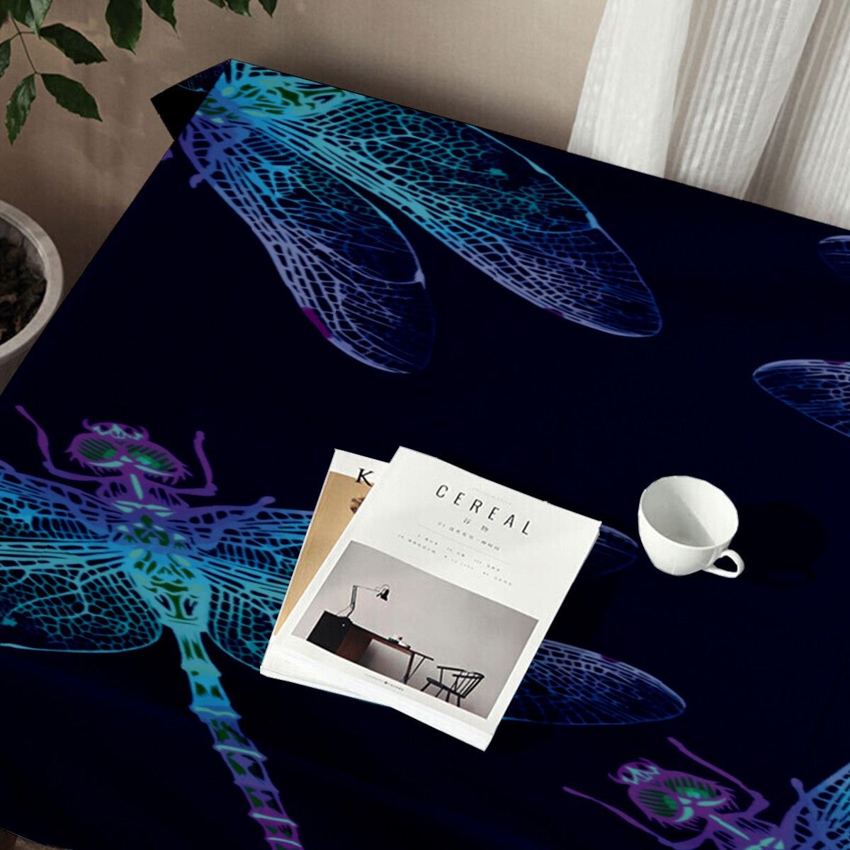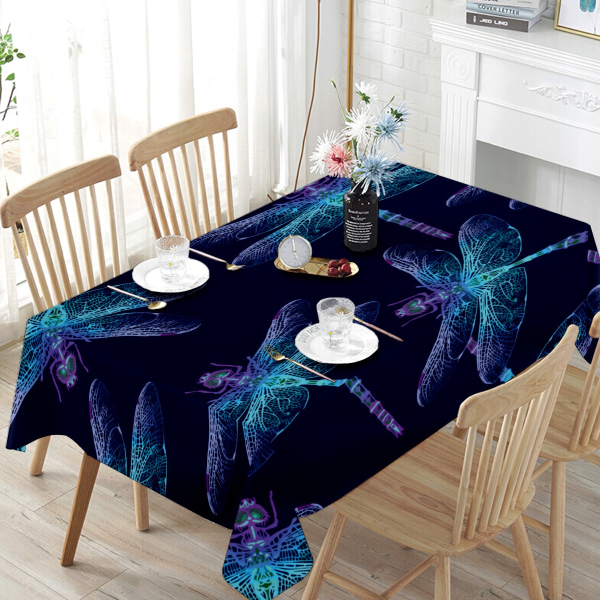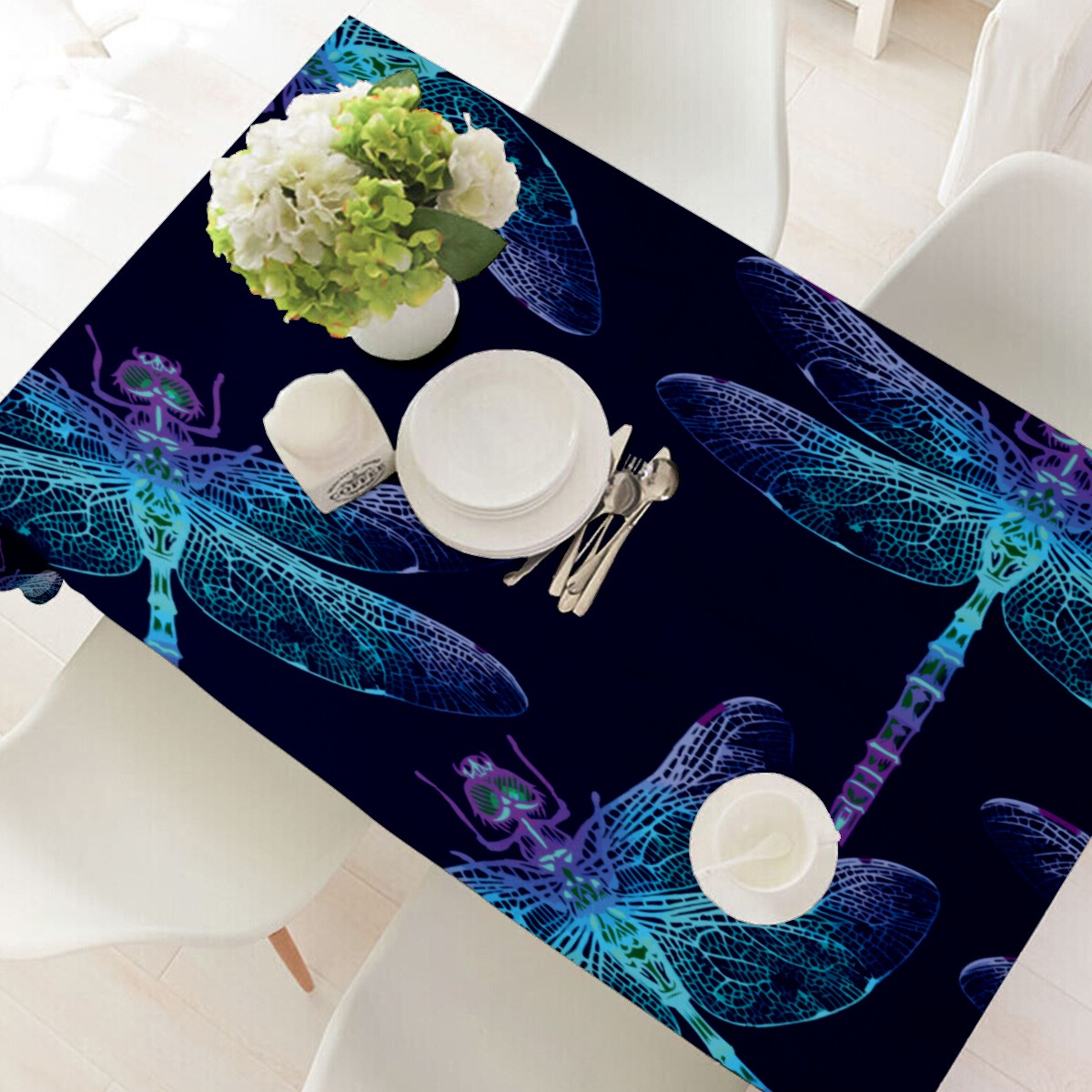 Rectangle Tablecloth Dragonfly Blue Abstract Watercolor Table Cloth 54x54in Table Cover for Kitchen Dining Table Party Home Decoration Washable Table Runner
