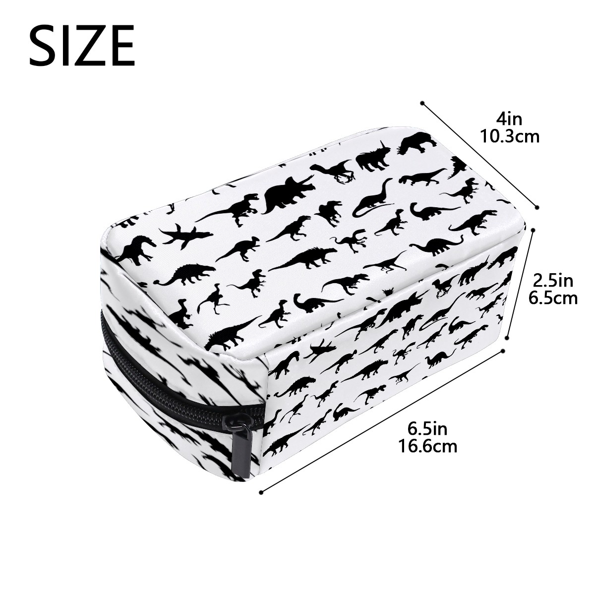 Cosmetic Bag for Women Girls Trave Makeup Bag Toiletry Case Pouch Accessories Organizer Black White Dinosaur World