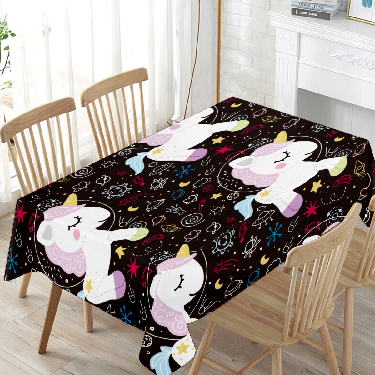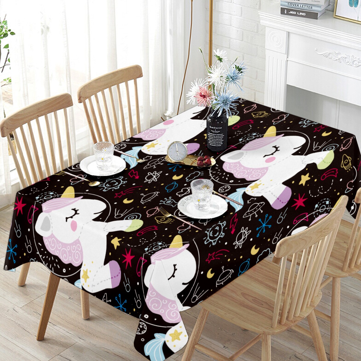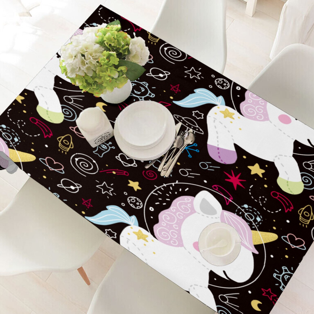 Rectangle Tablecloth Unicorn Pony Star Rocket Table Cloth 54x54in Table Cover for Kitchen Dining Table Party Home Decoration Washable Table Runner