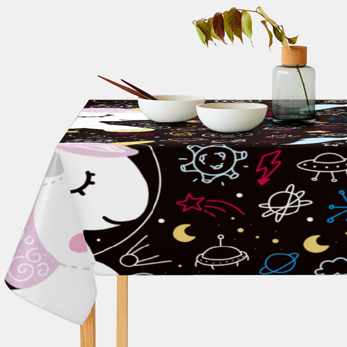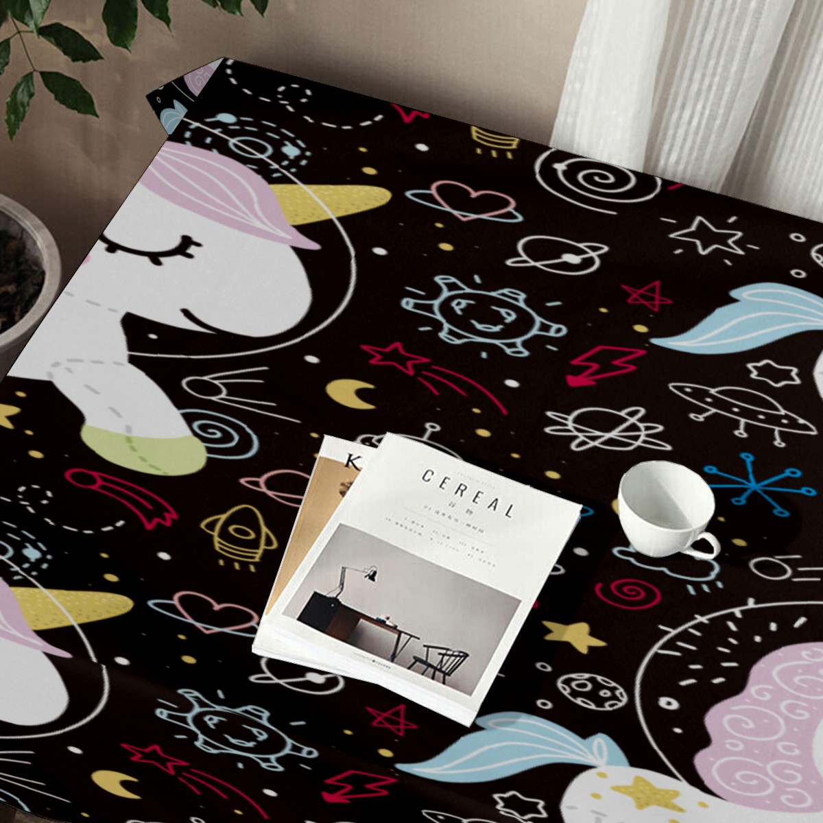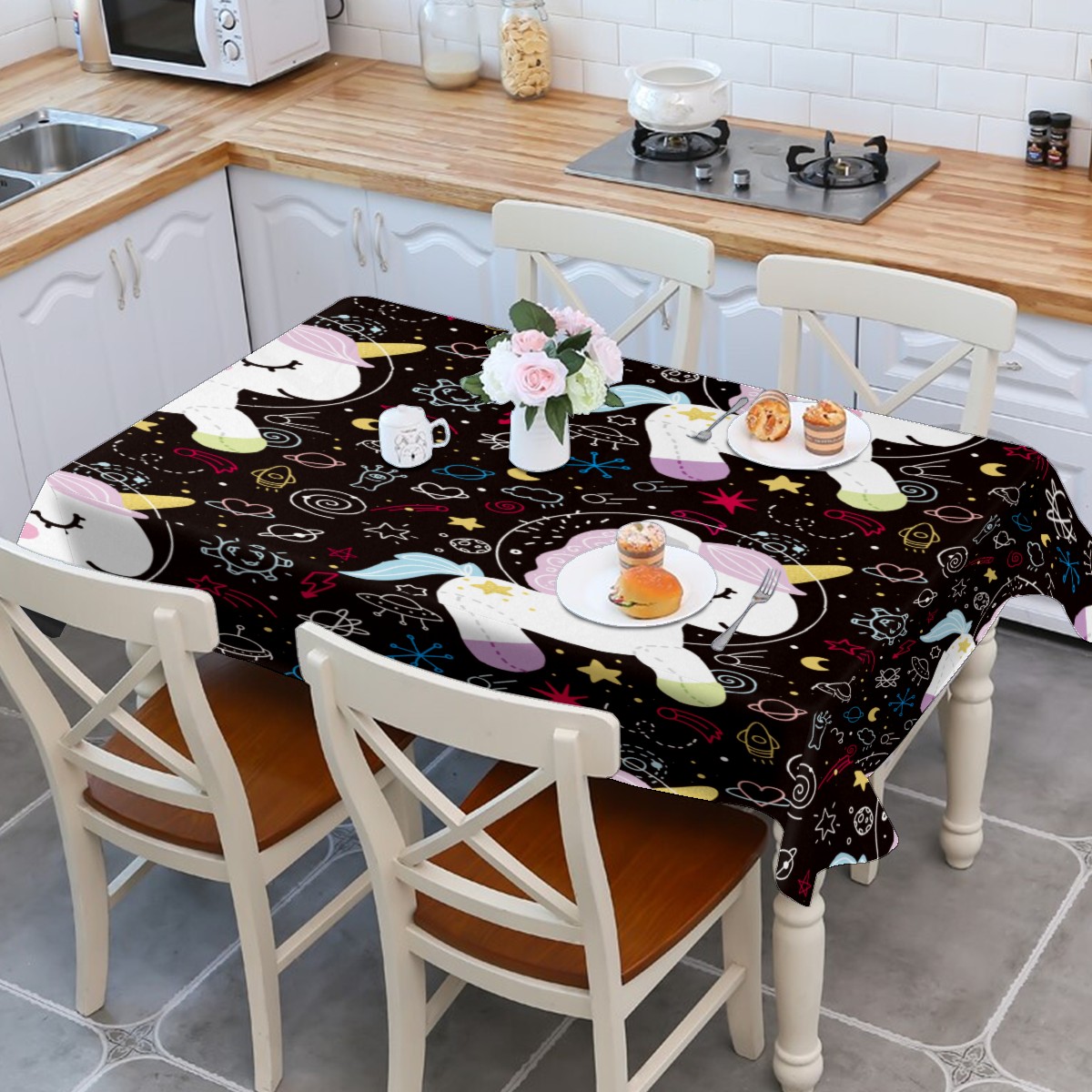 Rectangle Tablecloth Unicorn Pony Star Rocket Table Cloth 54x54in Table Cover for Kitchen Dining Table Party Home Decoration Washable Table Runner