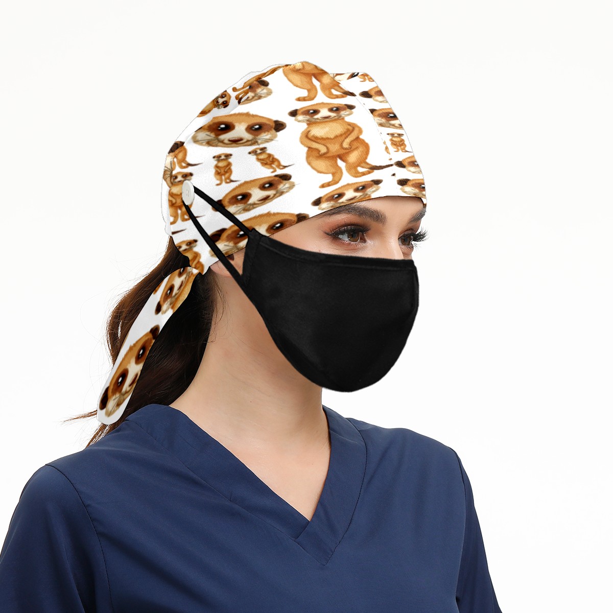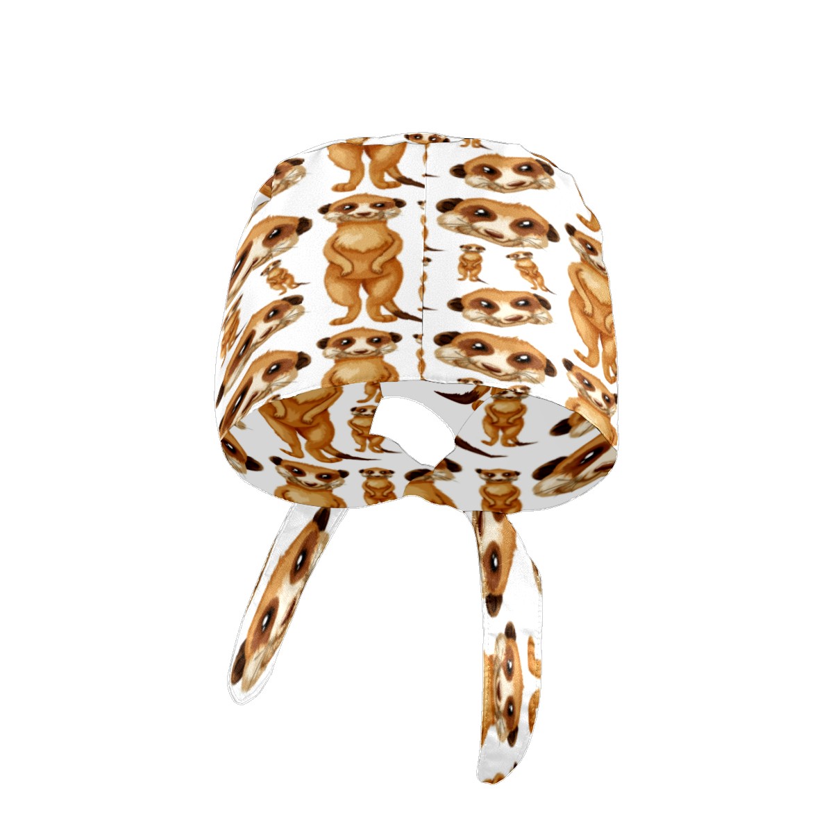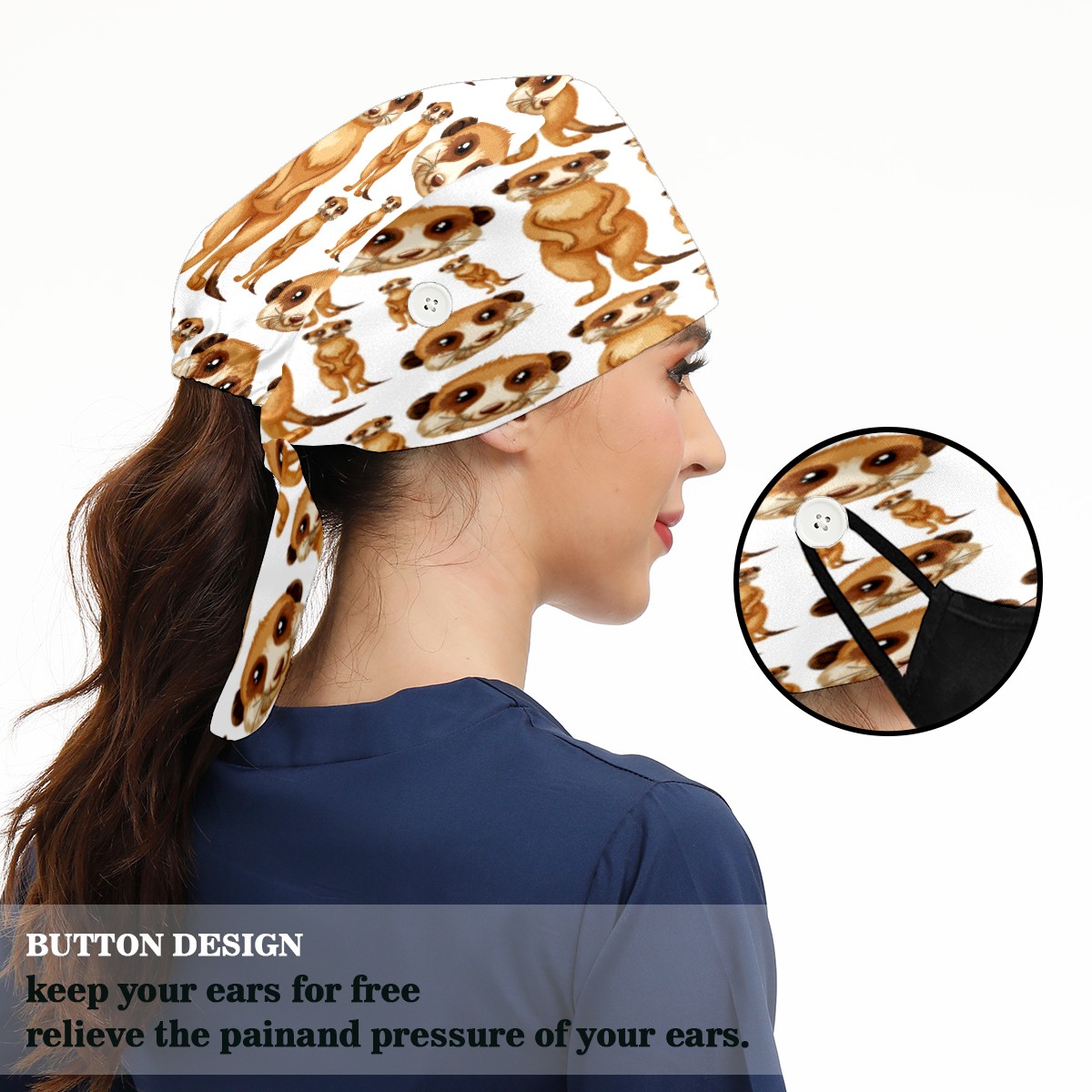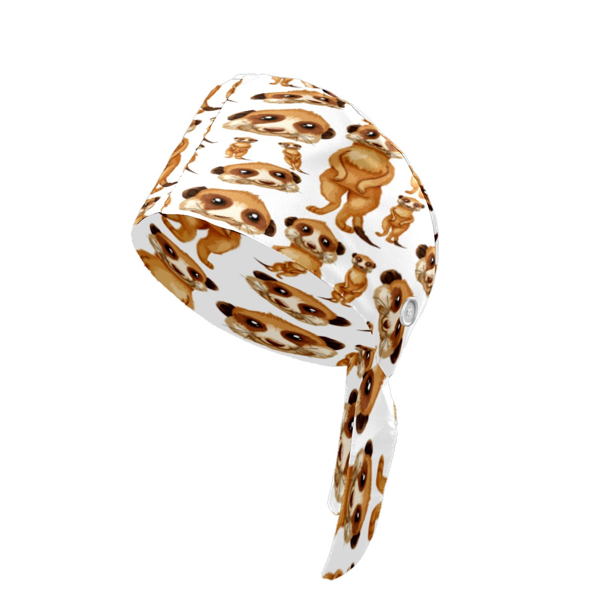 Cute Cartoon Meerkats On White Background Working Cap Button and Sweatband Adjustable Elastic Head Cover Hair Tie Back Work Hats for Women Men