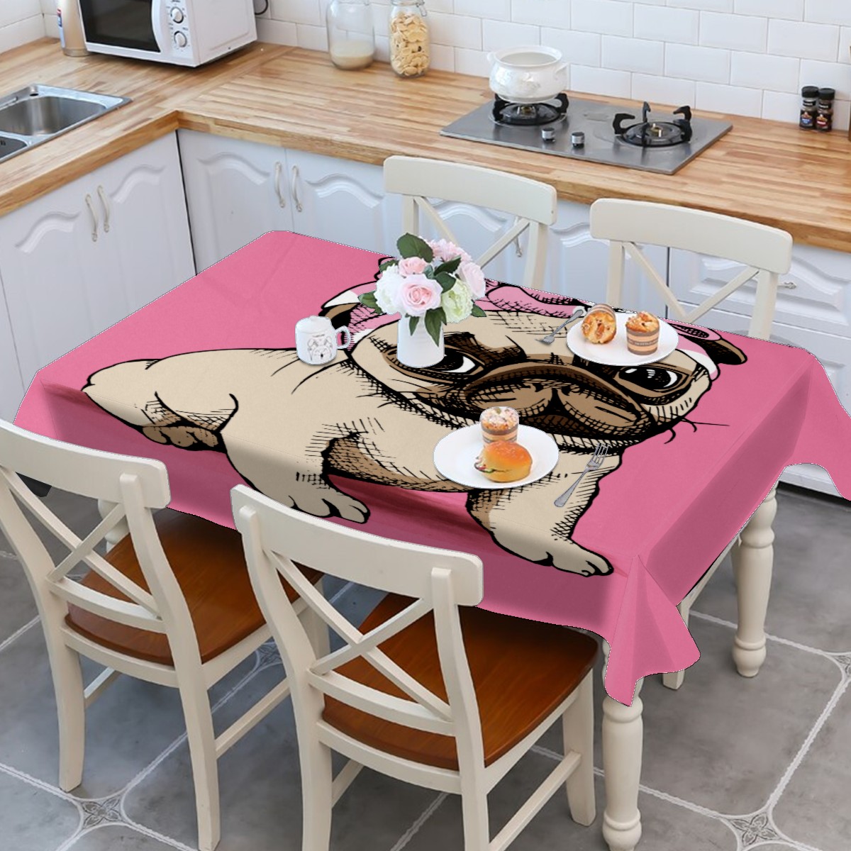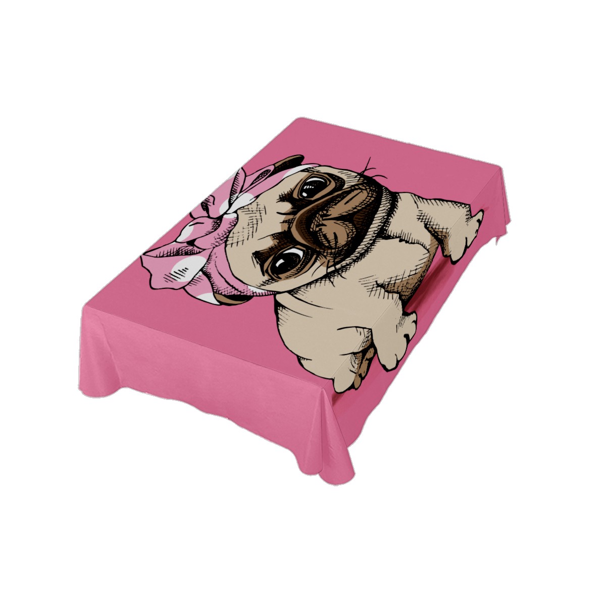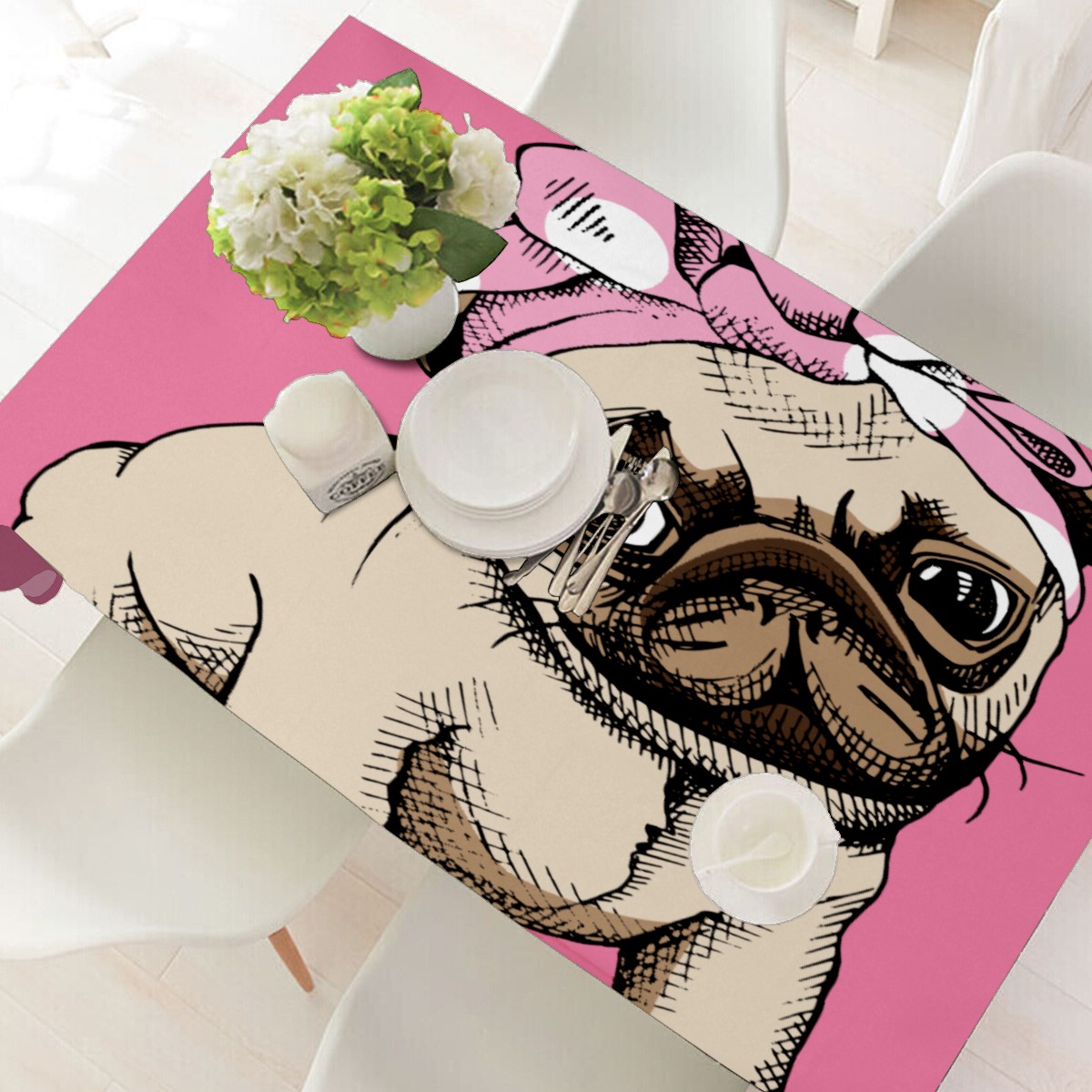 Rectangle Tablecloth Cute Pug Puppy Dog Pink Table Cloth 54x54in Table Cover for Kitchen Dining Table Party Home Decoration Washable Table Runner