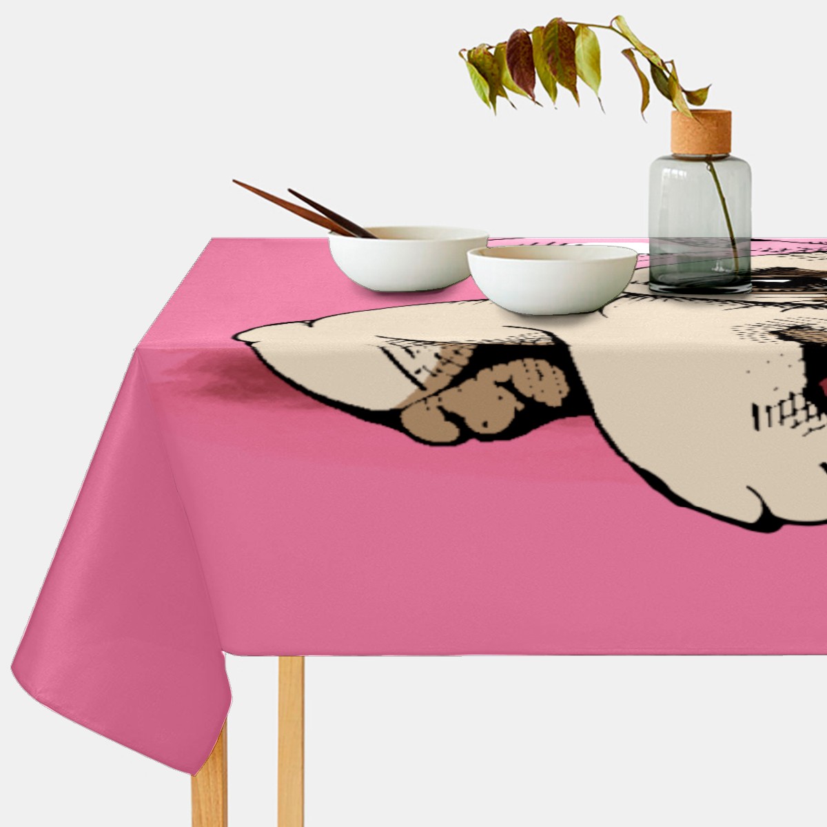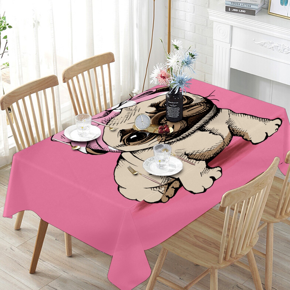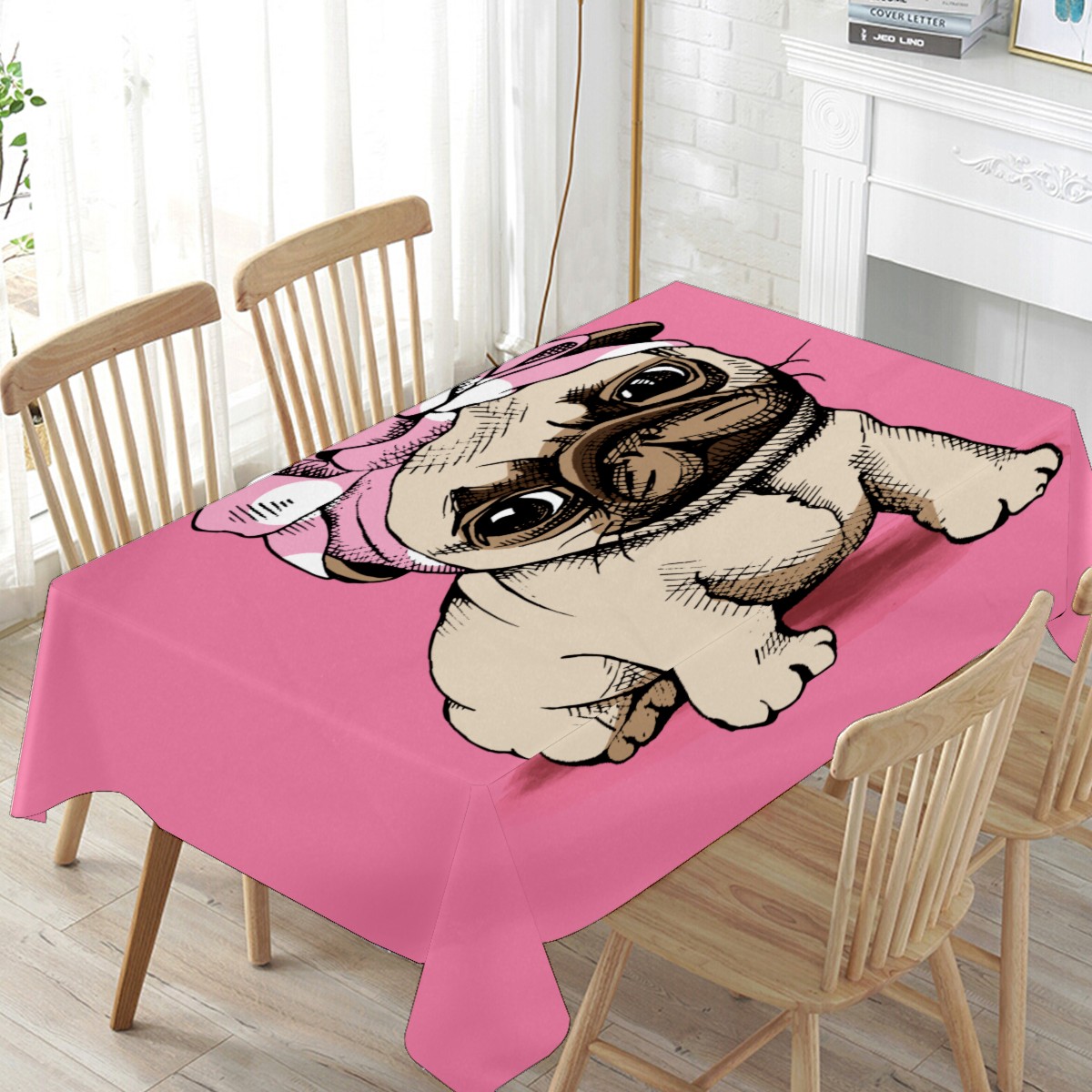 Rectangle Tablecloth Cute Pug Puppy Dog Pink Table Cloth 54x54in Table Cover for Kitchen Dining Table Party Home Decoration Washable Table Runner