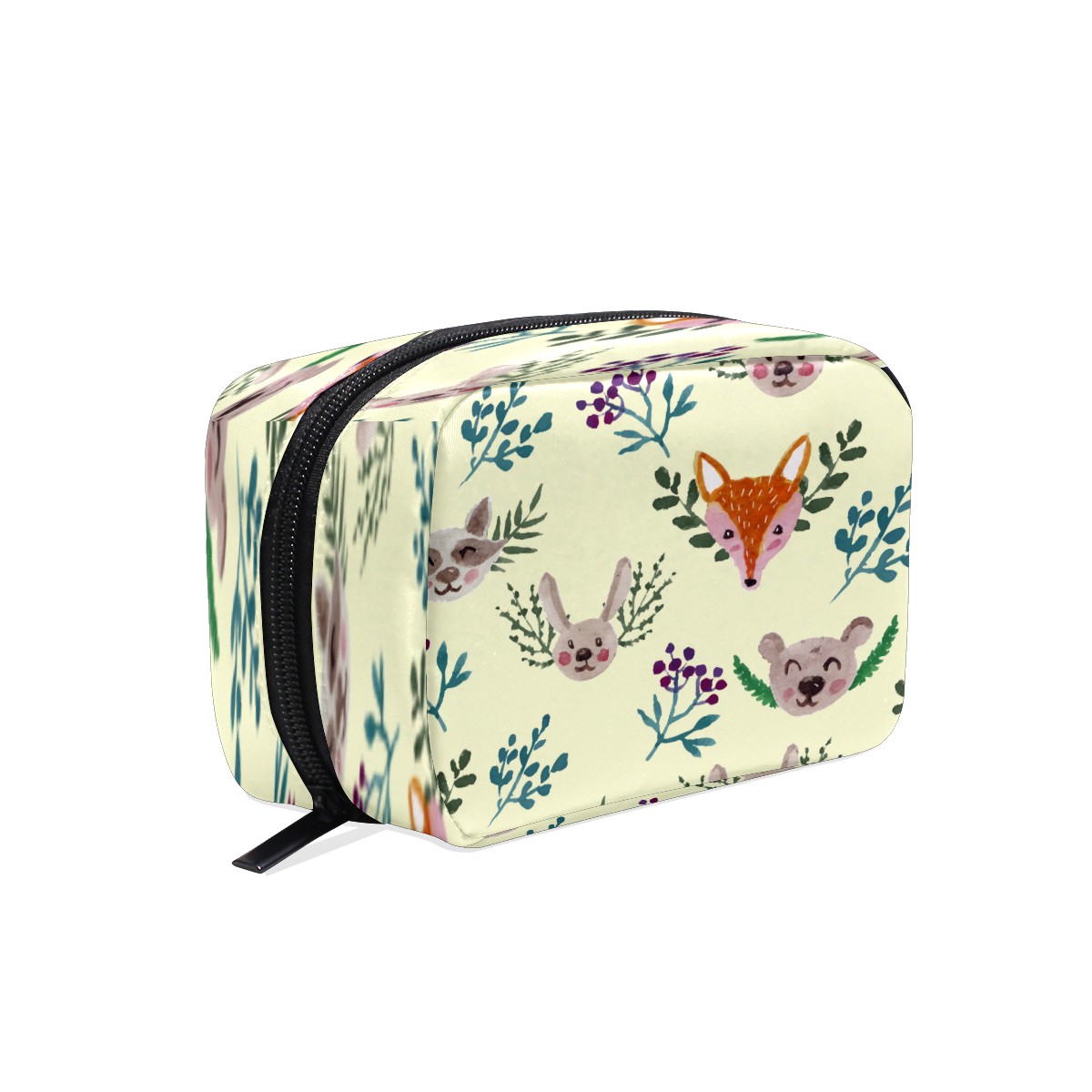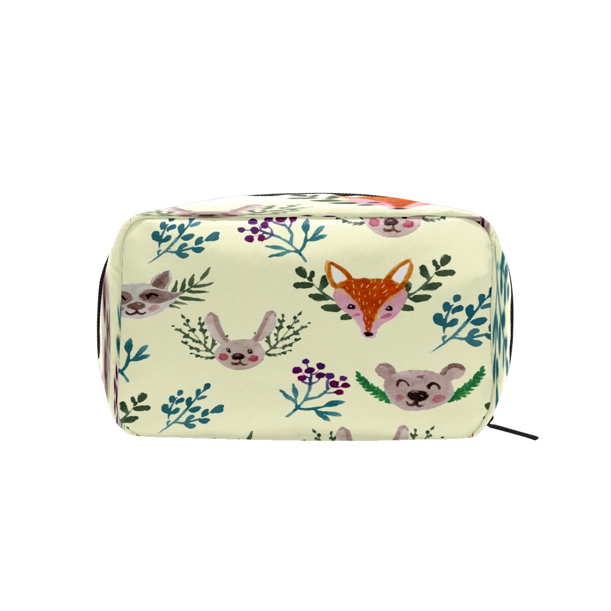 Cosmetic Bag for Women Girls Trave Makeup Bag Toiletry Case Pouch Accessories Organizer Animals Fox Rabbit Bear Head Funny