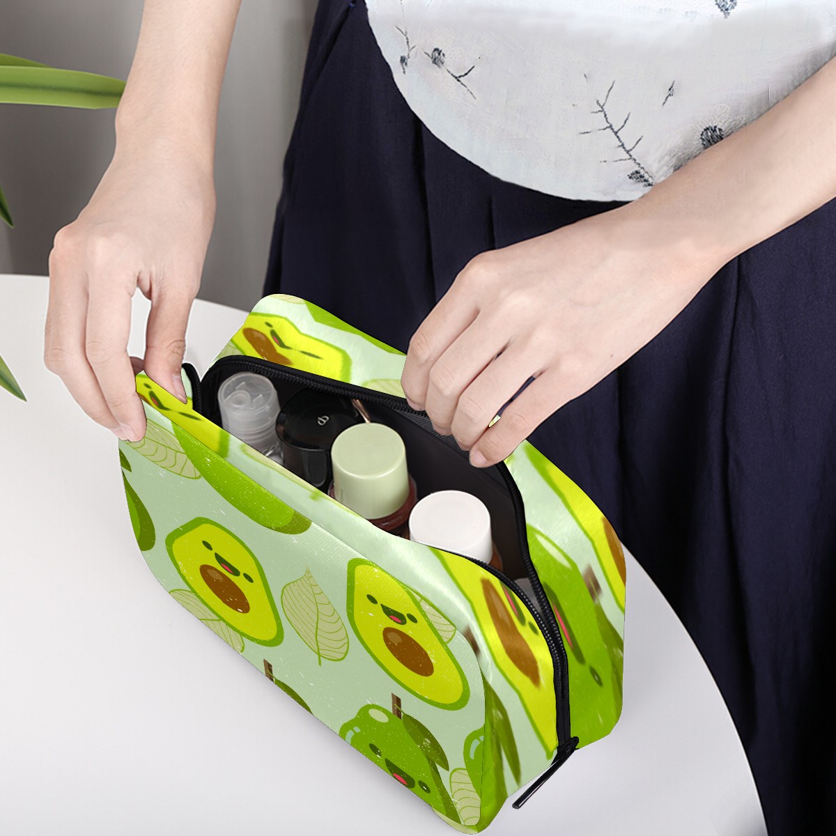 Cosmetic Bag for Women Girls Trave Makeup Bag Toiletry Case Pouch Accessories Organizer Avocado Fruit Green Pattern