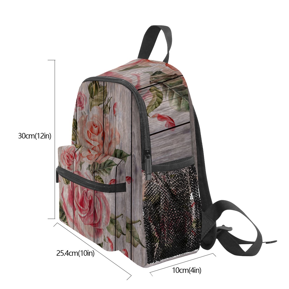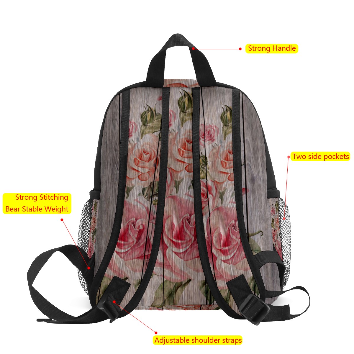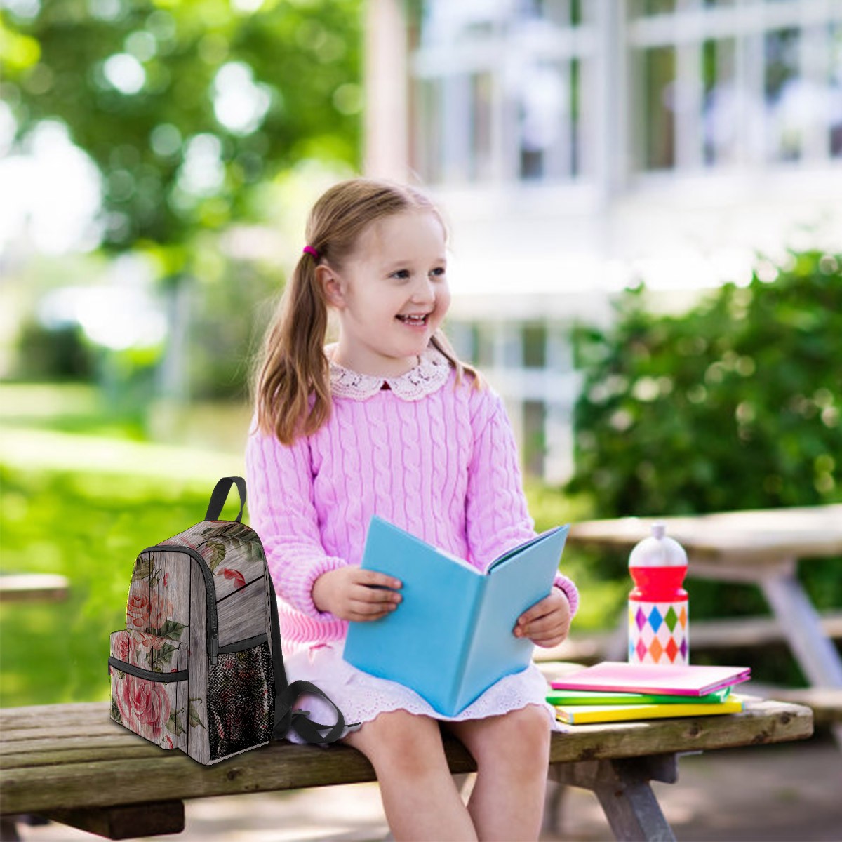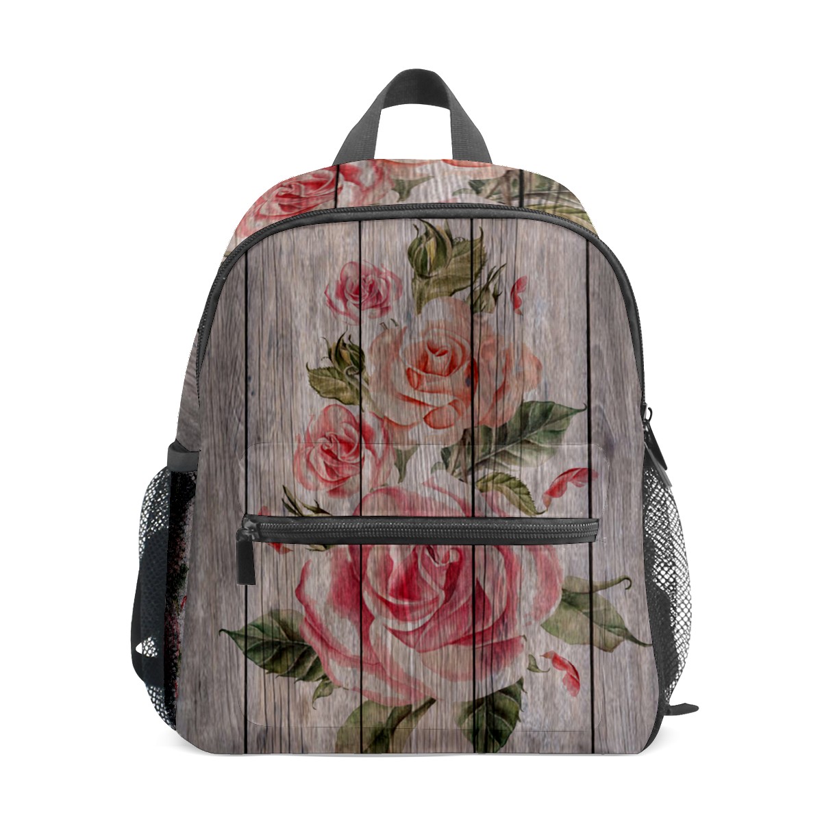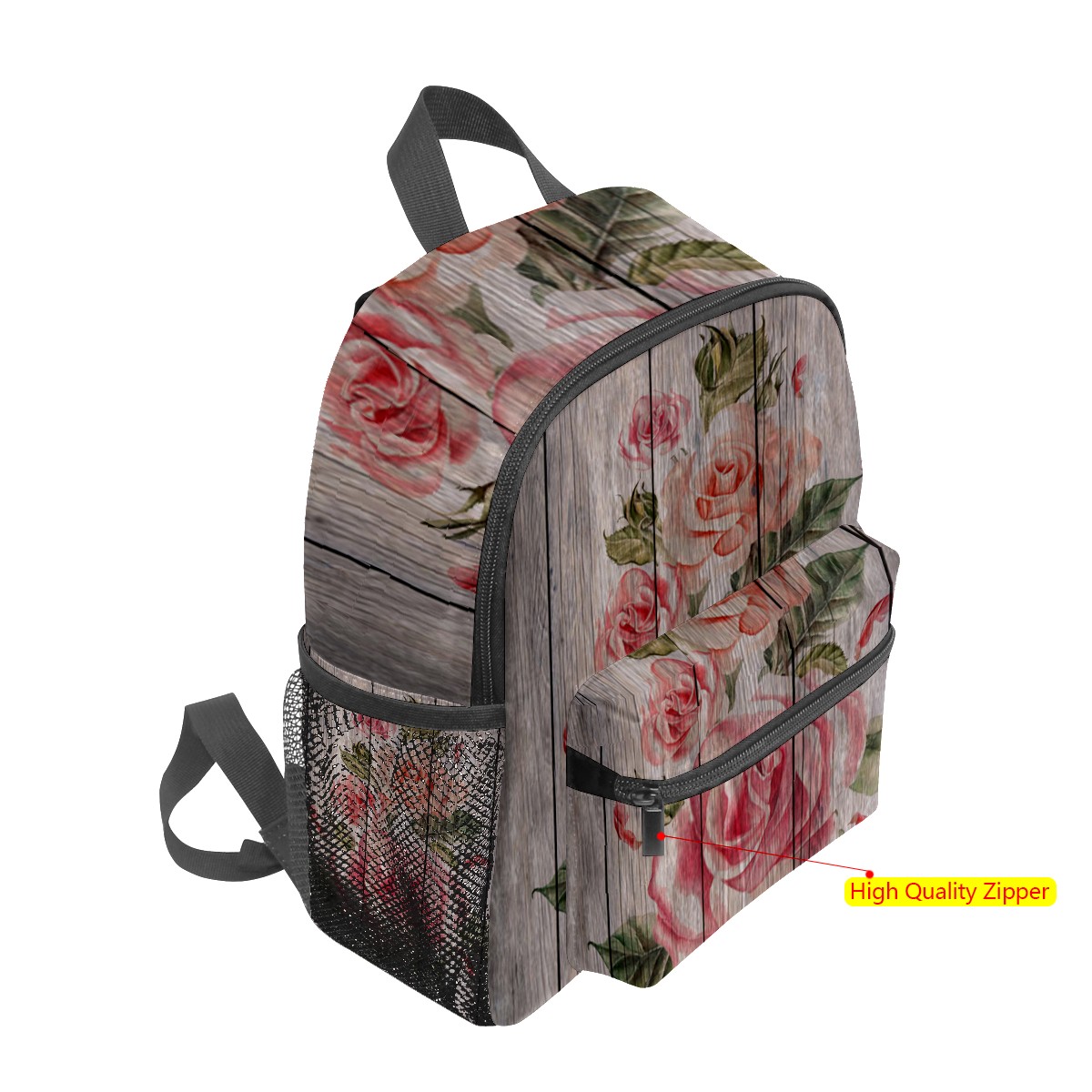 Mini Backpack Roses And Wooden Cute Lightweight School Bags Small Daypack Purse Travel Backpacks Woman Shoulder Bag for Kids Girls Boys(3-8 Years Old)