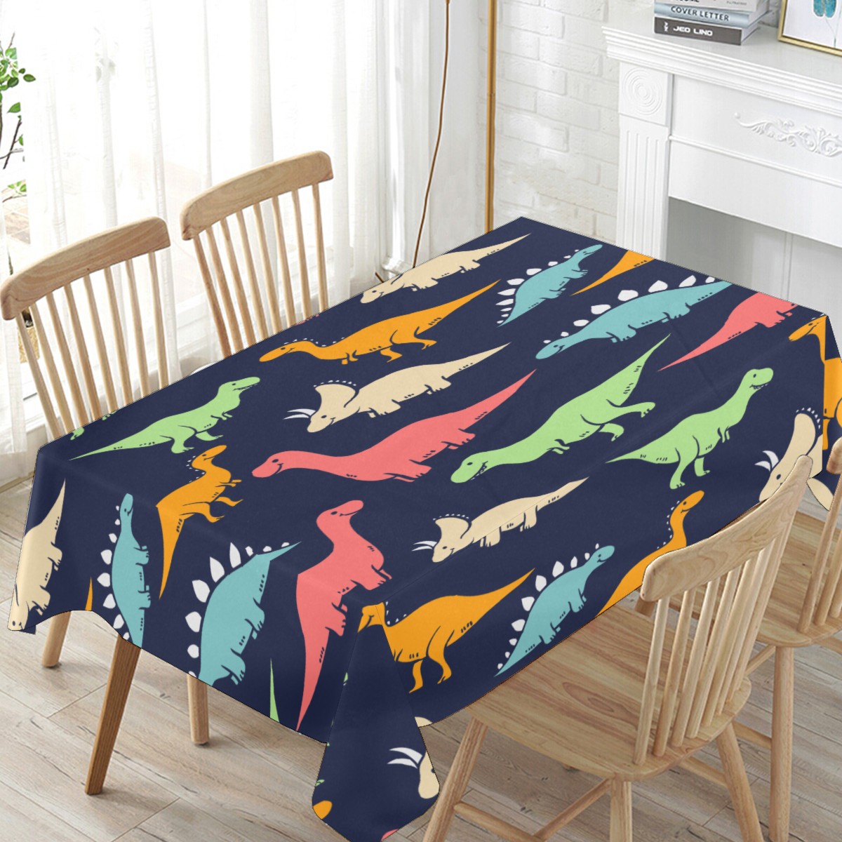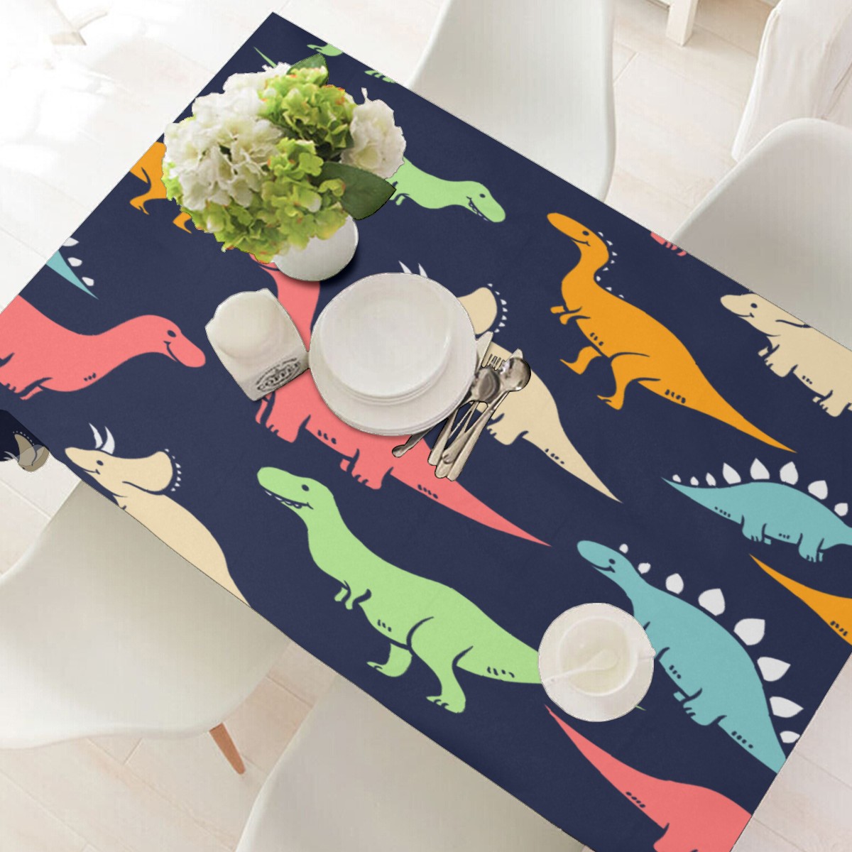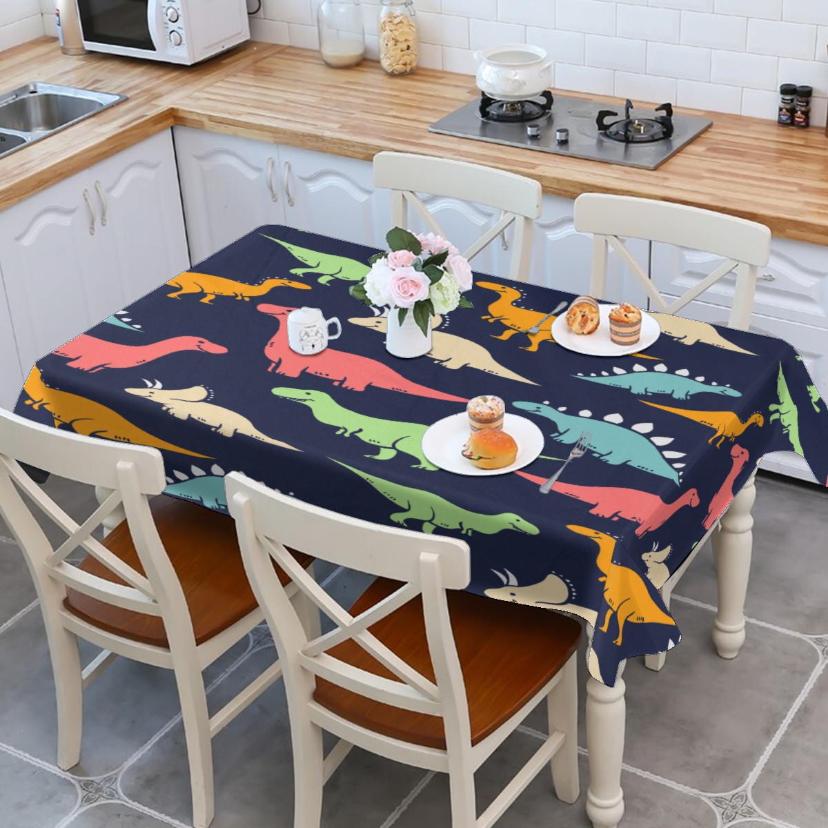Rectangle Tablecloth Cute Dinosaurios Colorful Table Cloth 54x54in Table Cover for Kitchen Dining Table Party Home Decoration Washable Table Runner