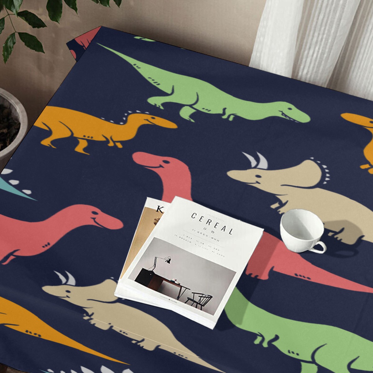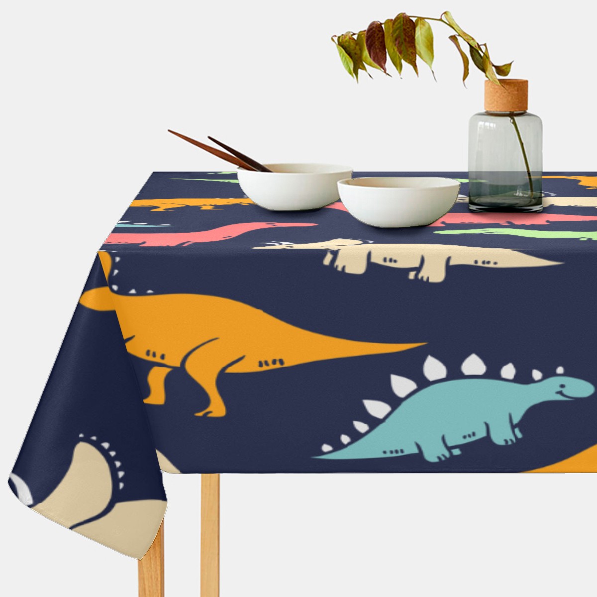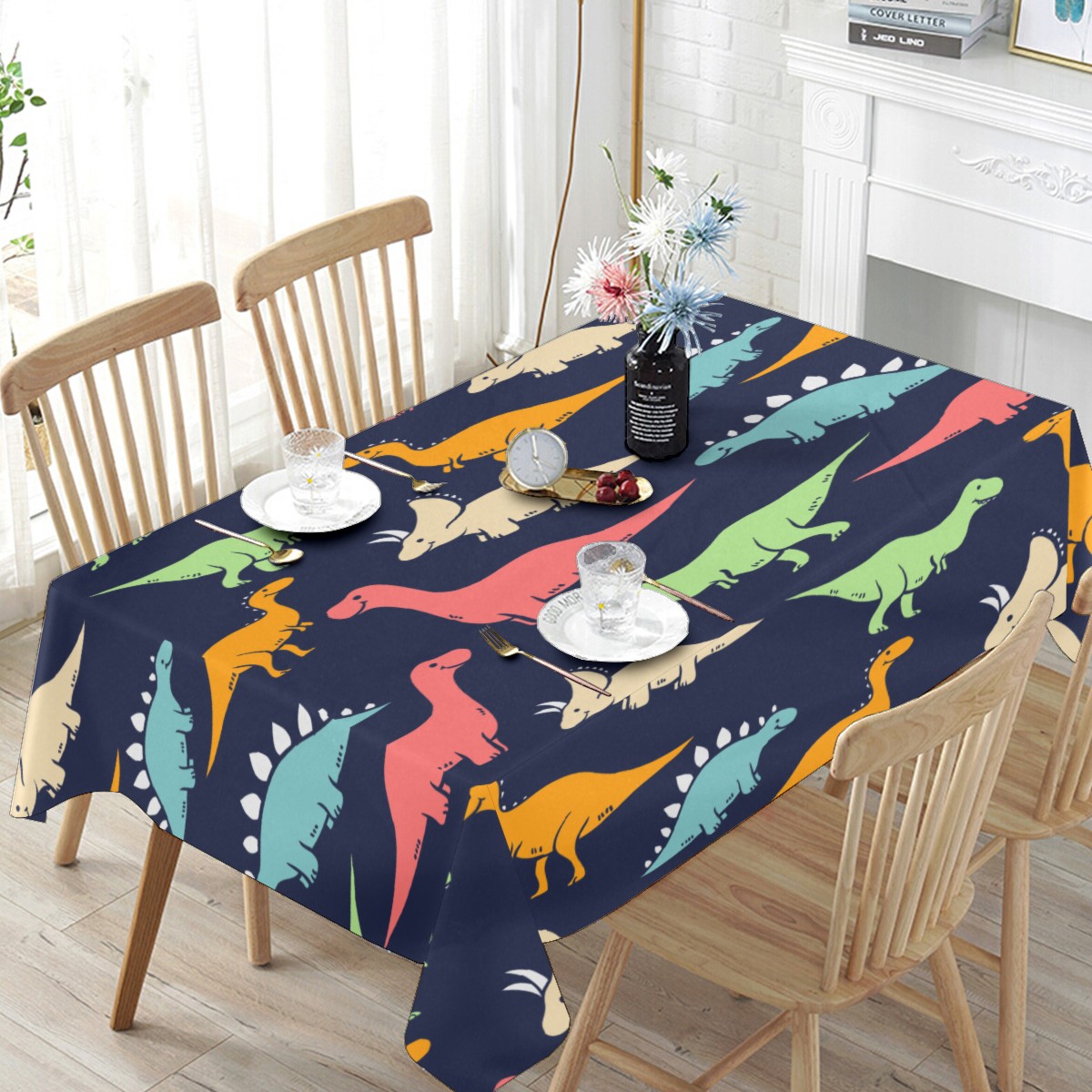 Rectangle Tablecloth Cute Dinosaurios Colorful Table Cloth 54x54in Table Cover for Kitchen Dining Table Party Home Decoration Washable Table Runner