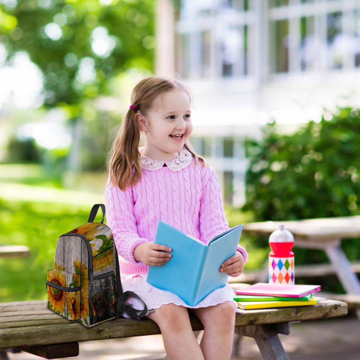 Mini Backpack Sunflower And Wooden Cute Lightweight School Bags Small Daypack Purse Travel Backpacks Woman Shoulder Bag for Kids Girls Boys(3-8 Years Old)