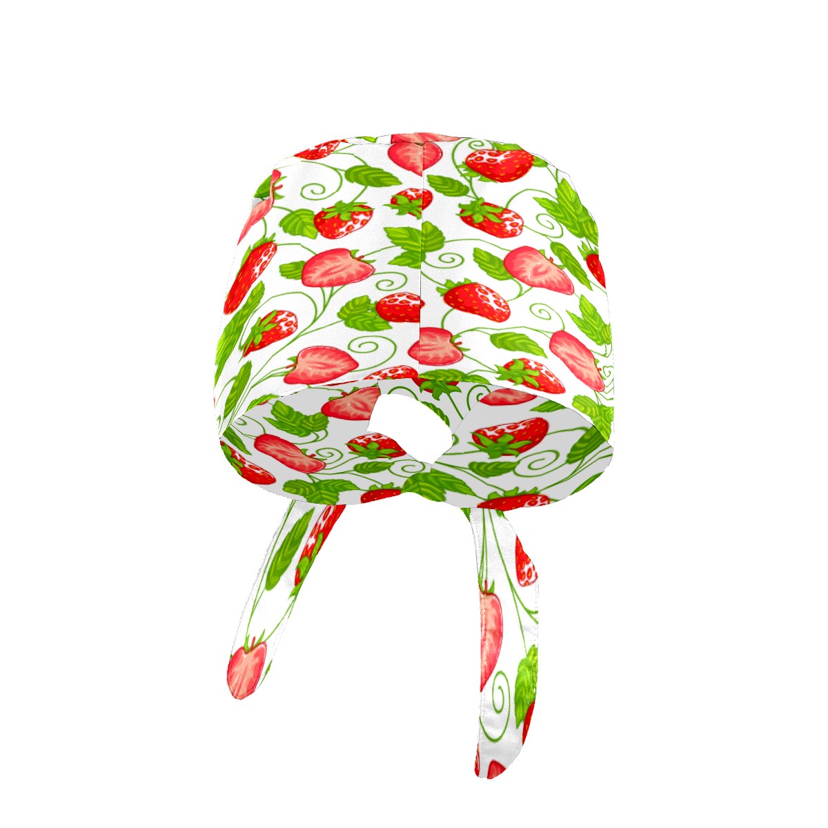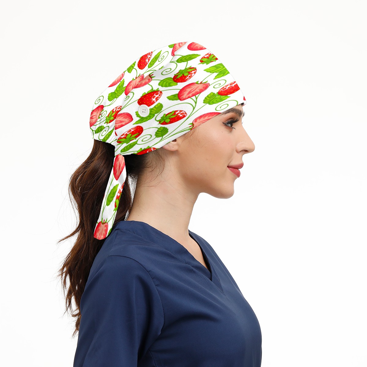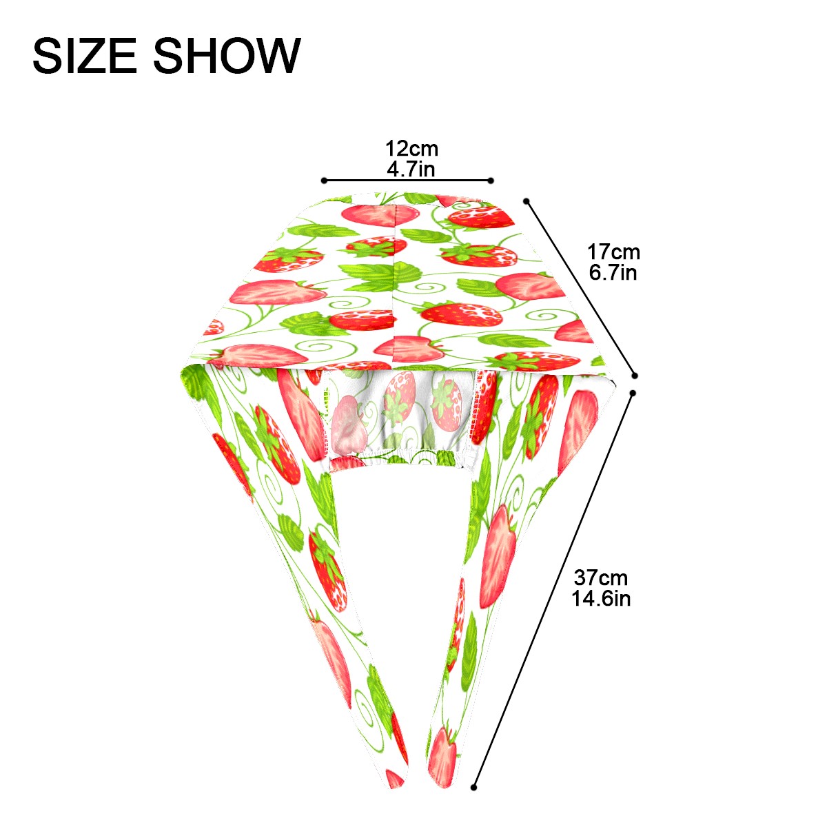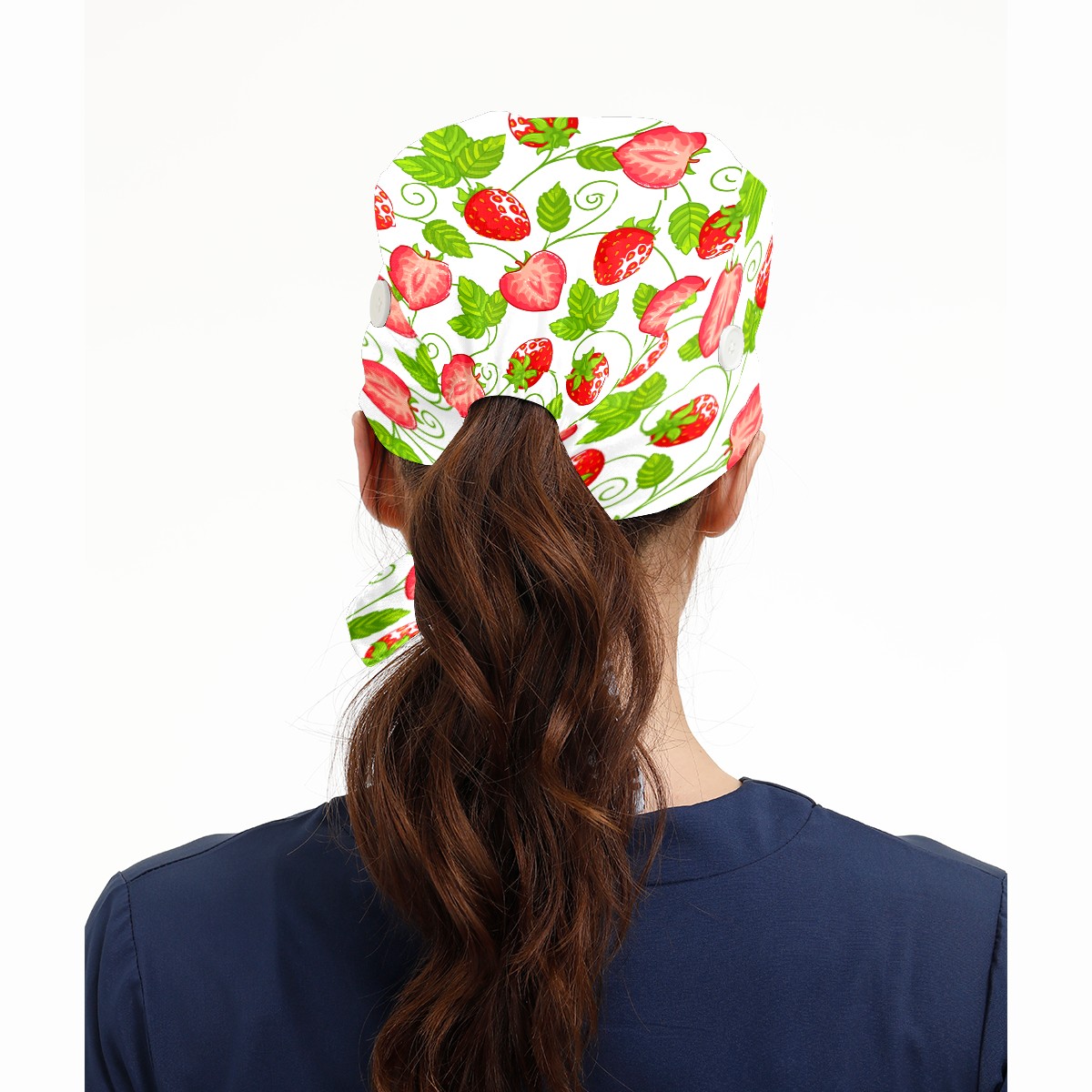 Fruit Strawberry Pattern Working Cap Button and Sweatband Adjustable Elastic Head Cover Hair Tie Back Work Hats for Women Men