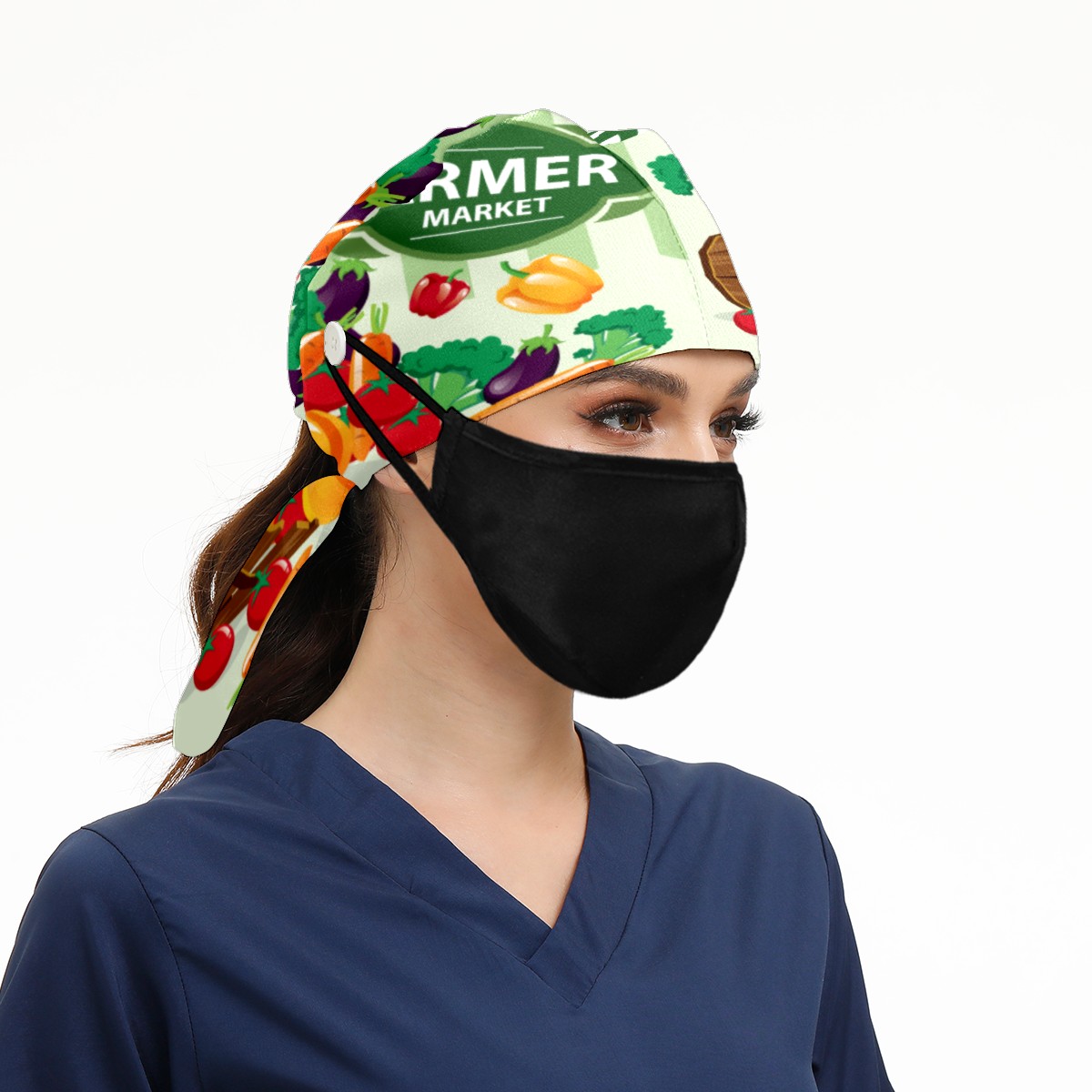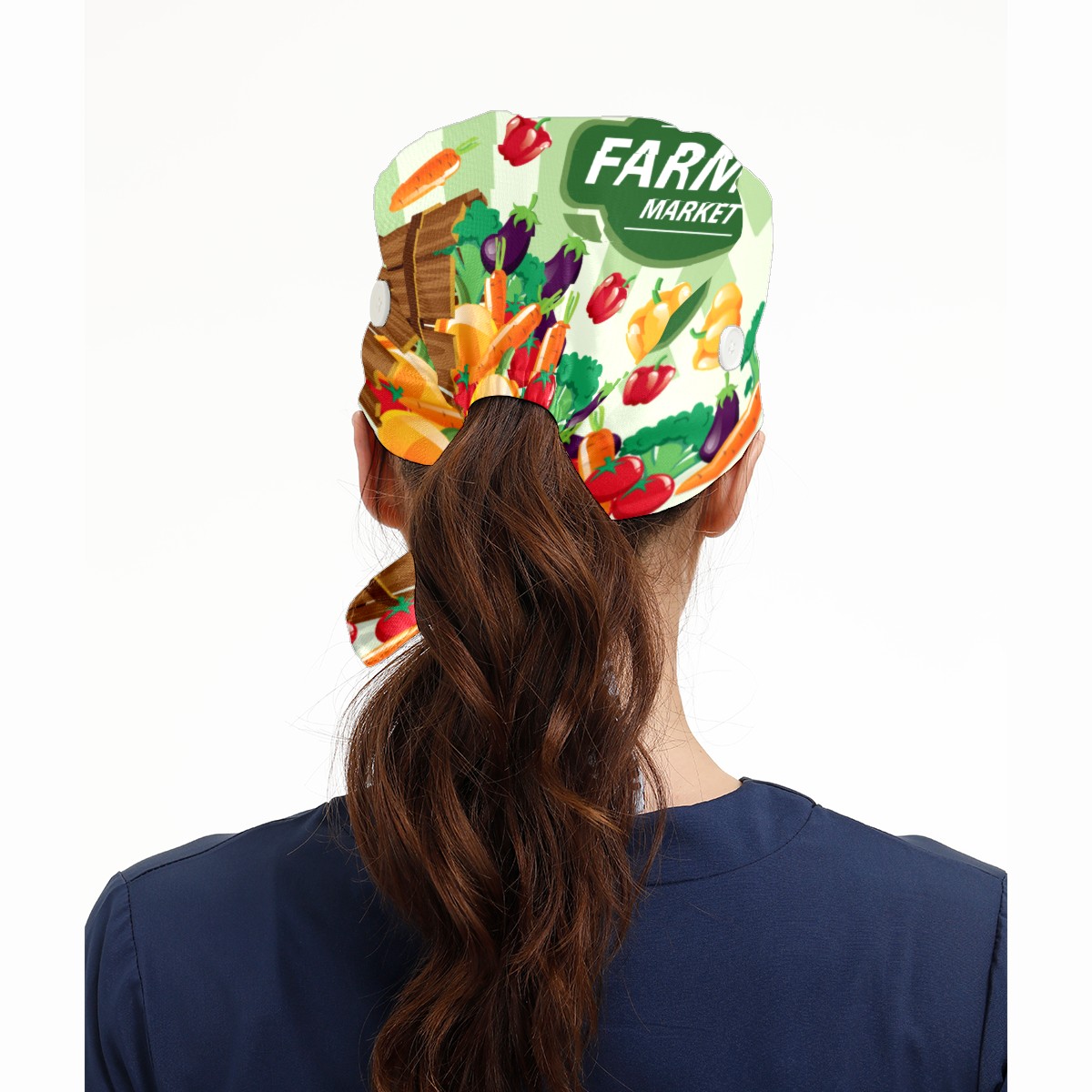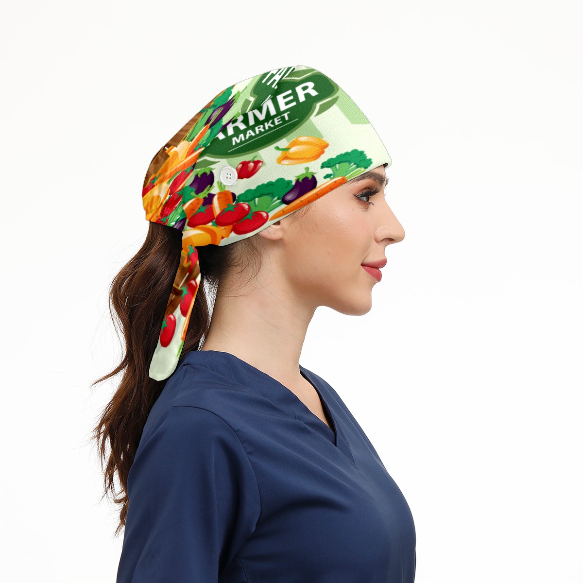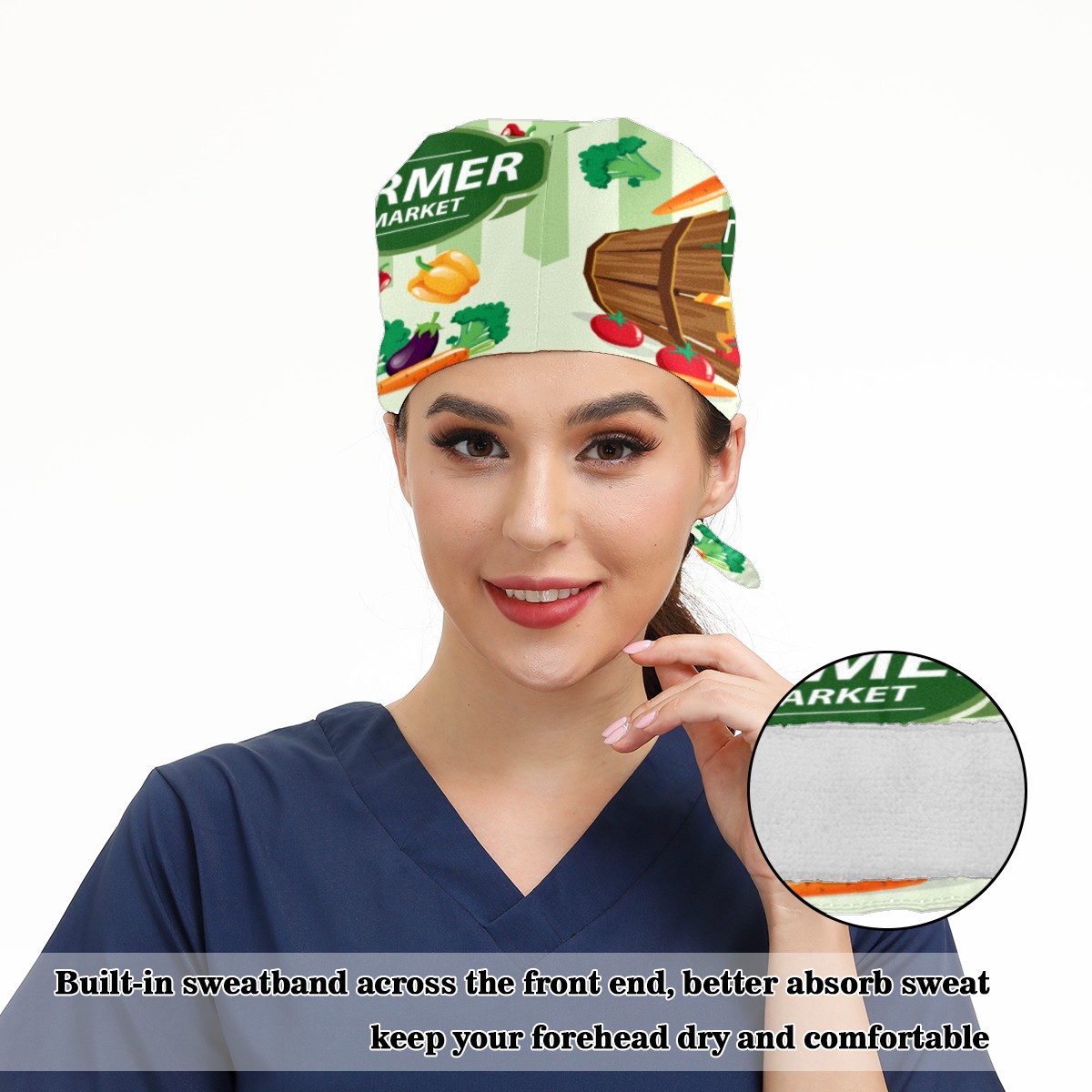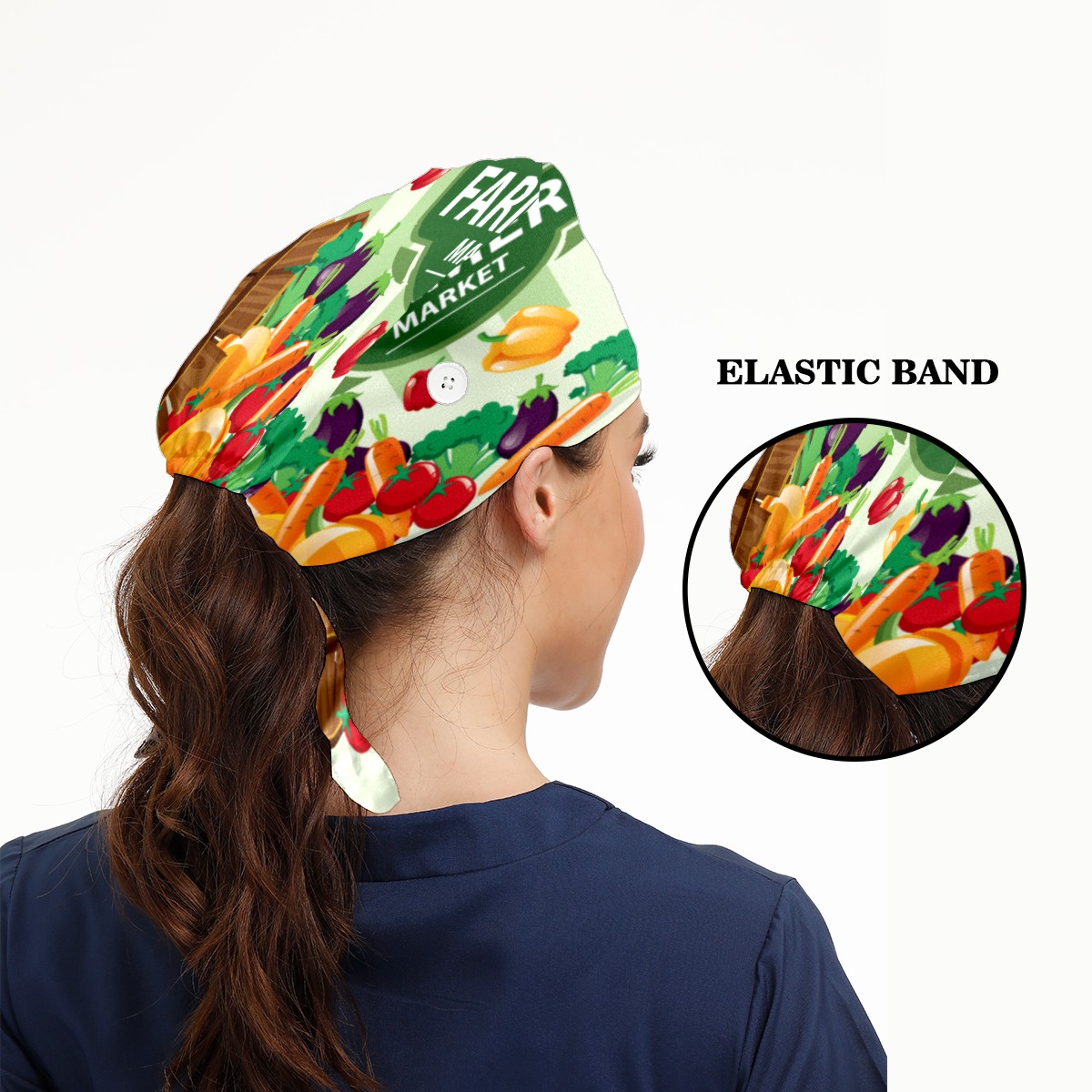 Farmers Market Vegetable Produce Working Cap Button and Sweatband Adjustable Elastic Head Cover Hair Tie Back Work Hats for Women Men