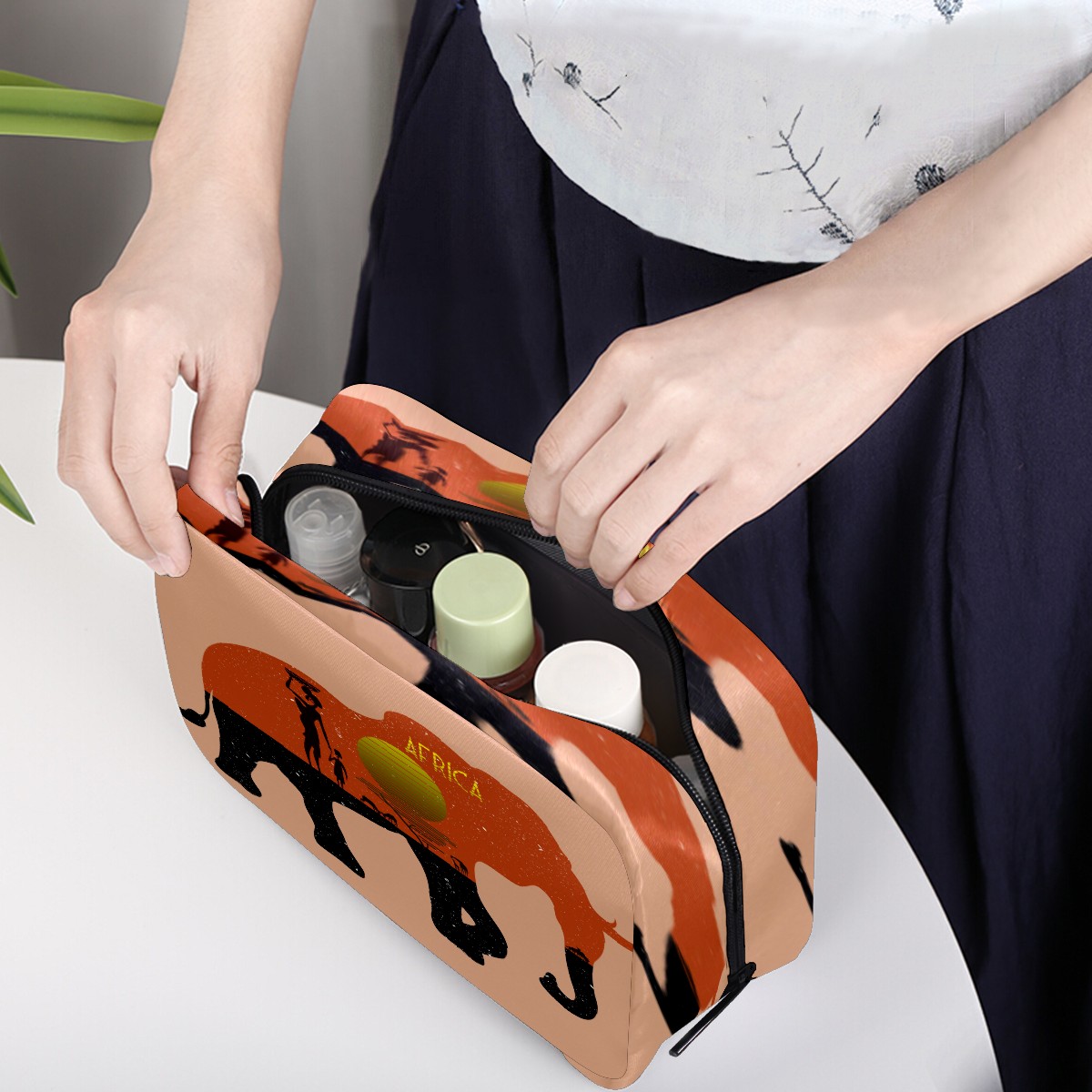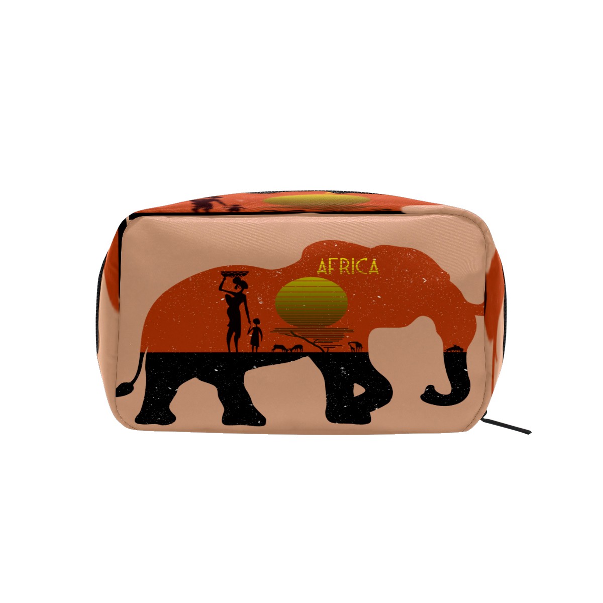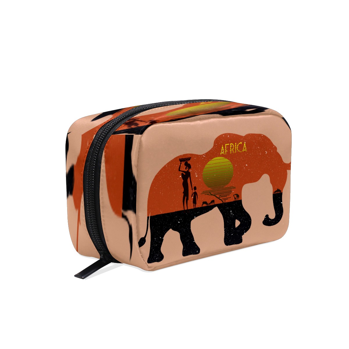 Cosmetic Bag for Women Girls Trave Makeup Bag Toiletry Case Pouch Accessories Organizer Africa Tribal Sun Land Elephant