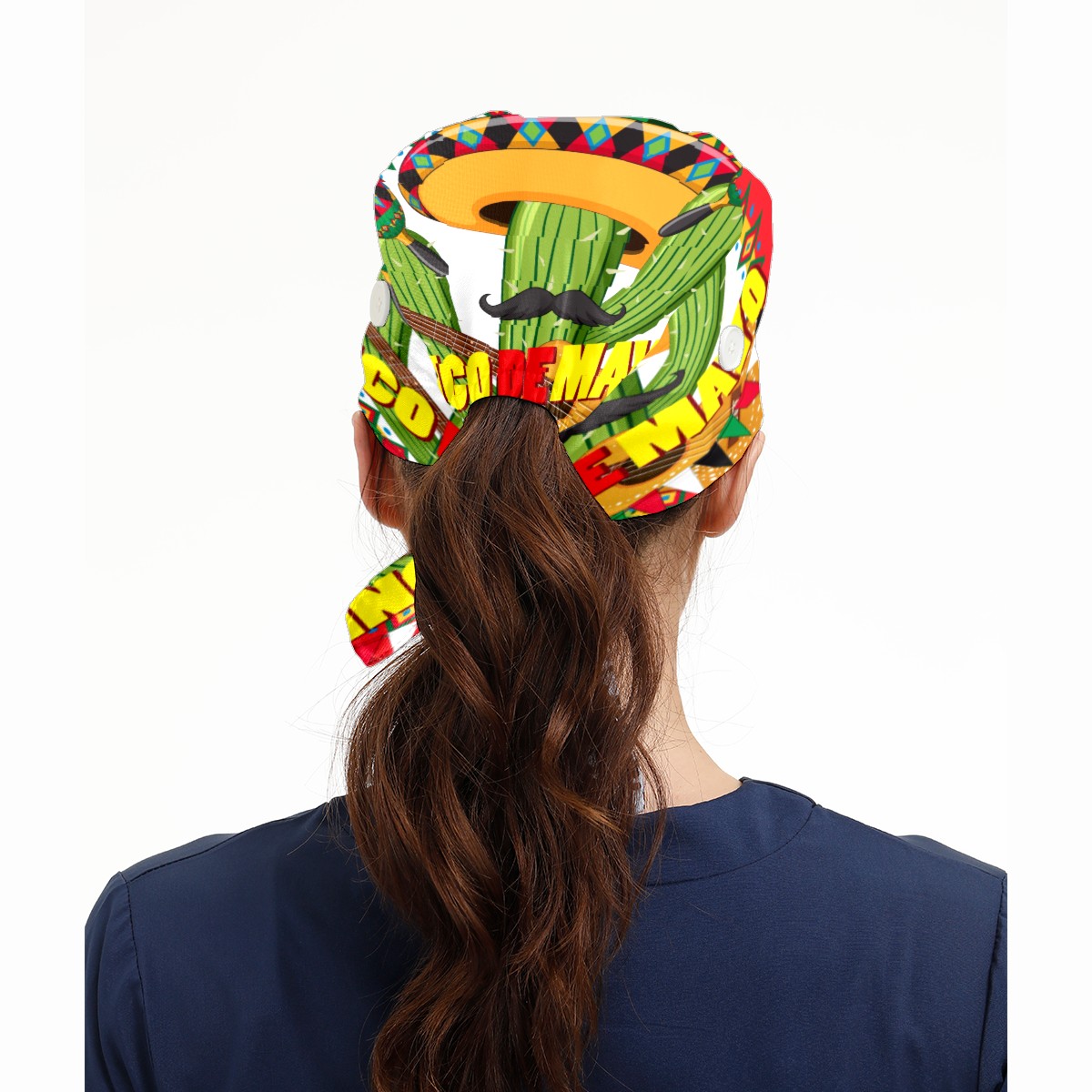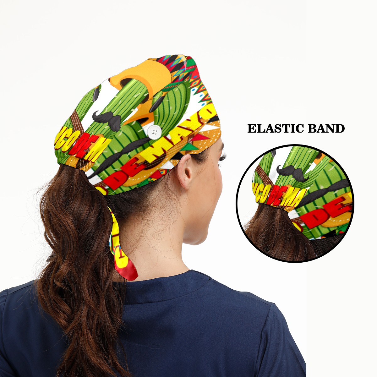 Cinco De Mayo Cactus Guitar Working Cap Button and Sweatband Adjustable Elastic Head Cover Hair Tie Back Work Hats for Women Men
