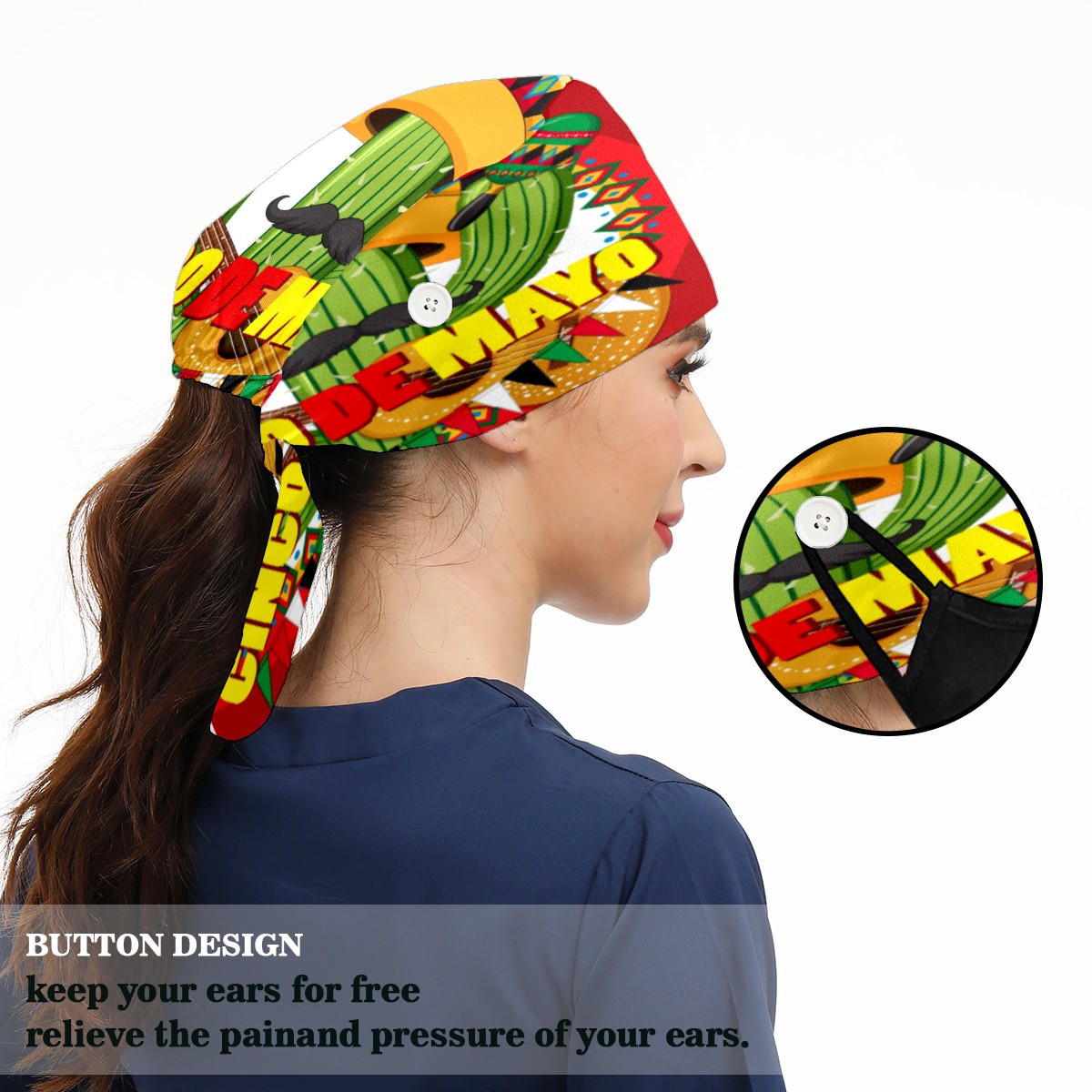 <p>Working cap with Sweatband and Button for Women Men</p><p>Material&nbsp;: 50% cotton+50% polyester</p><p>Size:&nbsp;One size fits most,&nbsp;suitable for both men and women.</p><p>Working Cap with Buttons Design:special&nbsp;design with buttons to protect ears for those who are wearing ma-sk. These new styles hats will allow you to put the straps around the buttons instead of your ears, make you feel more comfortable.</p><p>Sweat-absorbent towel cloth inside: Built-in&nbsp;100% cotton sweatband, keep the forehead clean after long time working.</p><p>Widely occasion: Widely used in beauty spa, house cleaning, cooking, sleeping, or for cos-play&nbsp;party.</p><p>Lovely pattern: lovely&nbsp;3D printed&nbsp;pattern,&nbsp;it's perfect for gift to you family&nbsp;and friends.</p>