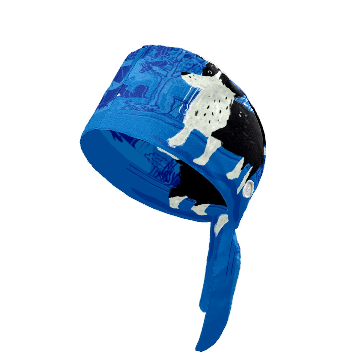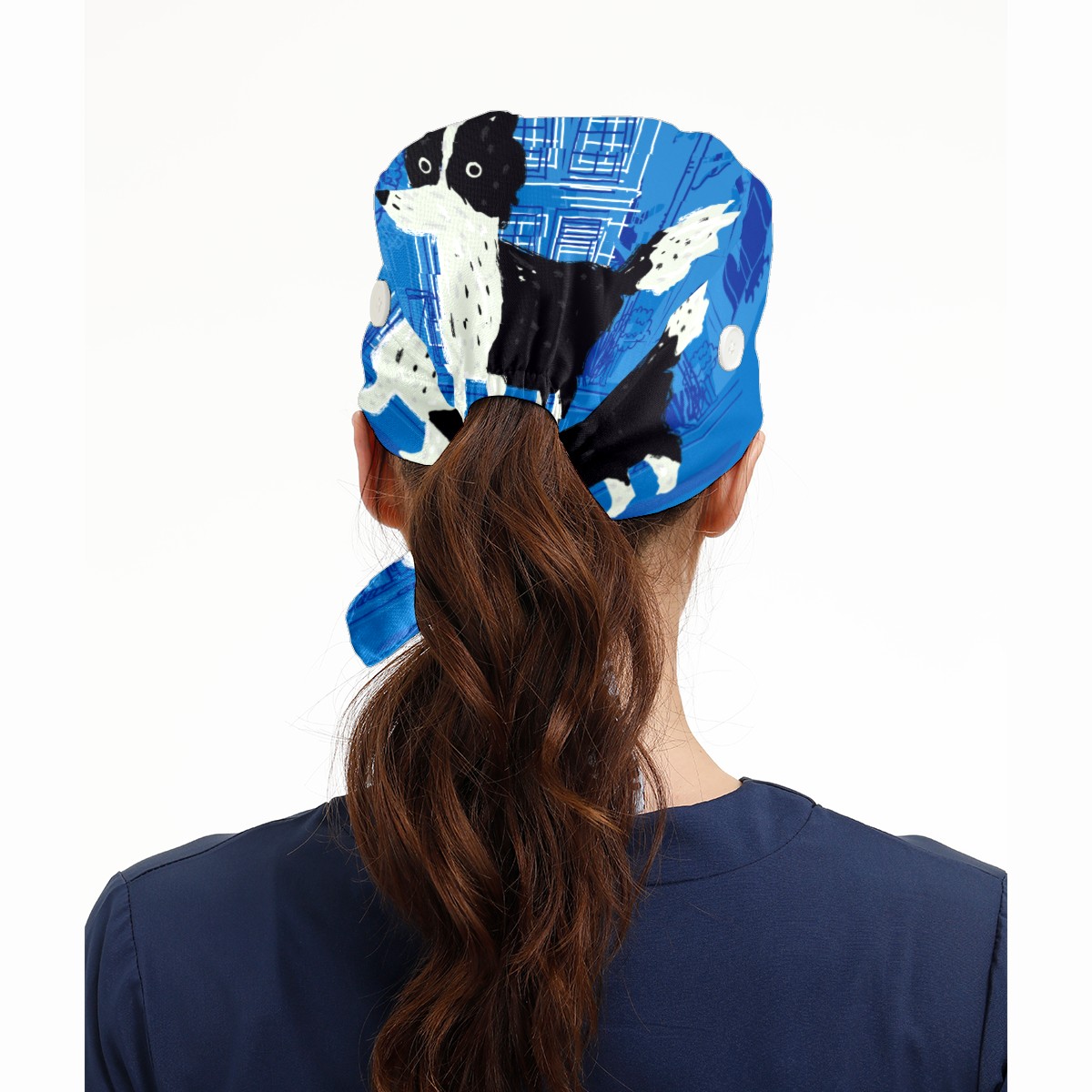 Cute Border Collie Dog Puppy Working Cap Button and Sweatband Adjustable Elastic Head Cover Hair Tie Back Work Hats for Women Men