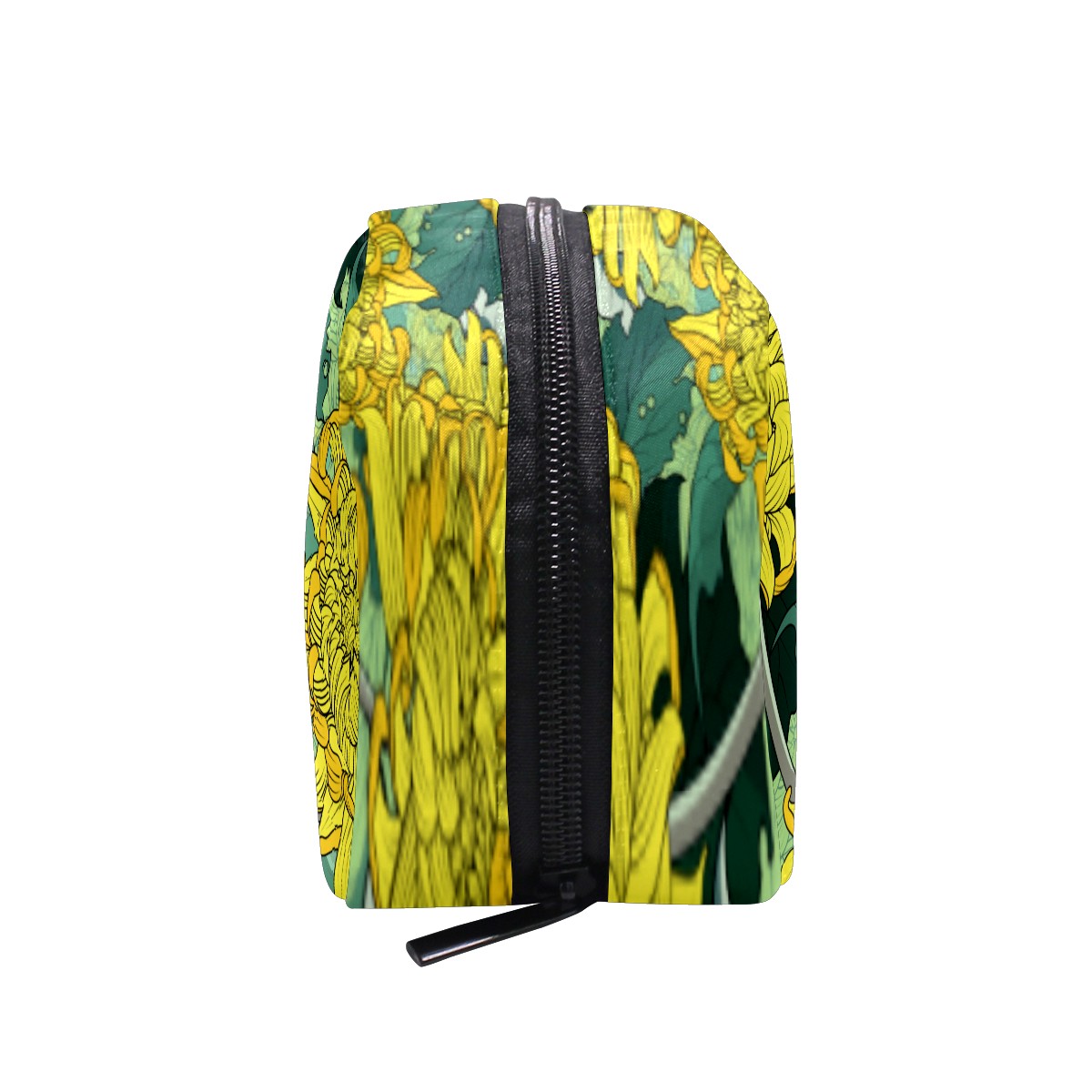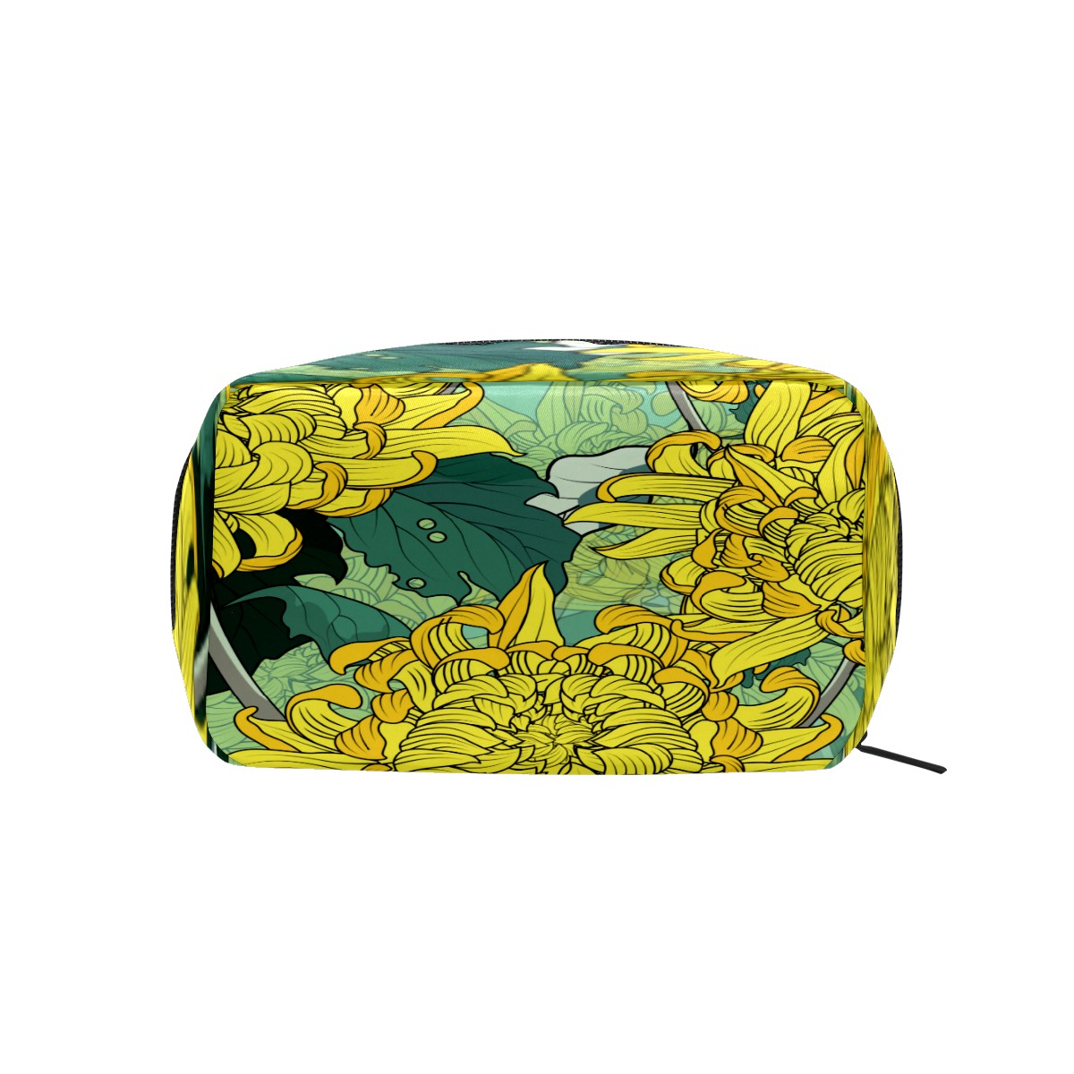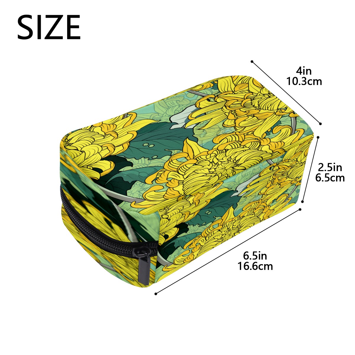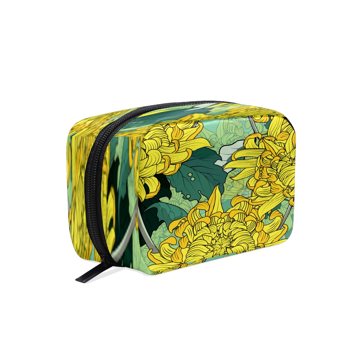 Cosmetic Bag for Women Girls Trave Makeup Bag Toiletry Case Pouch Accessories Organizer Yellow Chrysanths Flower Blooming