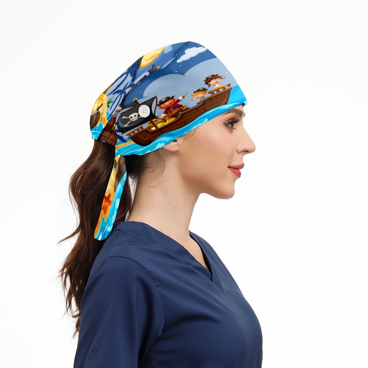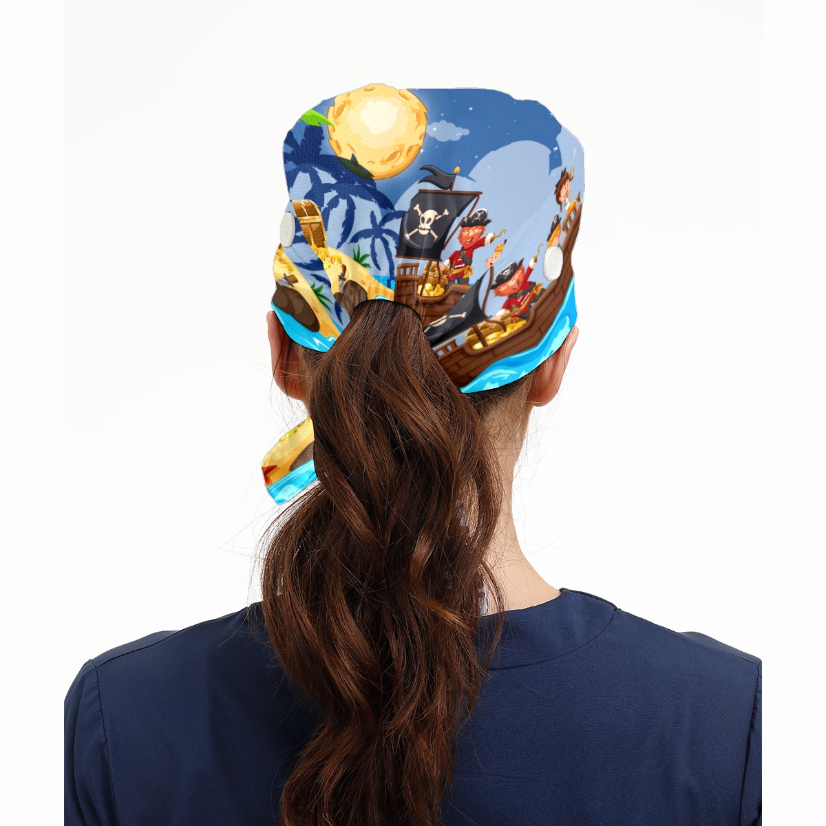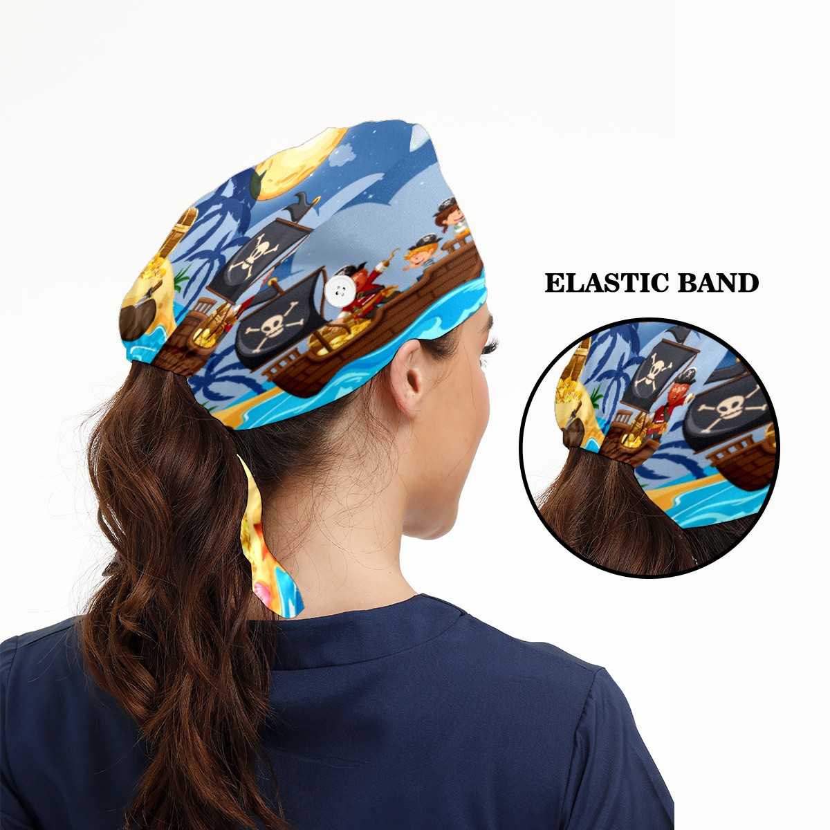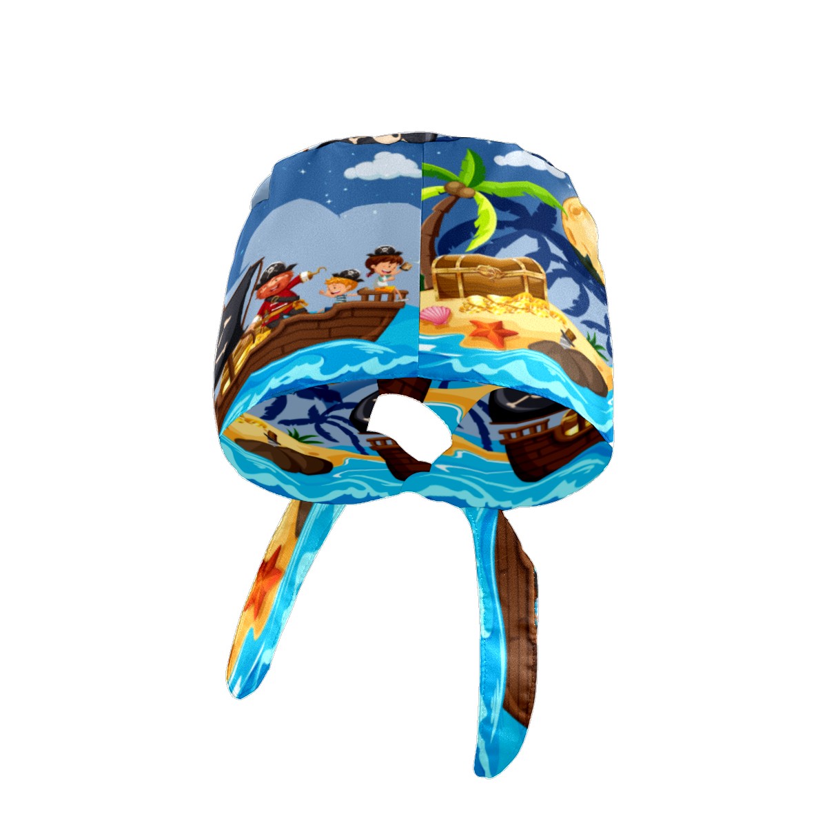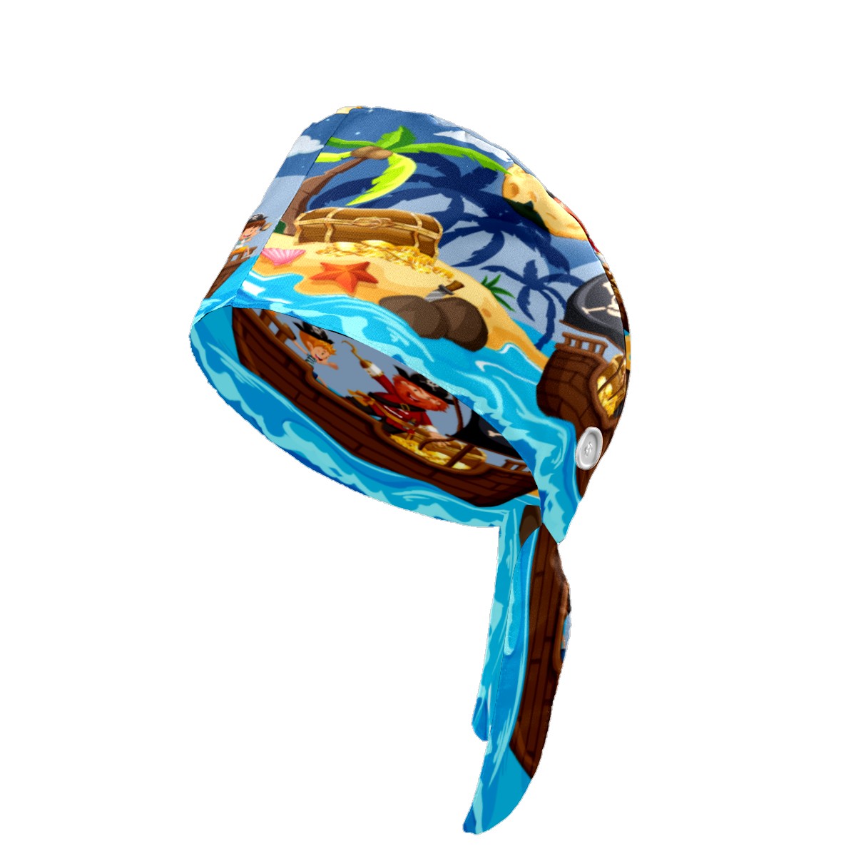 Pirate And Children Finding Treasure Working Cap Button and Sweatband Adjustable Elastic Head Cover Hair Tie Back Work Hats for Women Men