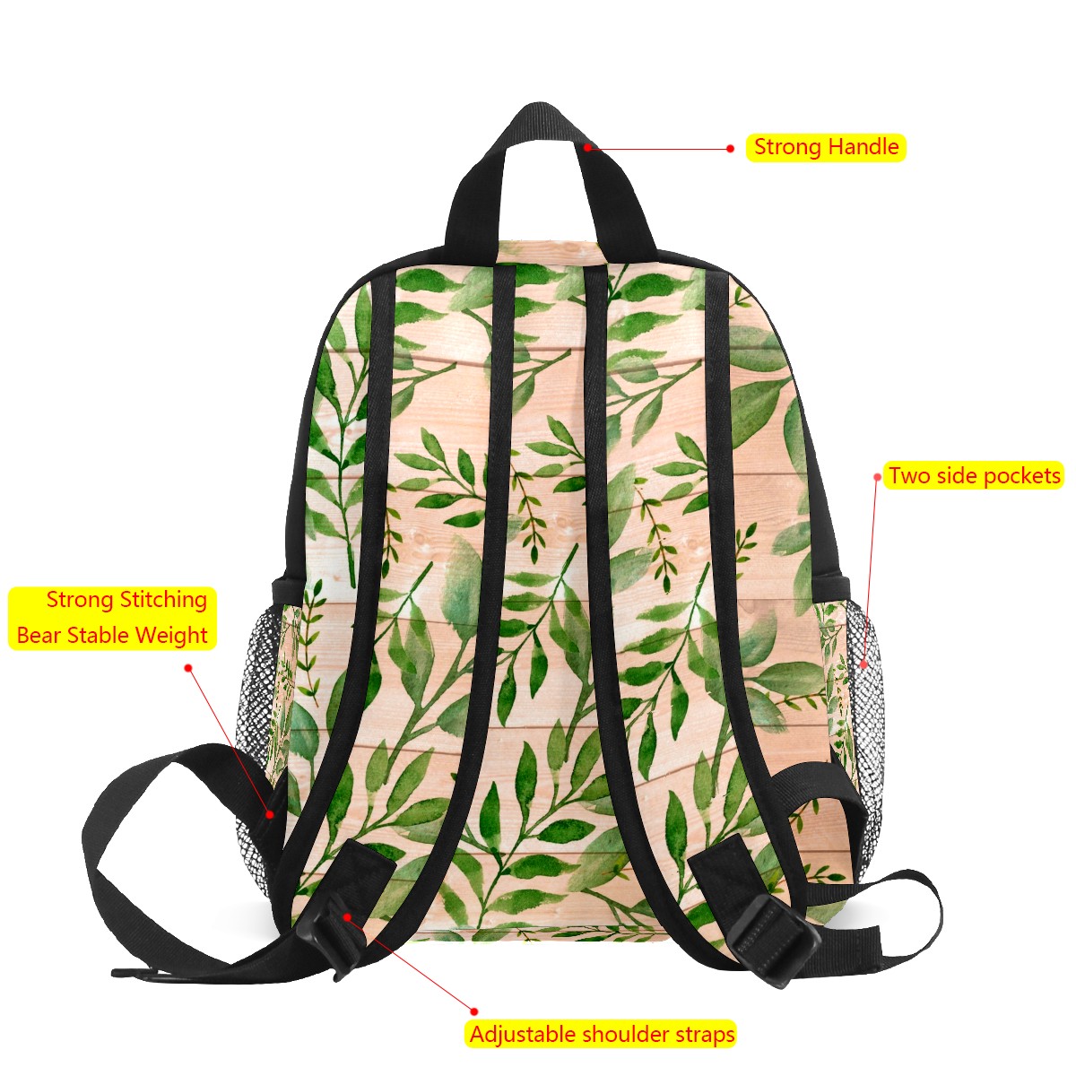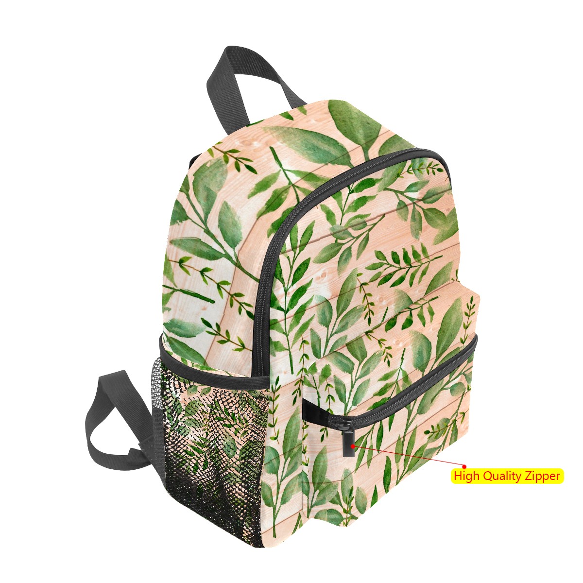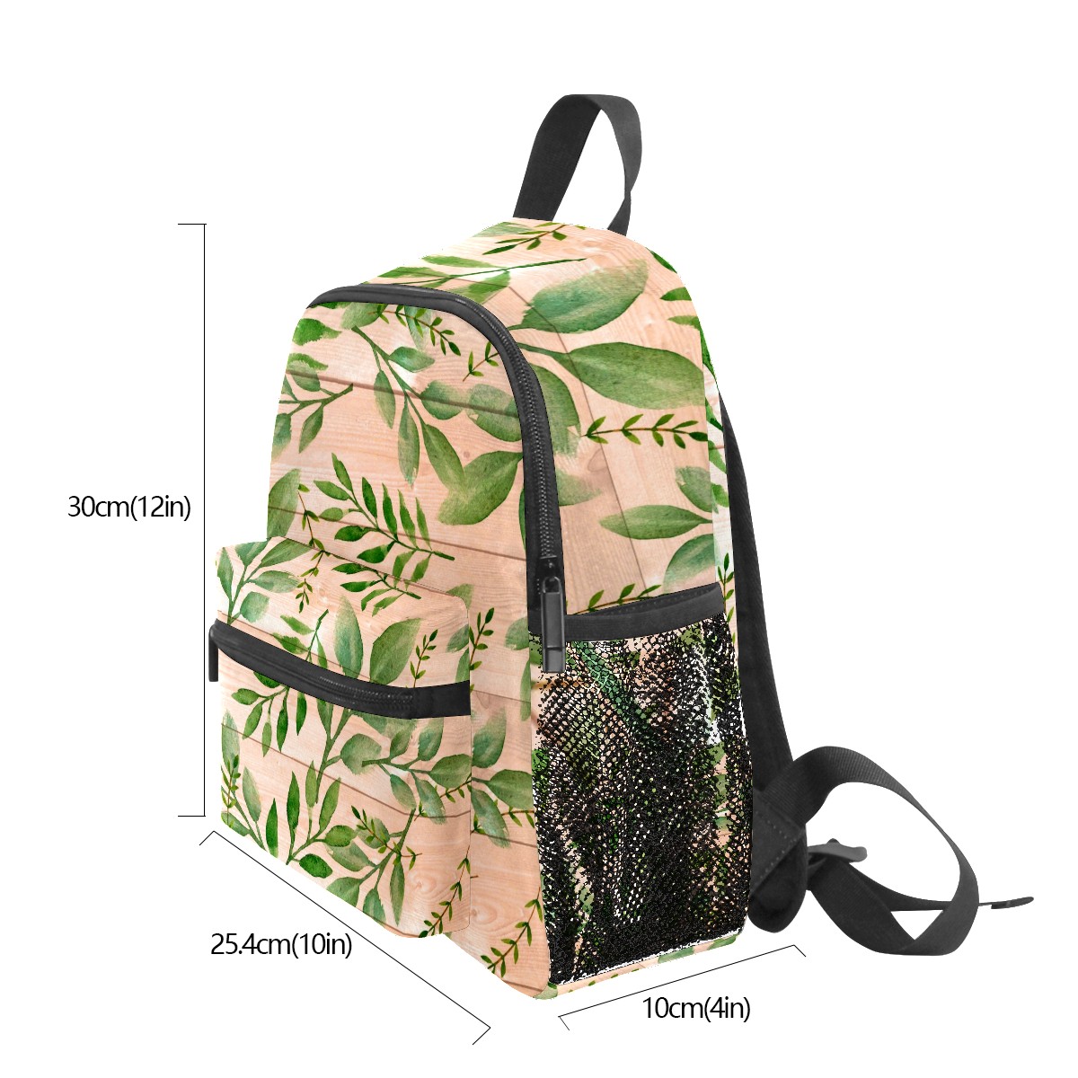 Mini Backpack Planks And Green Leaves Cute Lightweight School Bags Small Daypack Purse Travel Backpacks Woman Shoulder Bag for Kids Girls Boys(3-8 Years Old)
