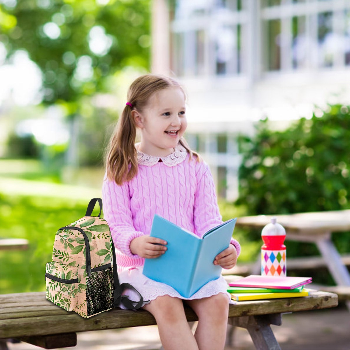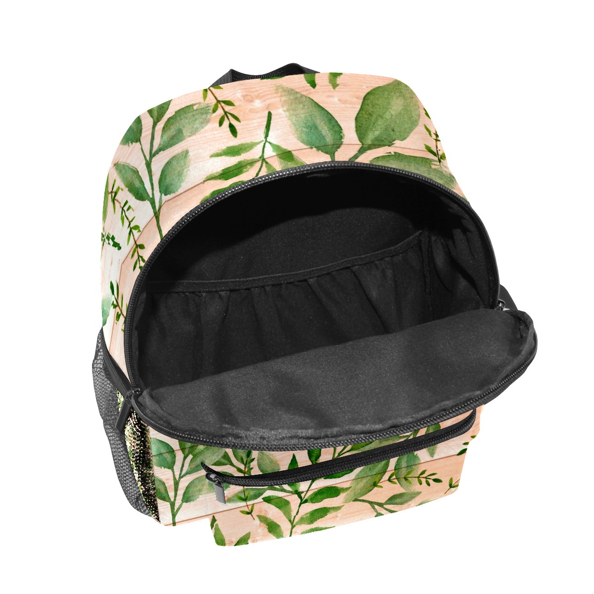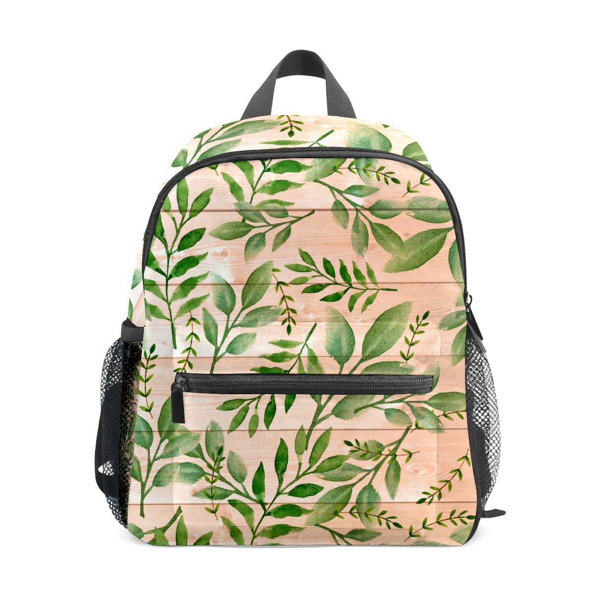 Mini Backpack Planks And Green Leaves Cute Lightweight School Bags Small Daypack Purse Travel Backpacks Woman Shoulder Bag for Kids Girls Boys(3-8 Years Old)