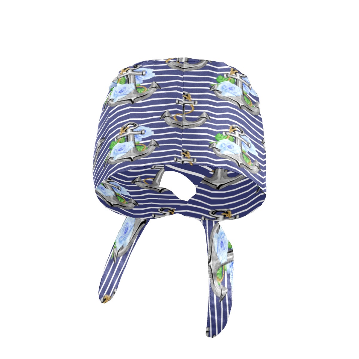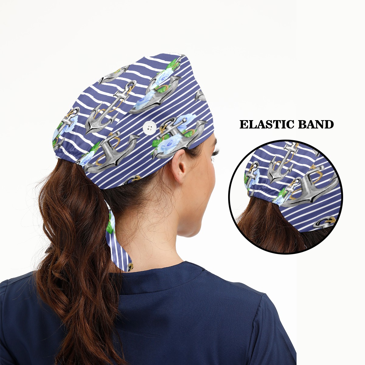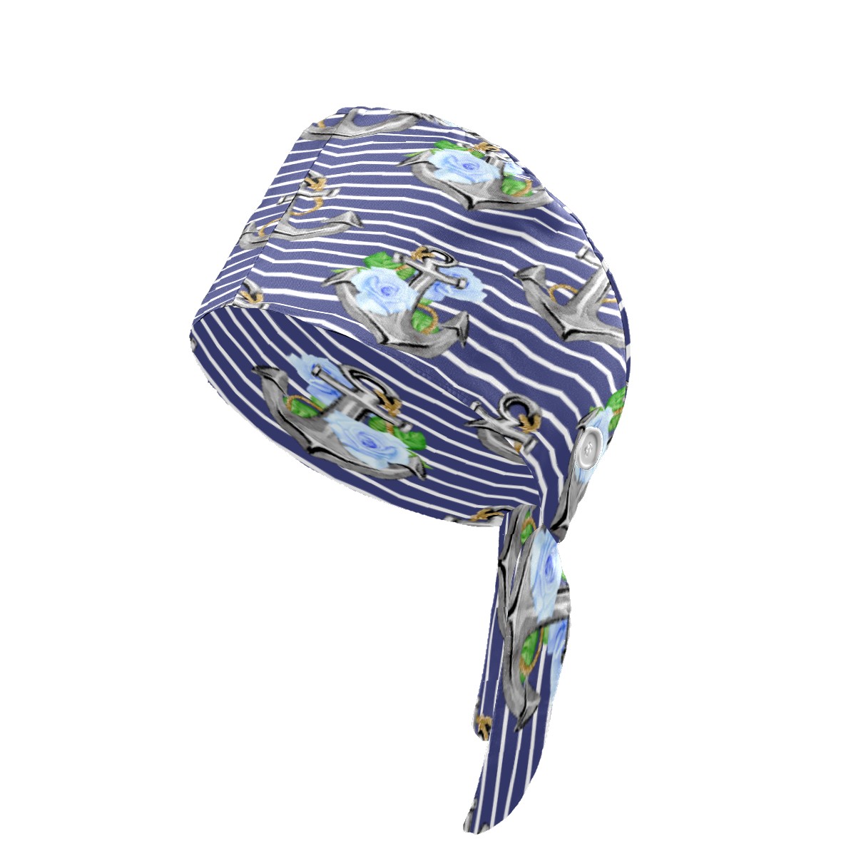 Stripe Nautical Anchor Floral Print Working Cap Button and Sweatband Adjustable Elastic Head Cover Hair Tie Back Work Hats for Women Men