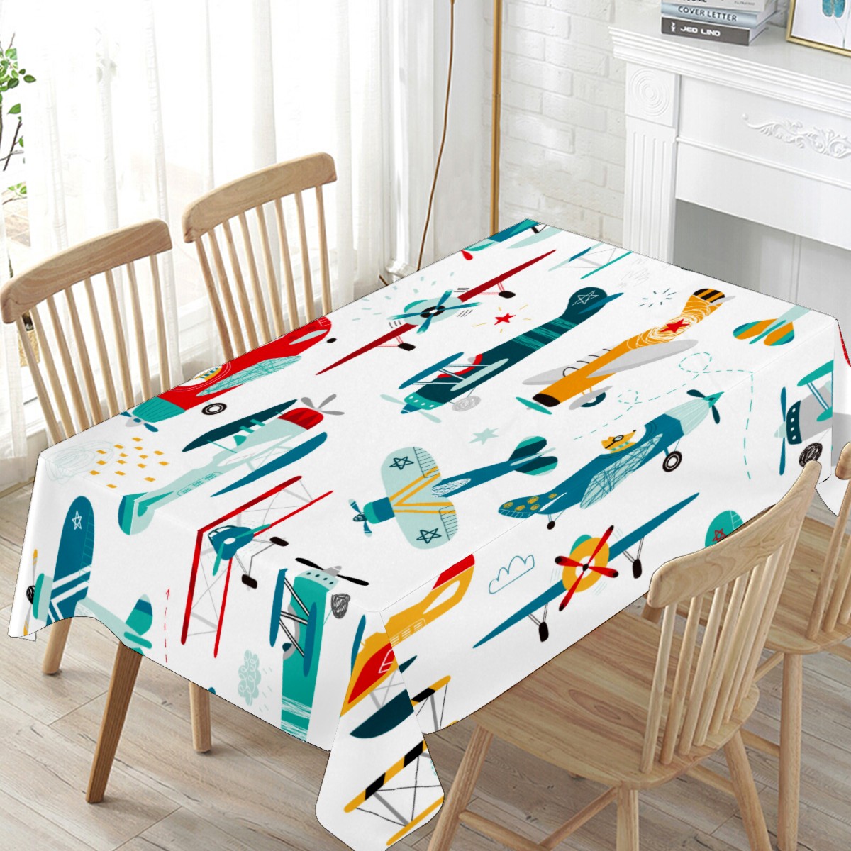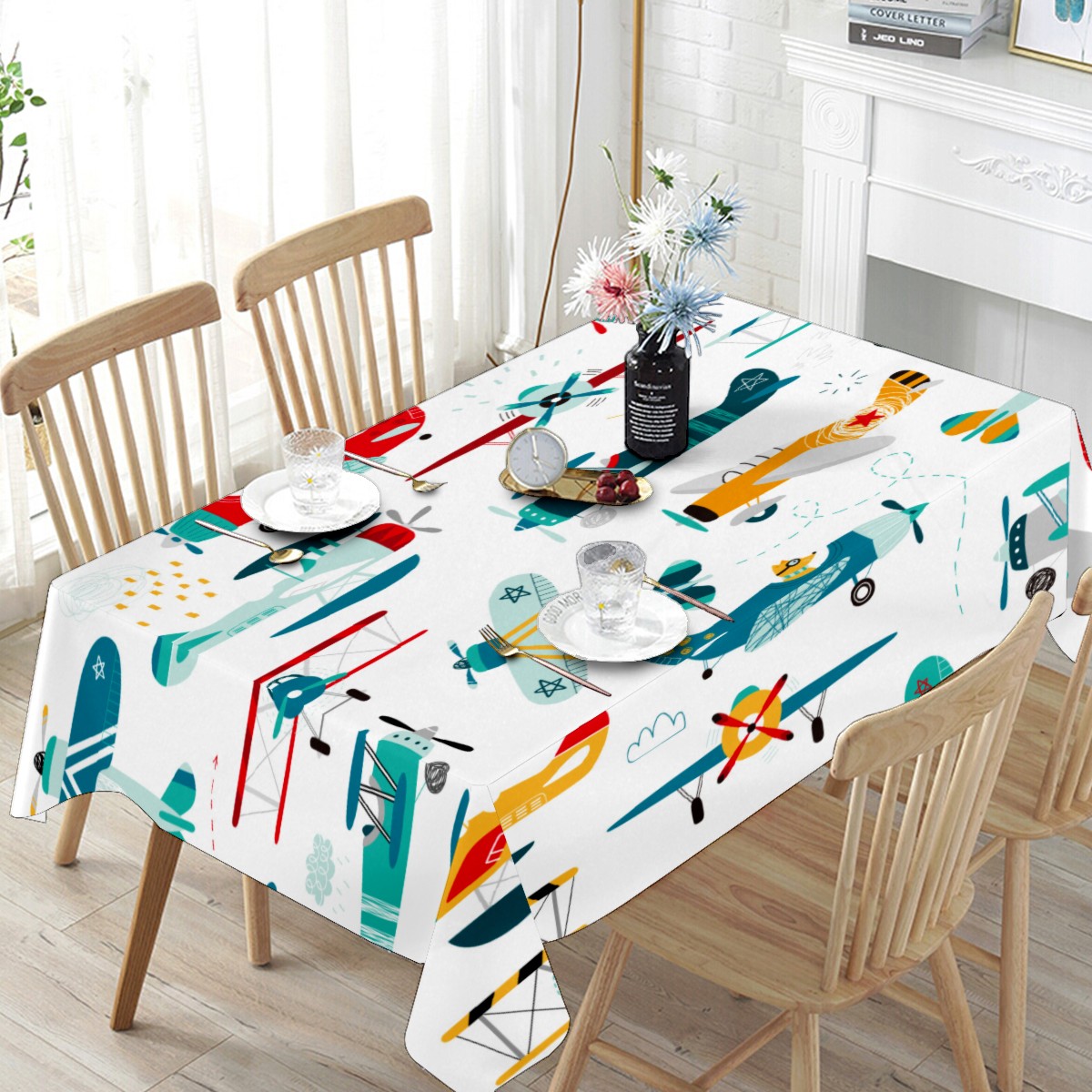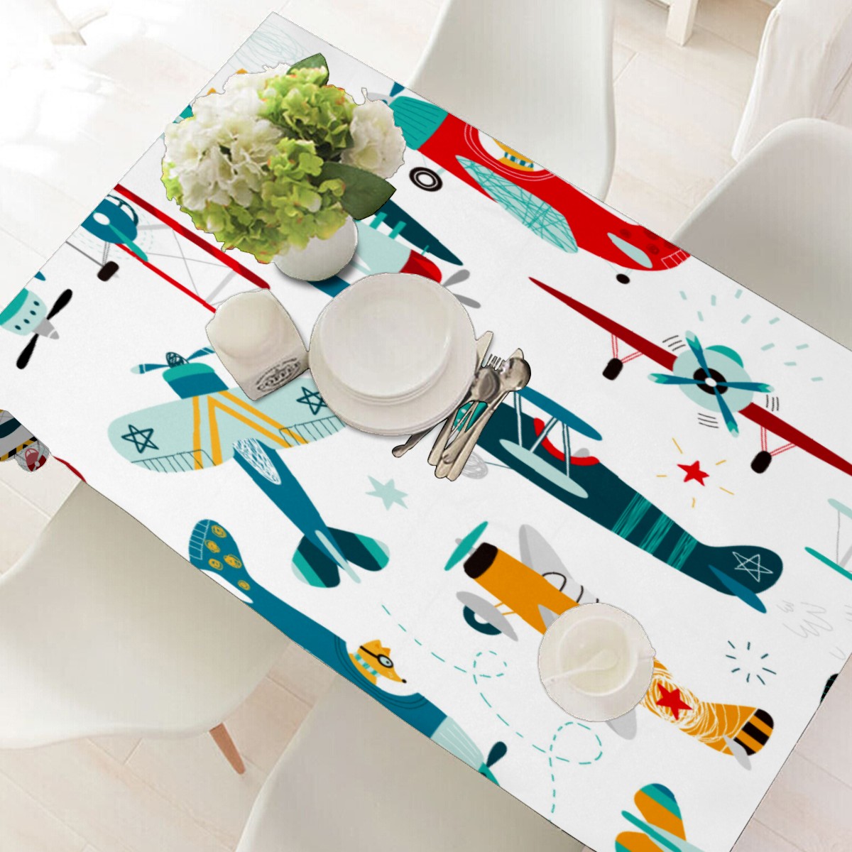 Rectangle Tablecloth Cute Airplane Puppy Colorful Table Cloth 54x54in Table Cover for Kitchen Dining Table Party Home Decoration Washable Table Runner