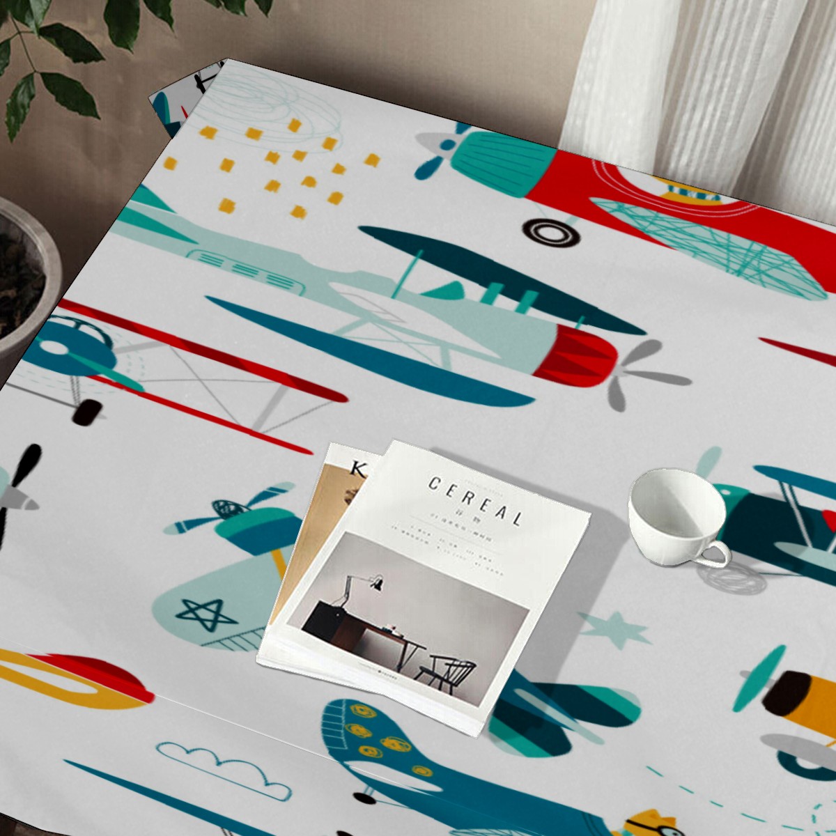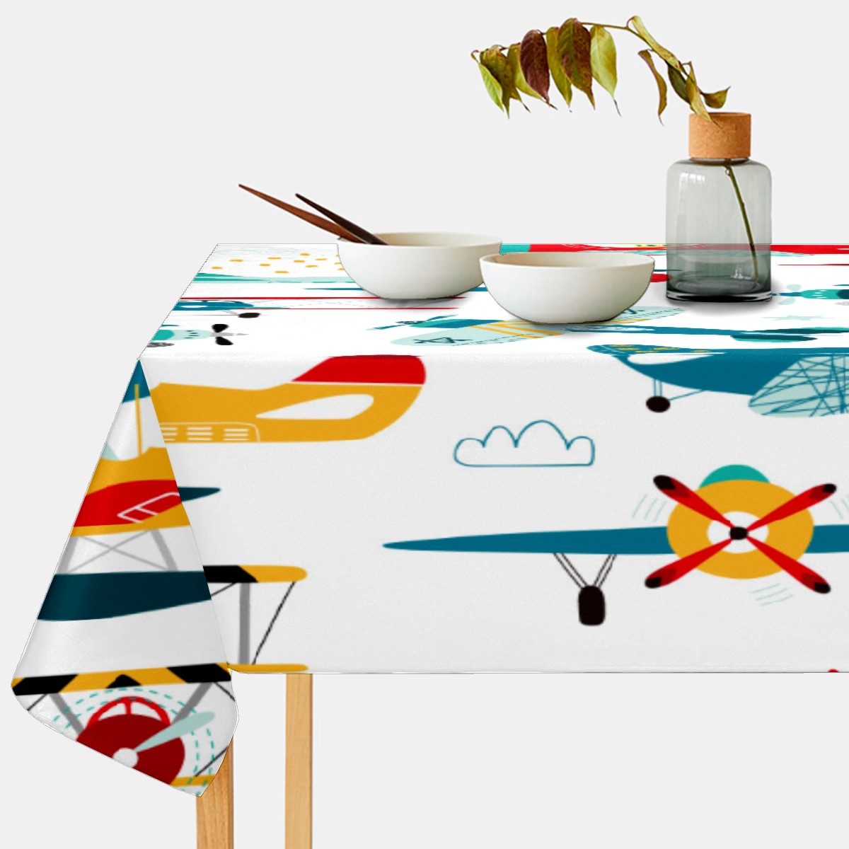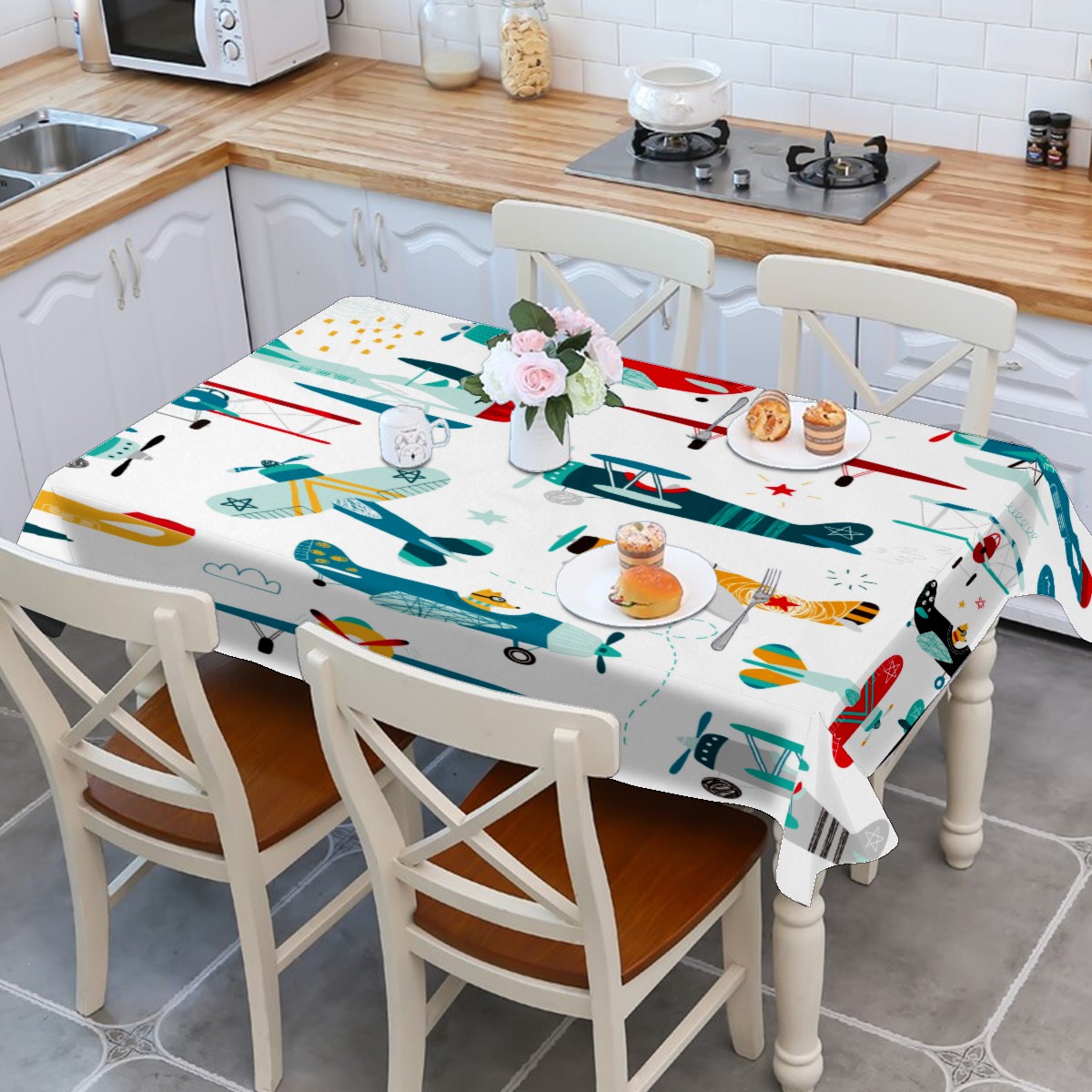 Rectangle Tablecloth Cute Airplane Puppy Colorful Table Cloth 54x54in Table Cover for Kitchen Dining Table Party Home Decoration Washable Table Runner