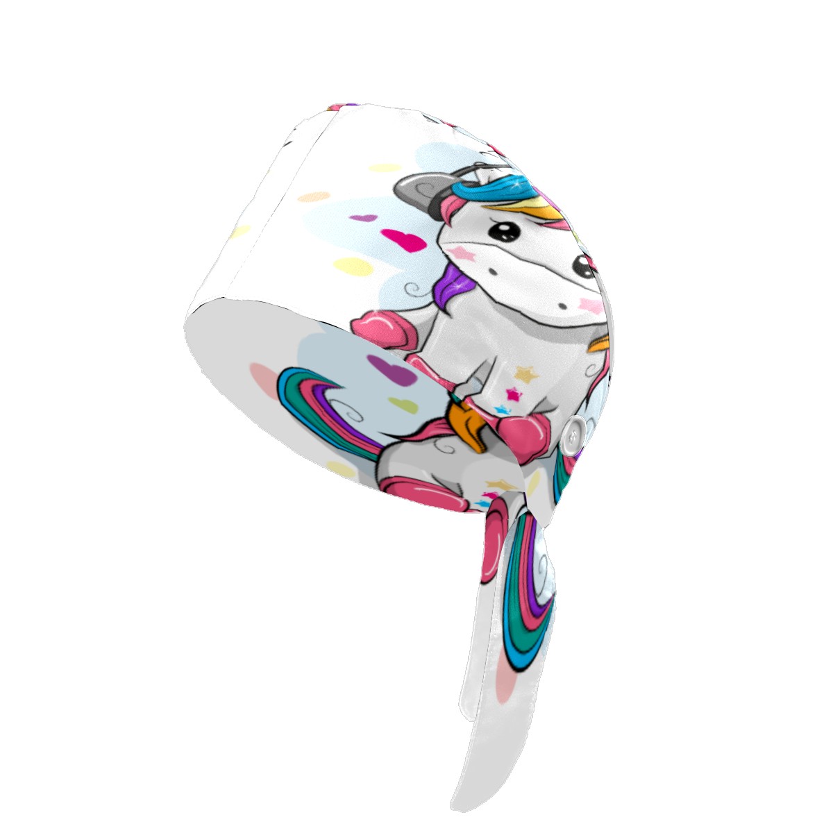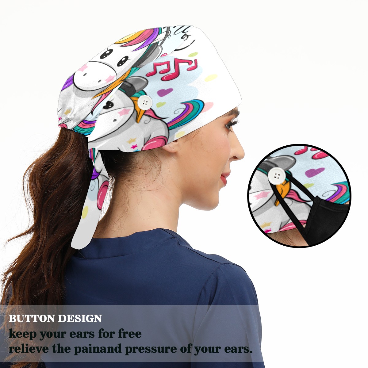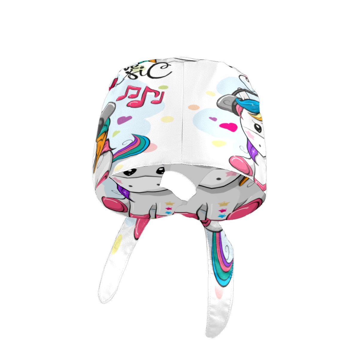 Unicorn Baby Love Music Working Cap Button and Sweatband Adjustable Elastic Head Cover Hair Tie Back Work Hats for Women Men
