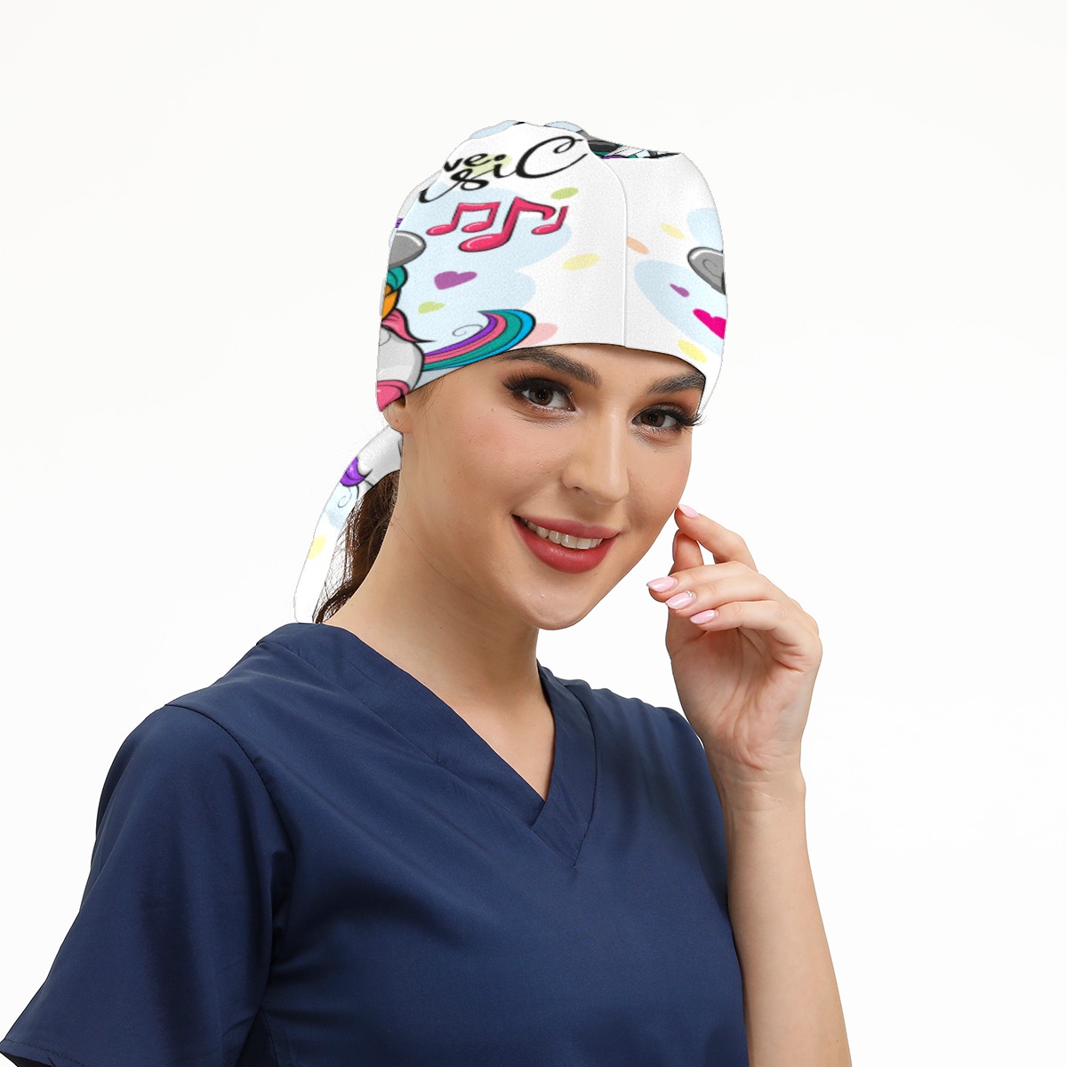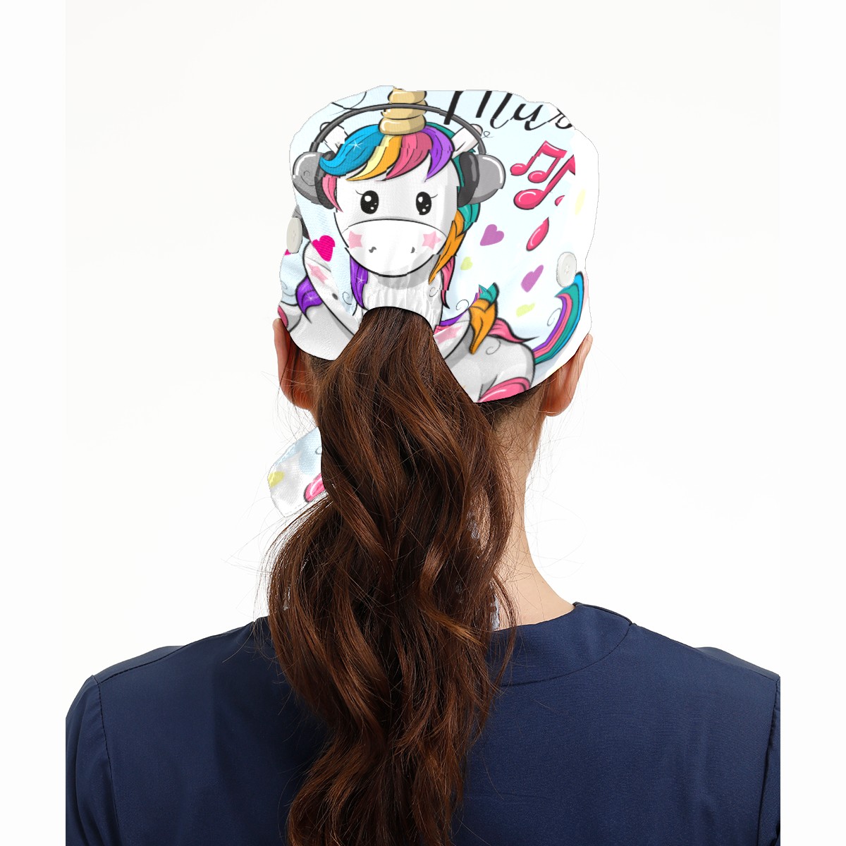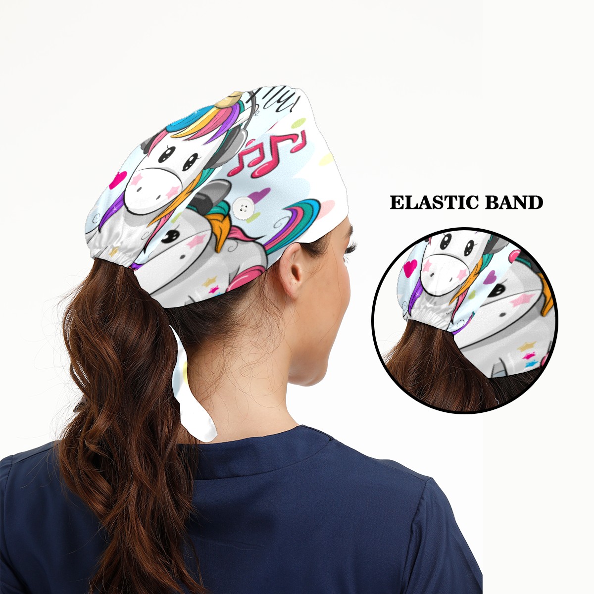 Unicorn Baby Love Music Working Cap Button and Sweatband Adjustable Elastic Head Cover Hair Tie Back Work Hats for Women Men