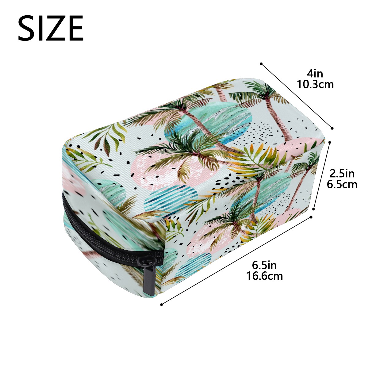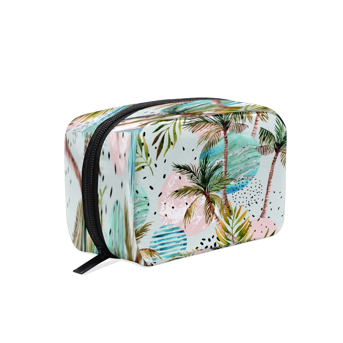 Cosmetic Bag for Women Girls Trave Makeup Bag Toiletry Case Pouch Accessories Organizer Watercolor Tropical Palm Leaves Geometric