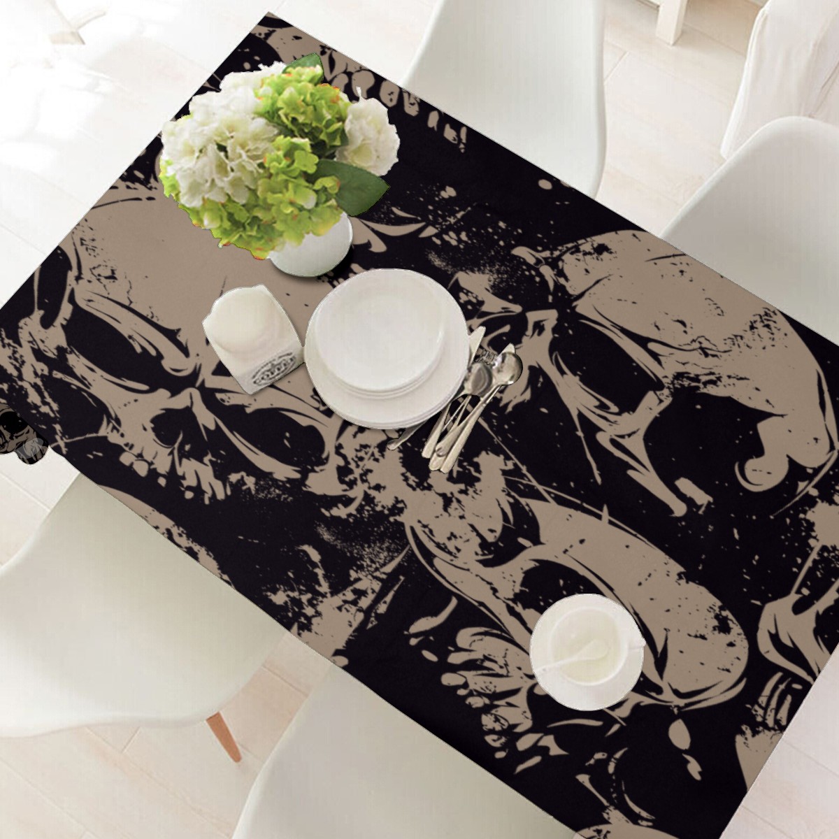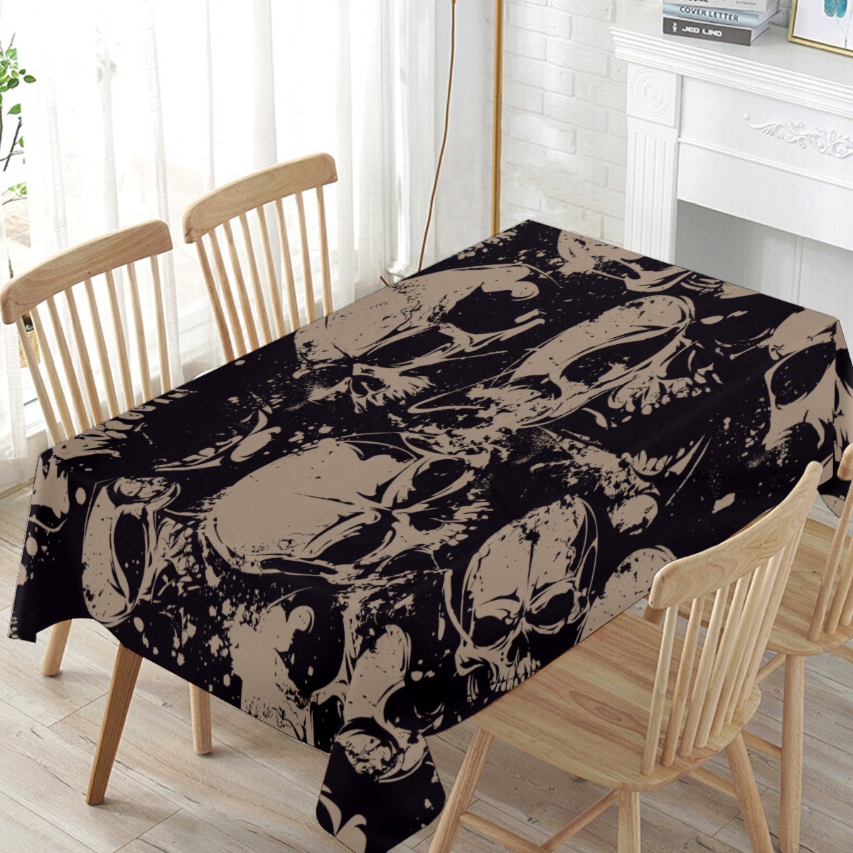 Rectangle Tablecloth Classic Skull Face Table Cloth 54x54in Table Cover for Kitchen Dining Table Party Home Decoration Washable Table Runner