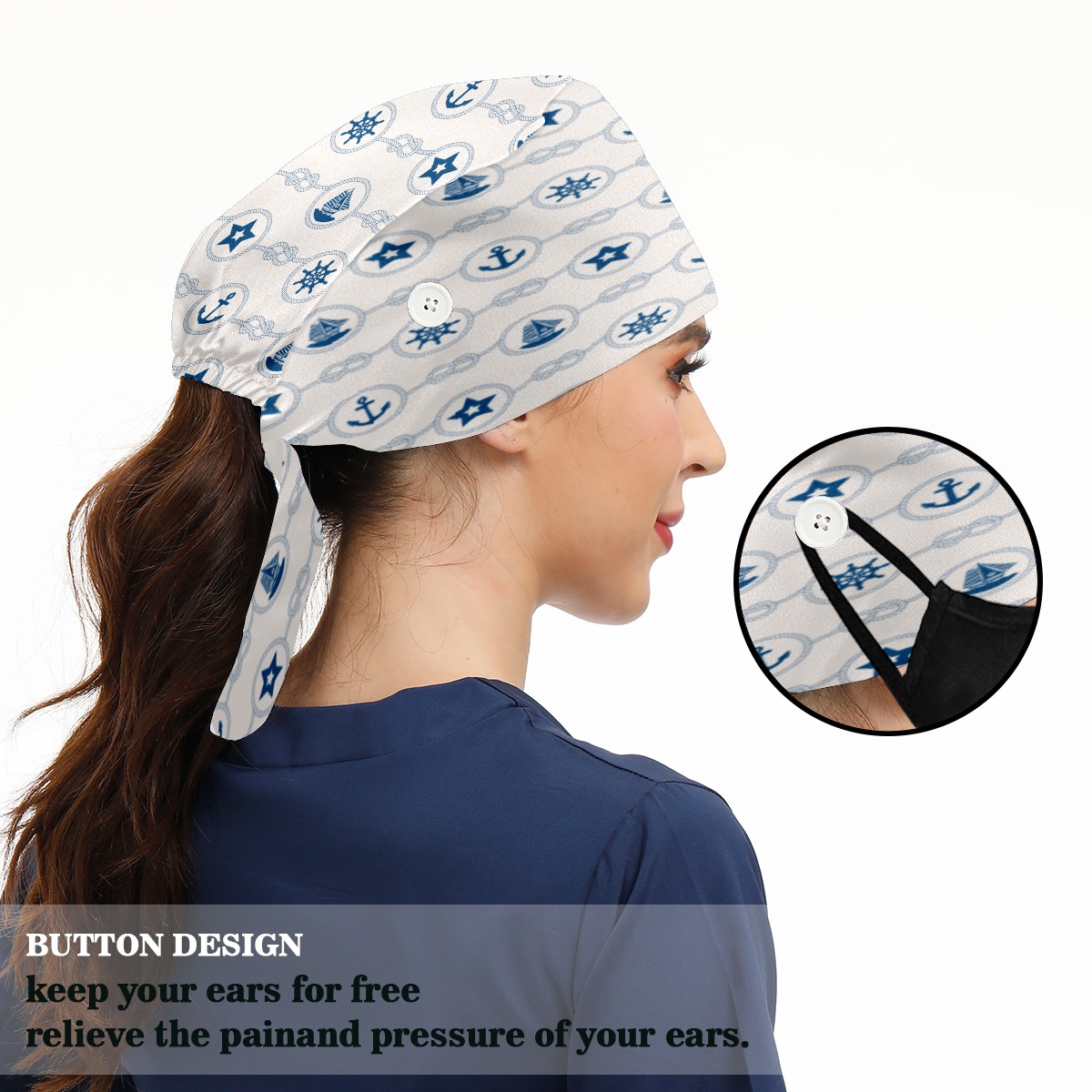 <p>Working cap with Sweatband and Button for Women Men</p><p>Material : 50% cotton+50% polyester</p><p>Size: One size fits most, suitable for both men and women.</p><p>Working Cap with Buttons Design:special design with buttons to protect ears for those who are wearing ma-sk. These new styles hats will allow you to put the straps around the buttons instead of your ears, make you feel more comfortable.</p><p>Sweat-absorbent towel cloth inside: Built-in 100% cotton sweatband, keep the forehead clean after long time working.</p><p>Widely occasion: Widely used in beauty spa, house cleaning, cooking, sleeping, or for cos-play party.</p><p>Lovely pattern: lovely 3D printed pattern, it's perfect for gift to you family and friends.</p>