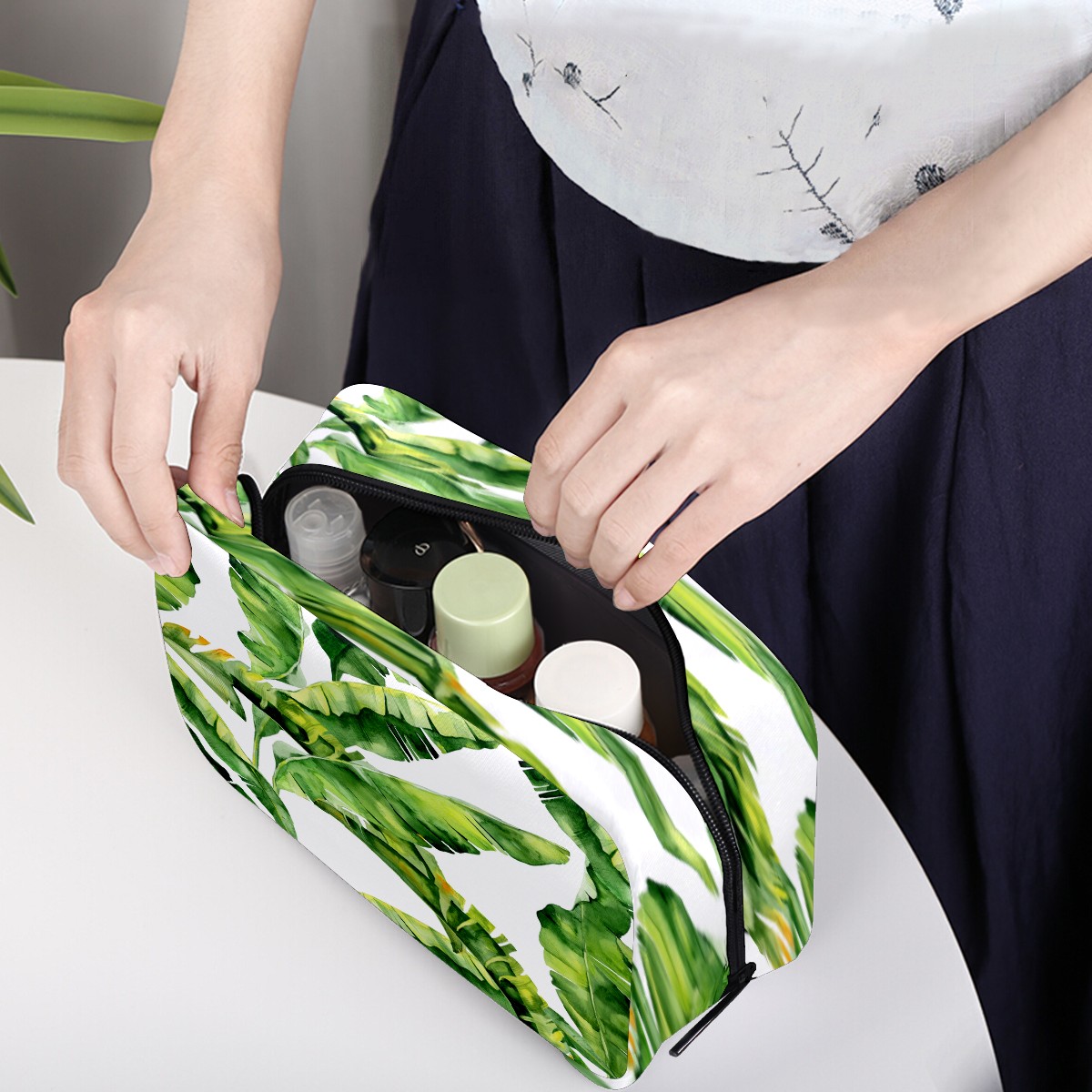Cosmetic Bag for Women Girls Trave Makeup Bag Toiletry Case Pouch Accessories Organizer Watercolor Green Palm Leaves Pattern