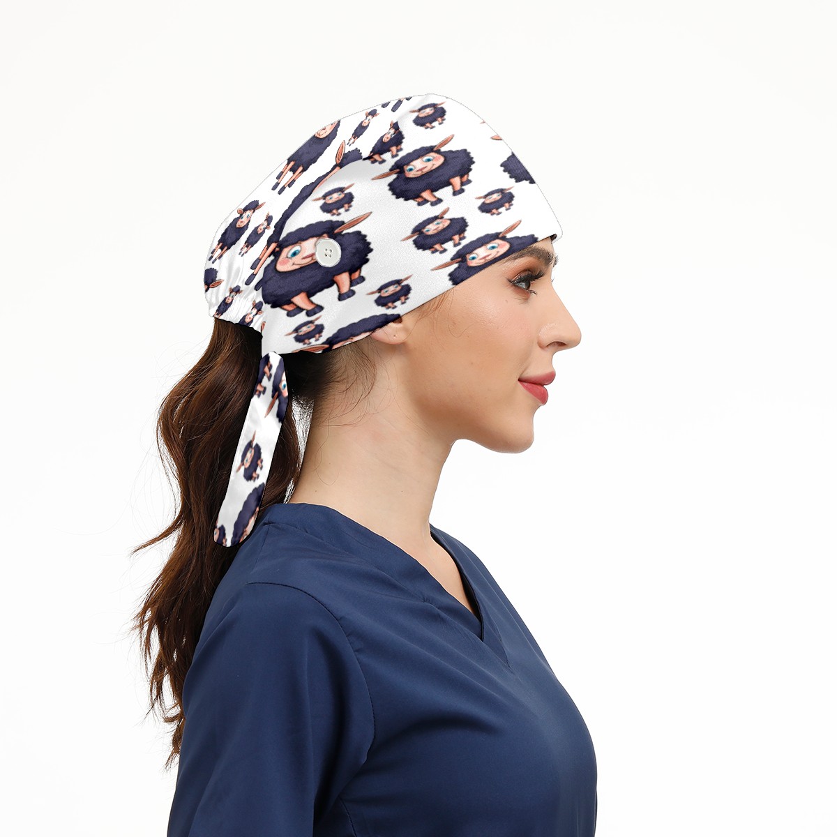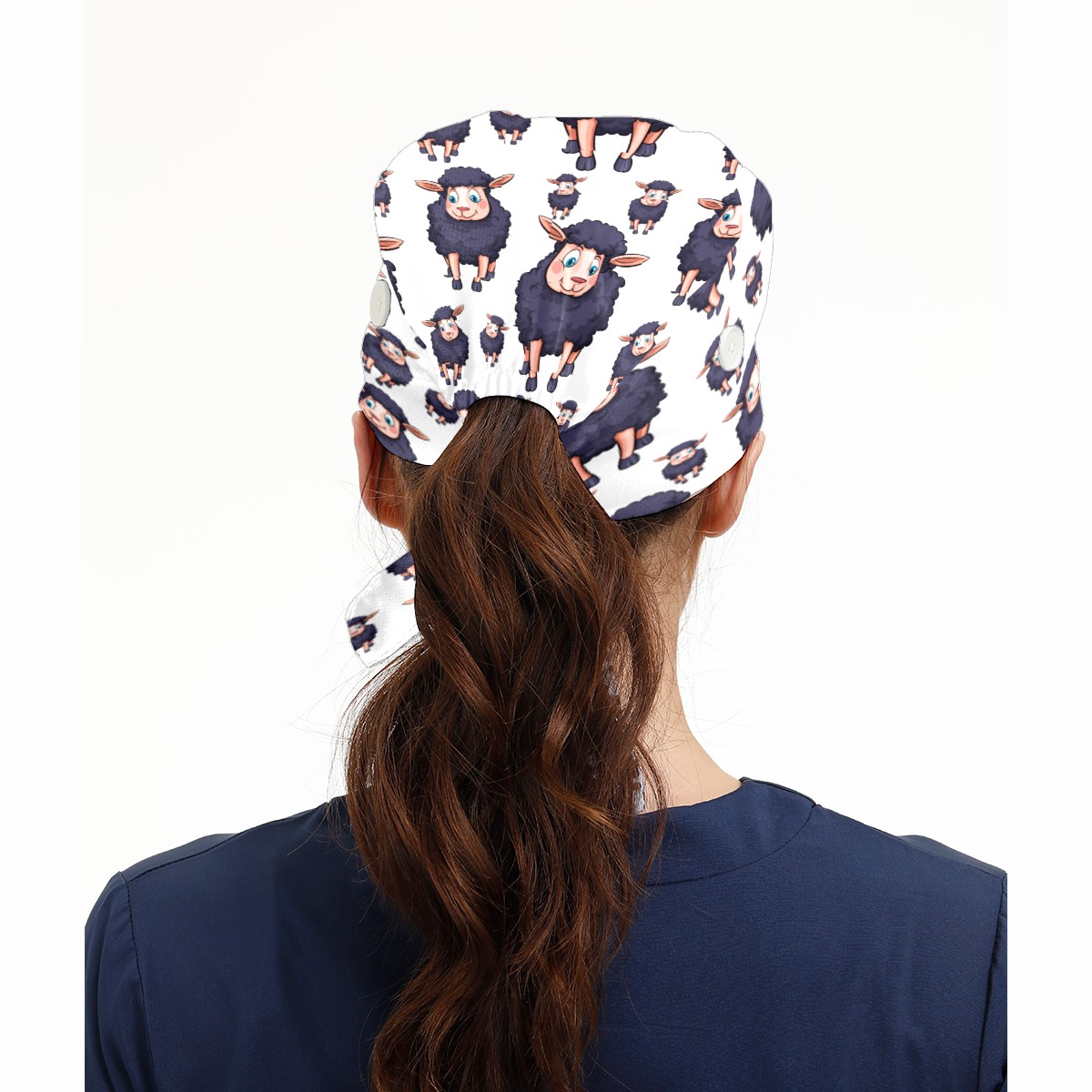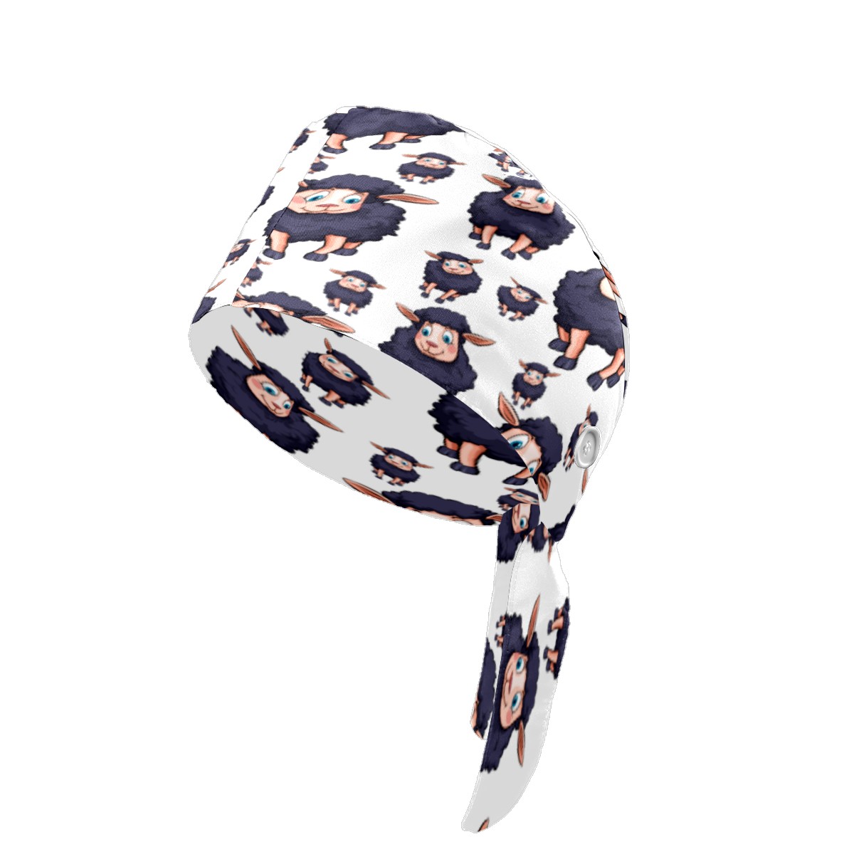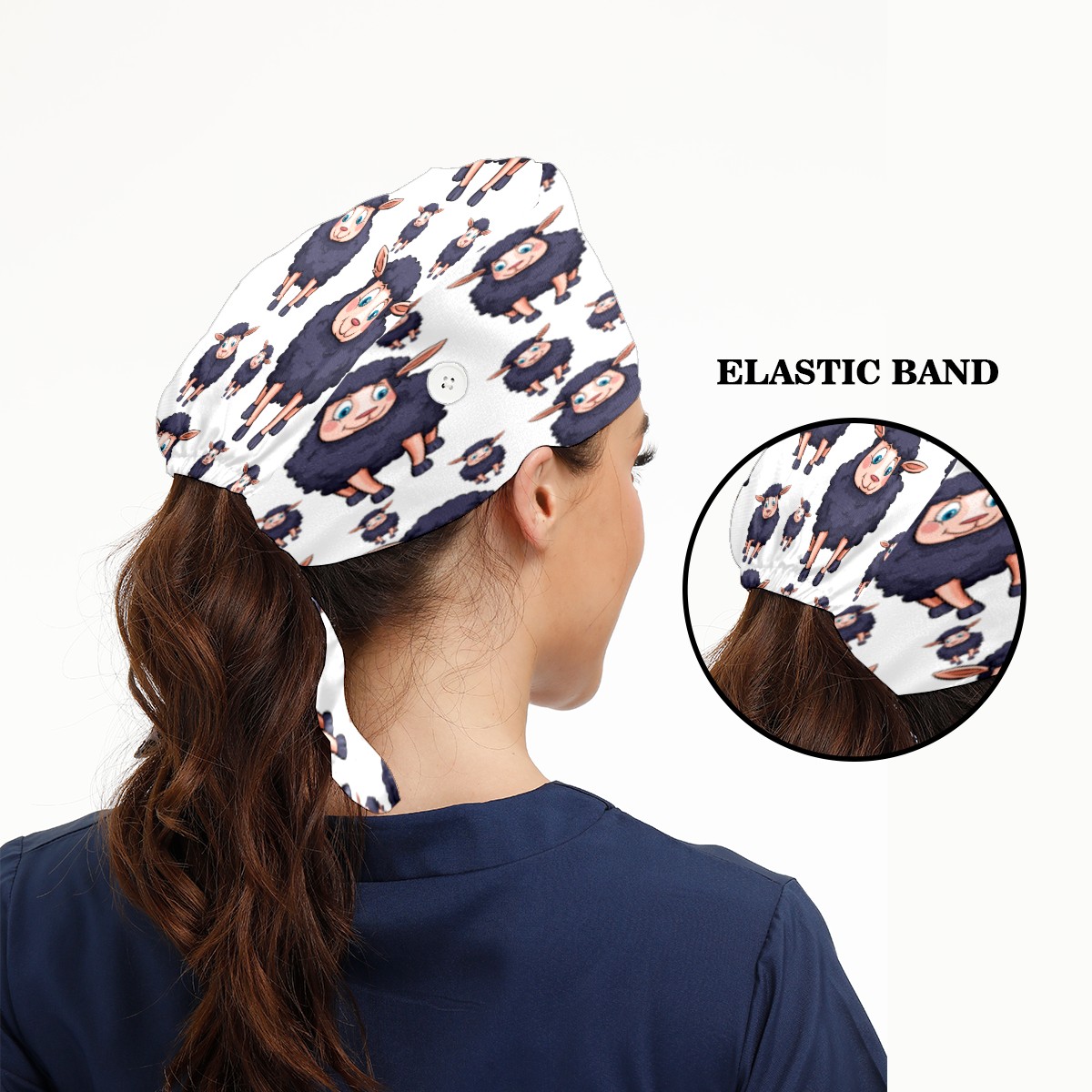 Cute Cartoon Sheep Pattern Working Cap Button and Sweatband Adjustable Elastic Head Cover Hair Tie Back Work Hats for Women Men