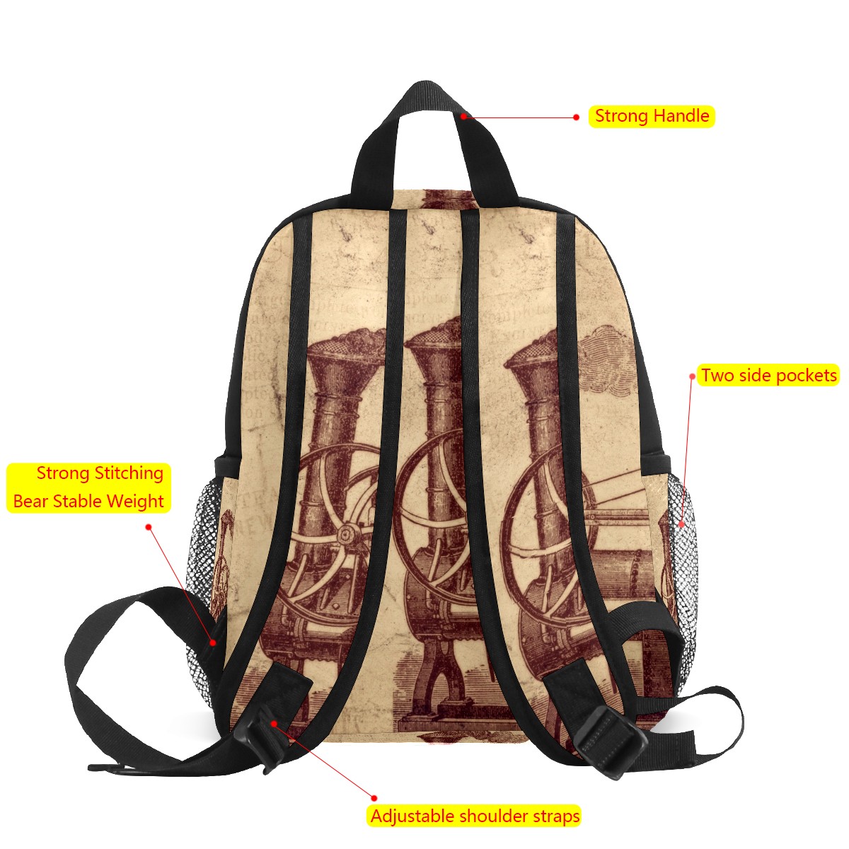Mini Backpack Retro Steam Engine Cute Lightweight School Bags Small Daypack Purse Travel Backpacks Woman Shoulder Bag for Kids Girls Boys(3-8 Years Old)