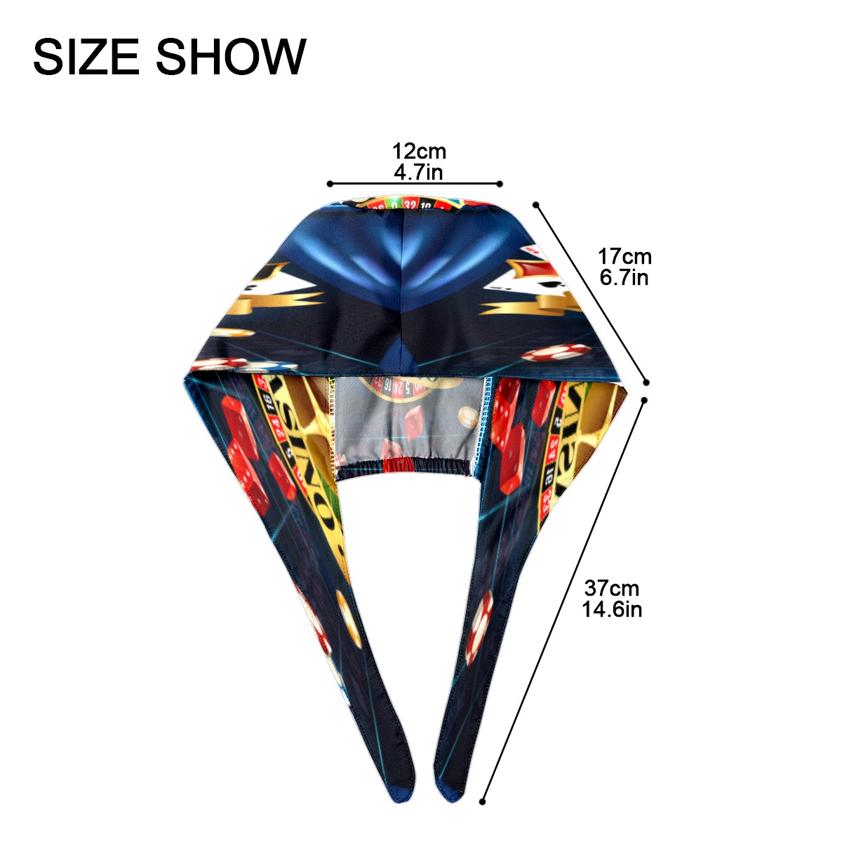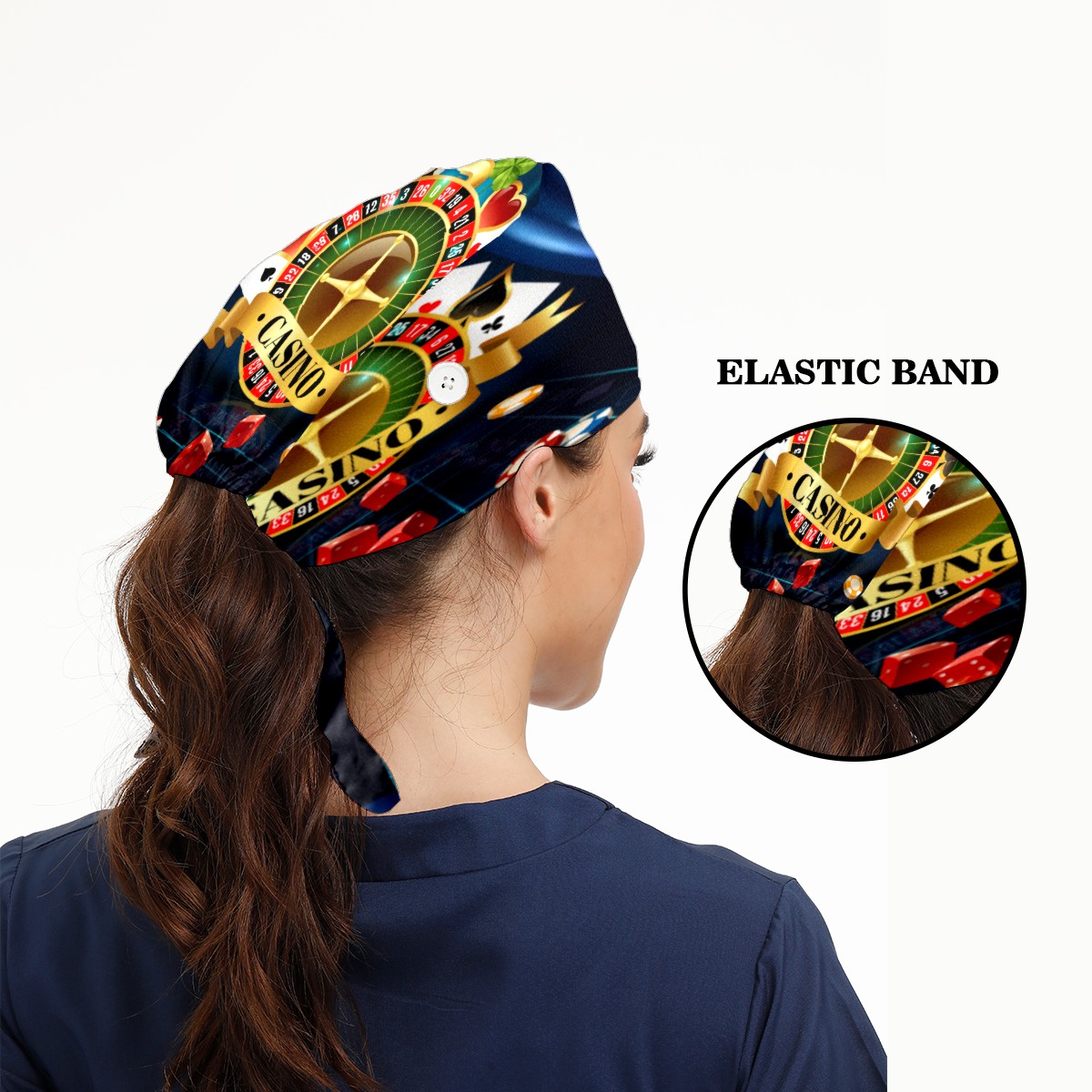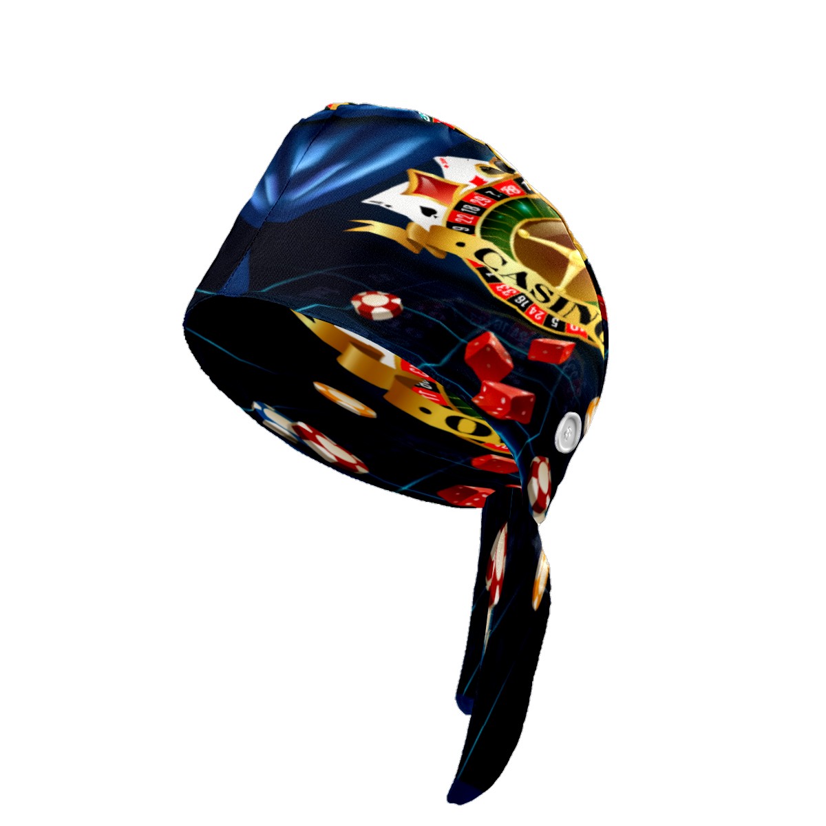 Casino Night Games Dice Playing Cards Symbols Working Cap Button and Sweatband Adjustable Elastic Head Cover Hair Tie Back Work Hats for Women Men