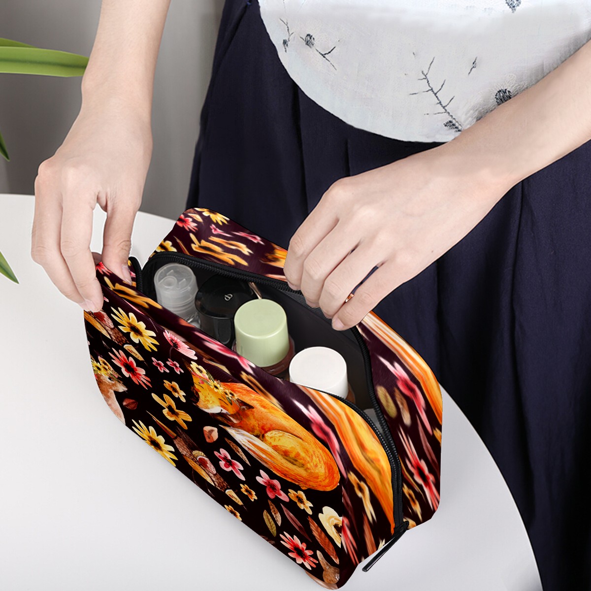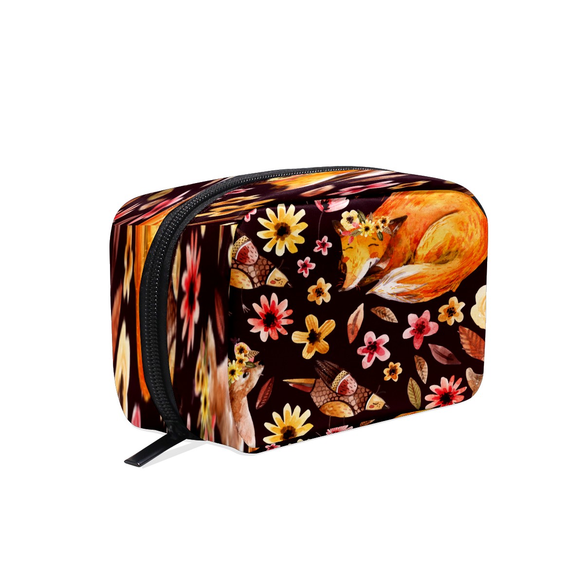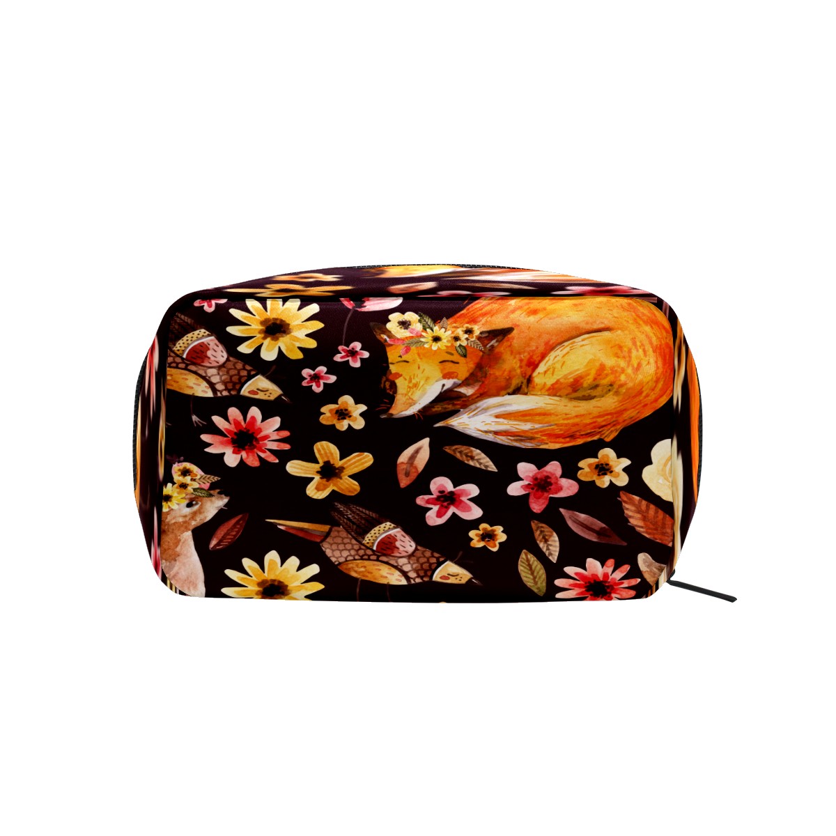 Cosmetic Bag for Women Girls Trave Makeup Bag Toiletry Case Pouch Accessories Organizer Watercolor Animal Fawn Fox Birds Flowers
