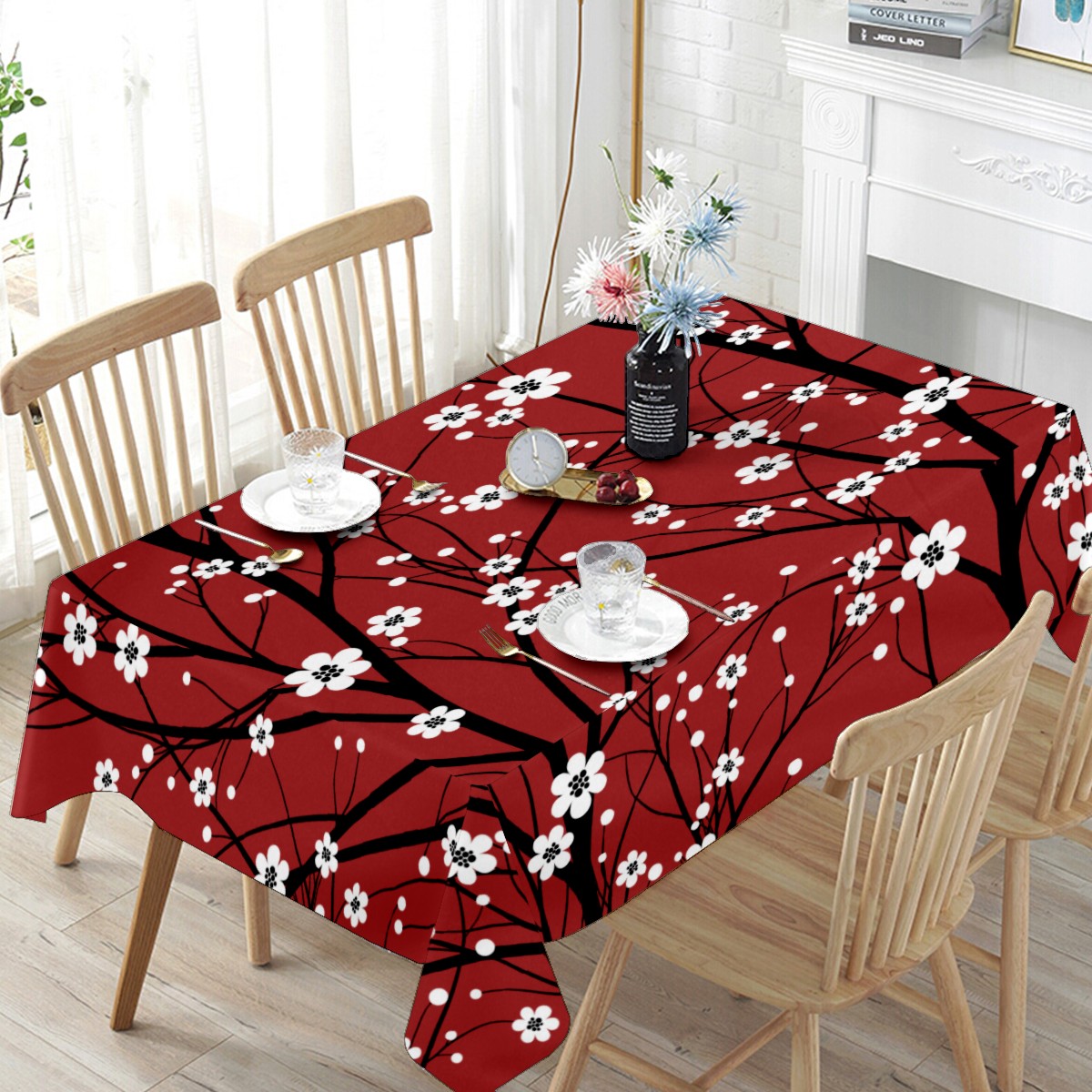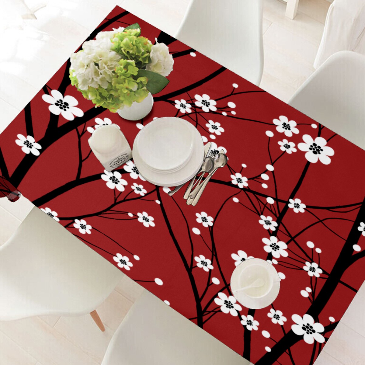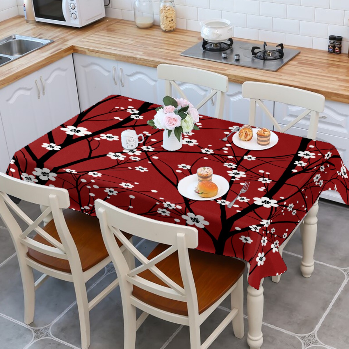 Rectangle Tablecloth Chinese Red Plum Blossom Winter Floral Table Cloth 54x54in Table Cover for Kitchen Dining Table Party Home Decoration Washable Table Runner