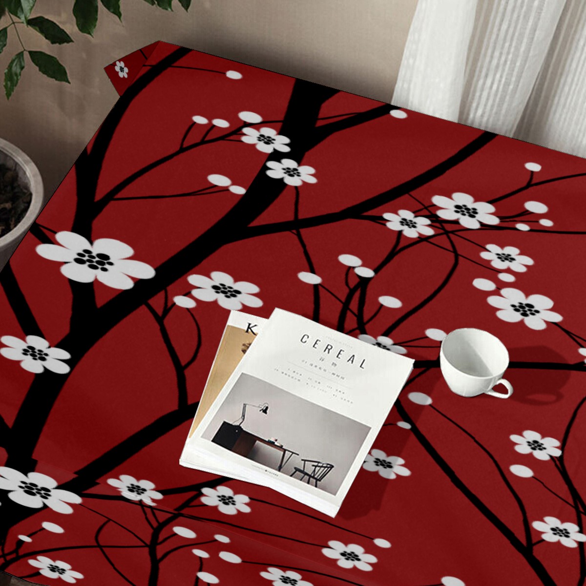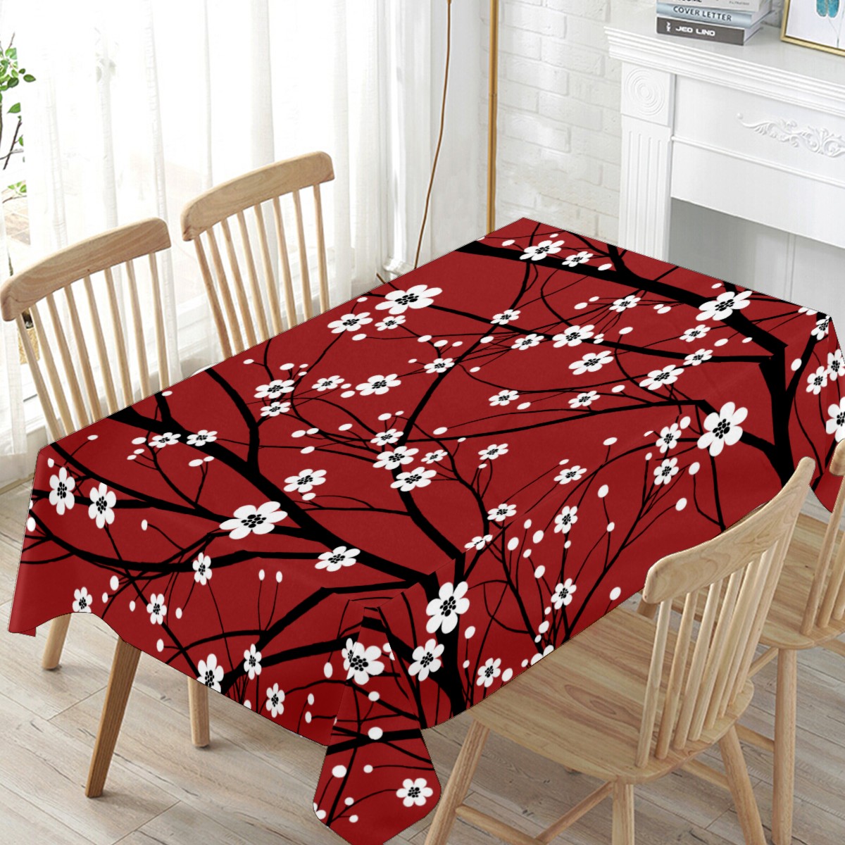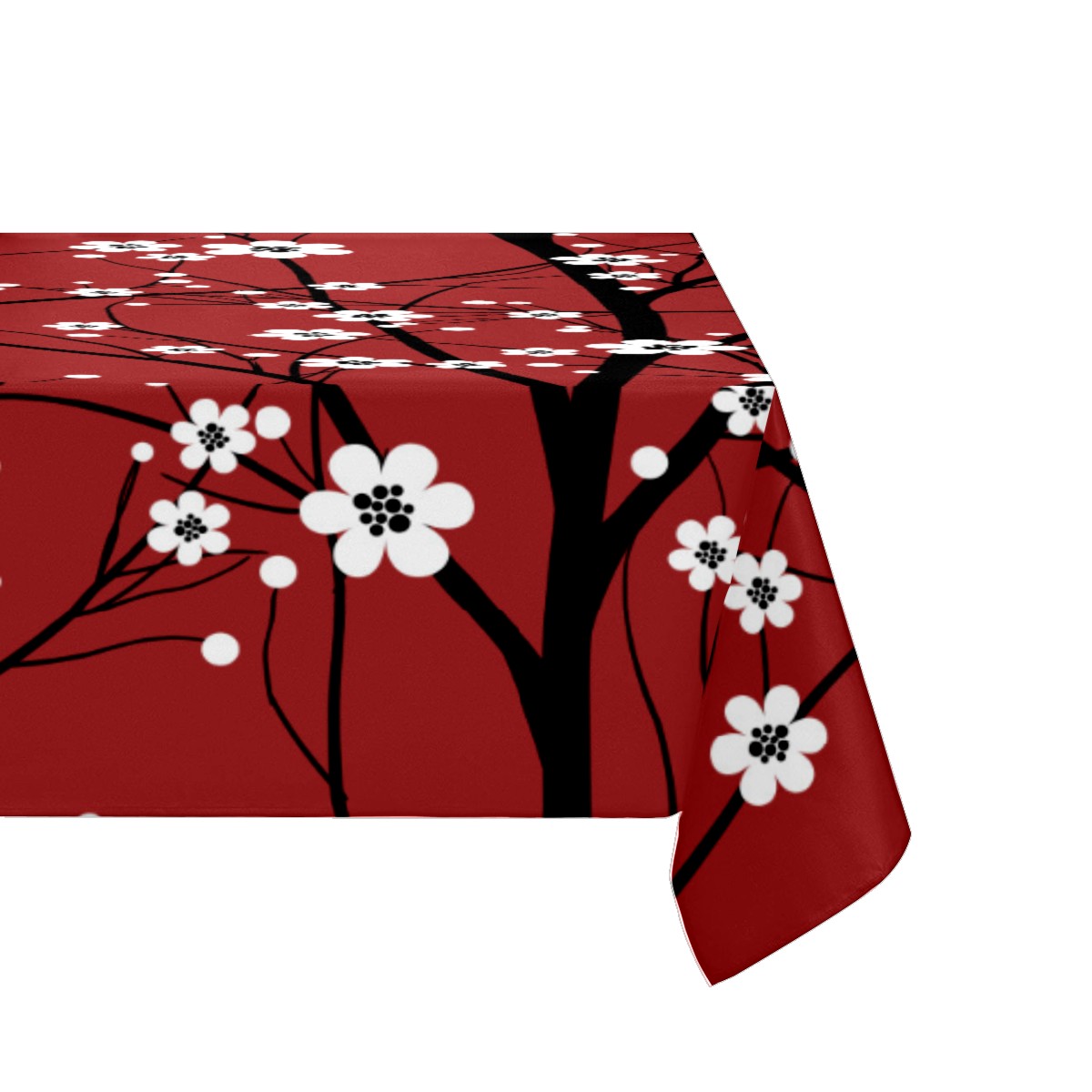 Rectangle Tablecloth Chinese Red Plum Blossom Winter Floral Table Cloth 54x54in Table Cover for Kitchen Dining Table Party Home Decoration Washable Table Runner