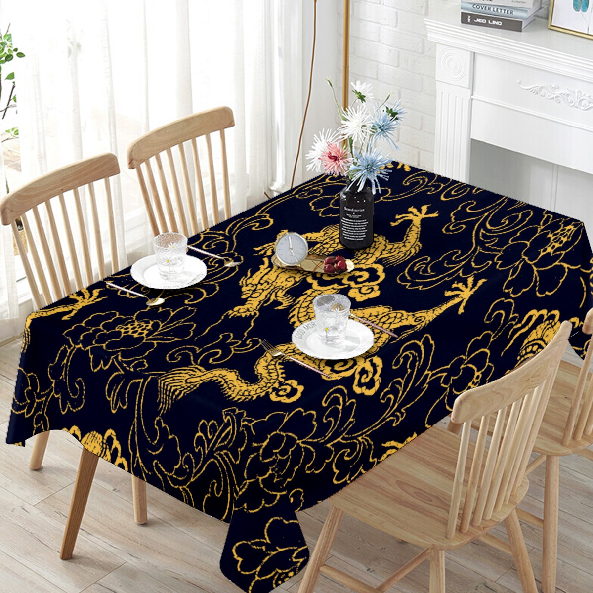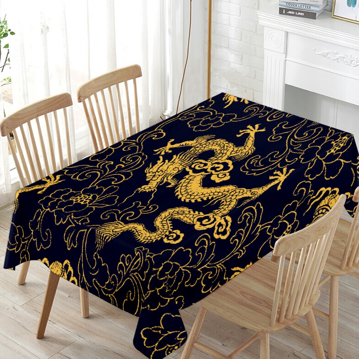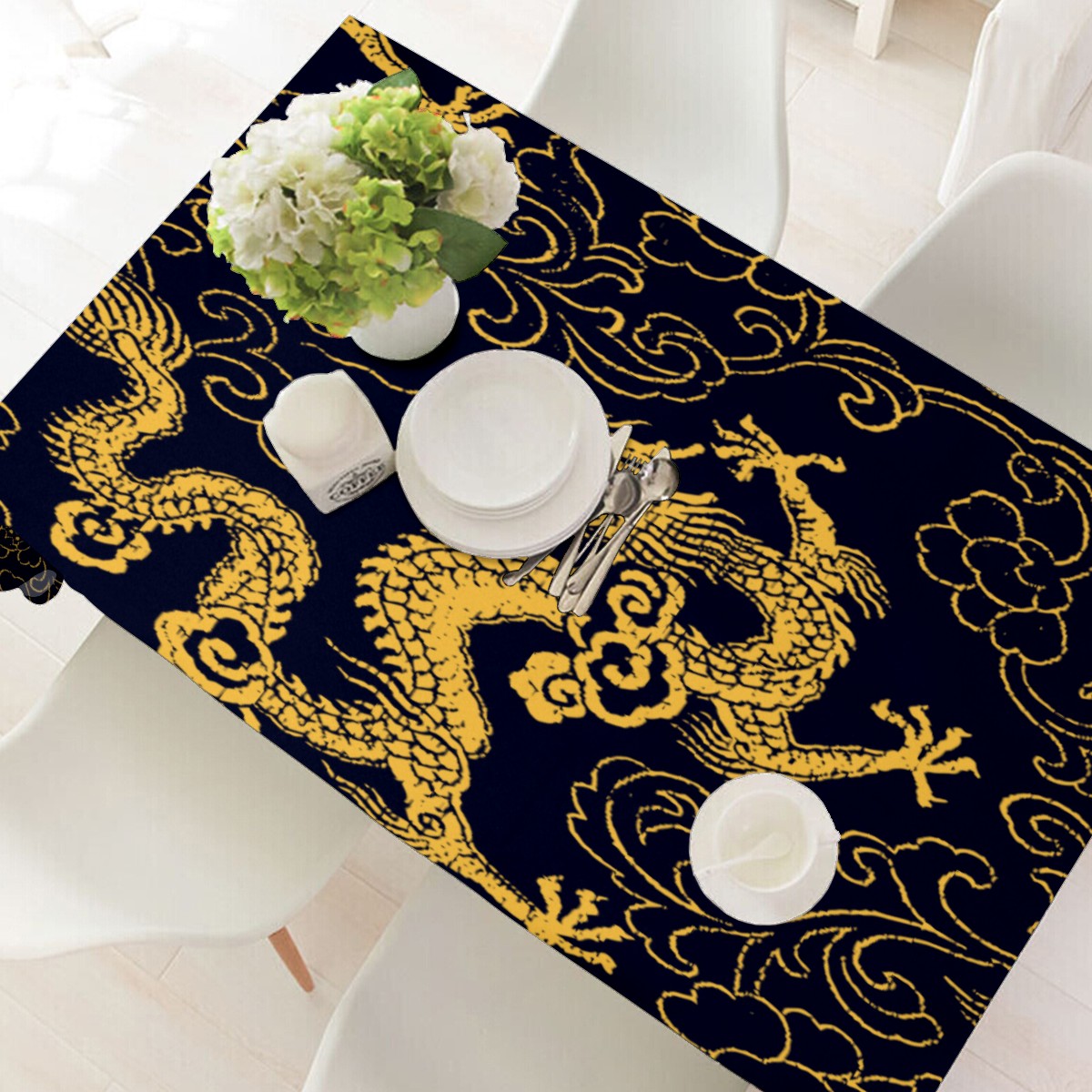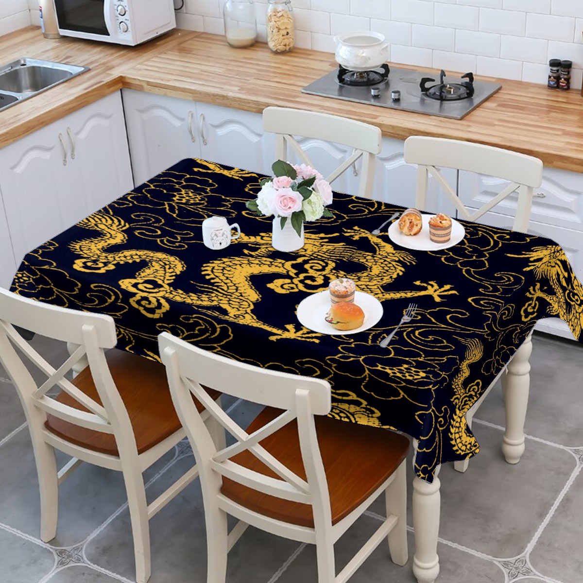 Rectangle Tablecloth Chinese Gold Myth Dragon Cloud Table Cloth 54x54in Table Cover for Kitchen Dining Table Party Home Decoration Washable Table Runner